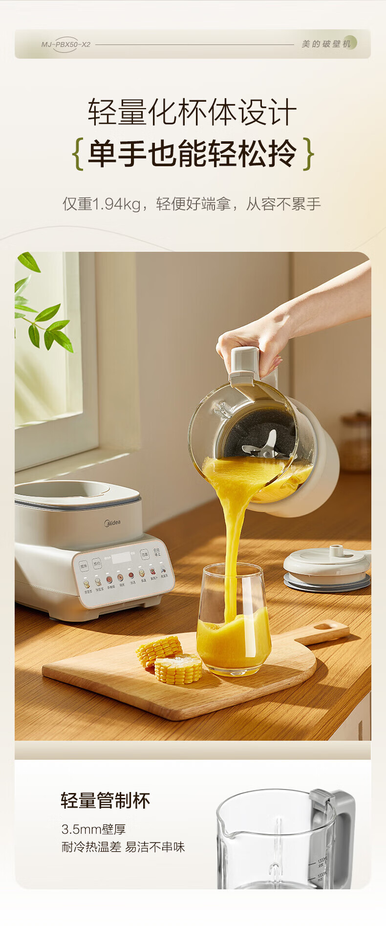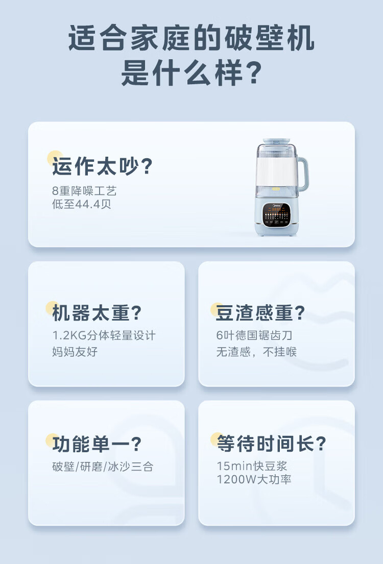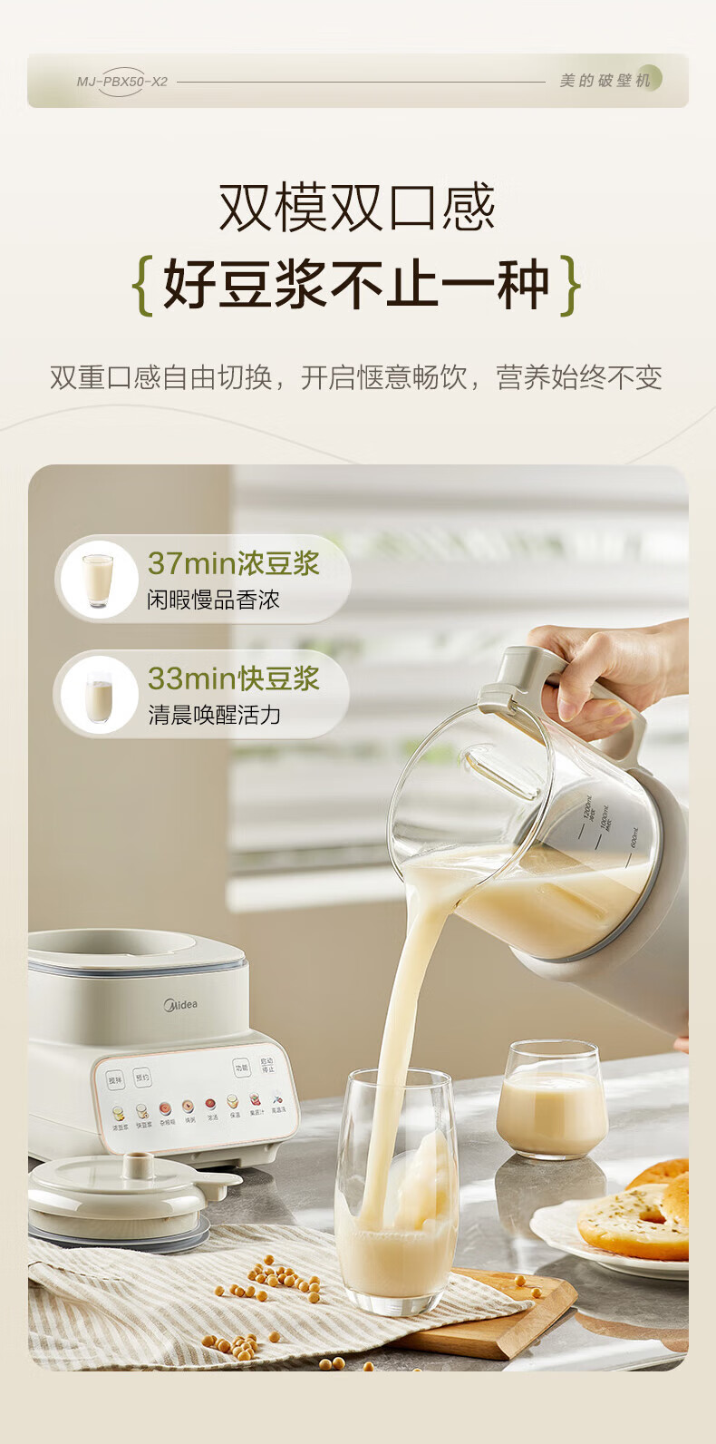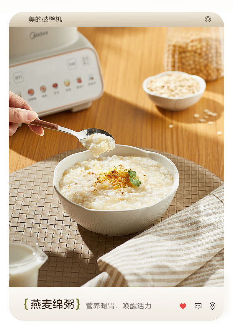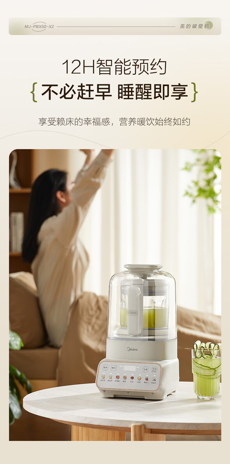美的(Midea)大容量低音降噪破壁机 家用小米豆浆机料理辅食机全自动免过滤五谷杂粮榨汁机智能预约料理果汁机 【德国进口刀头 】-1.75L