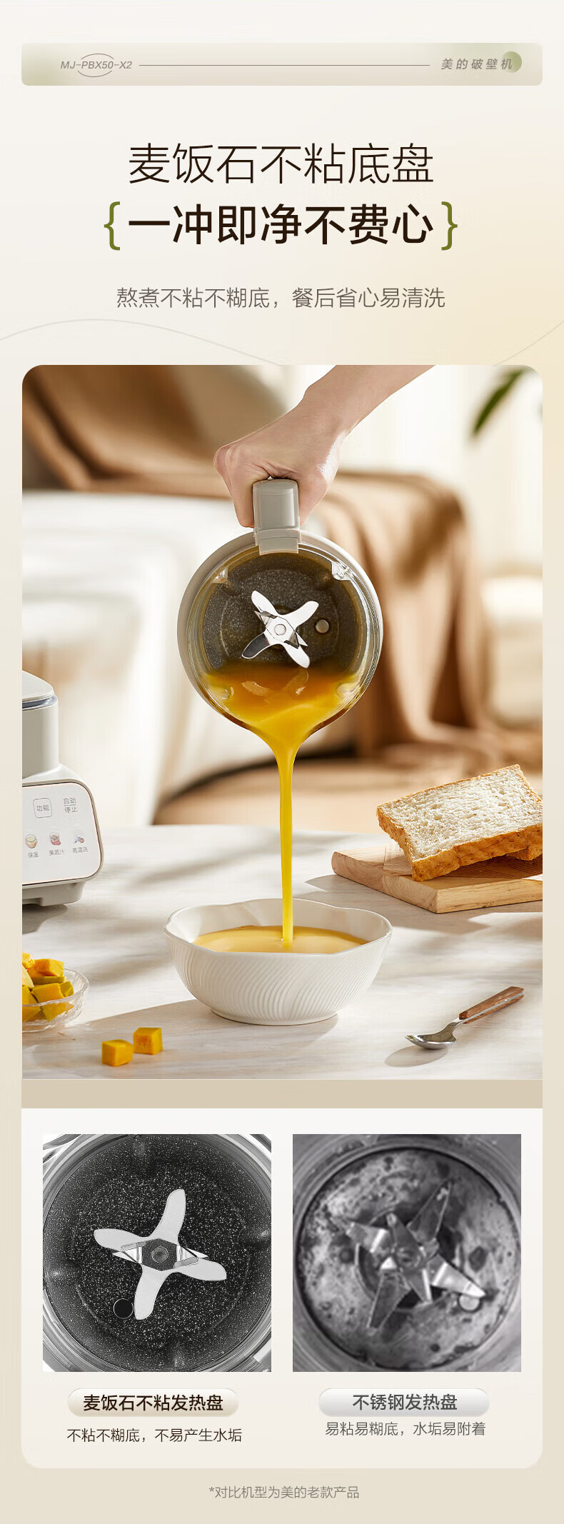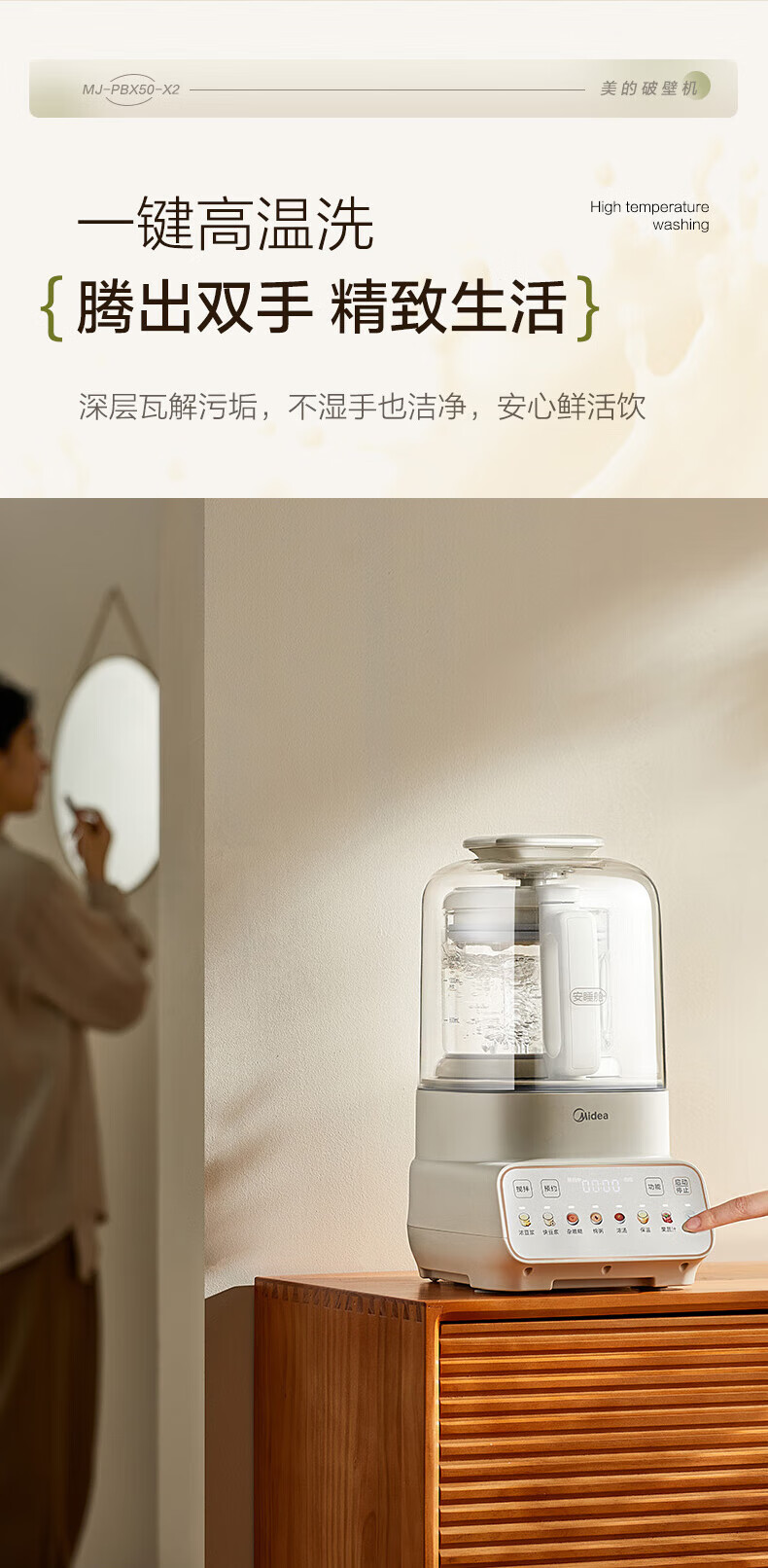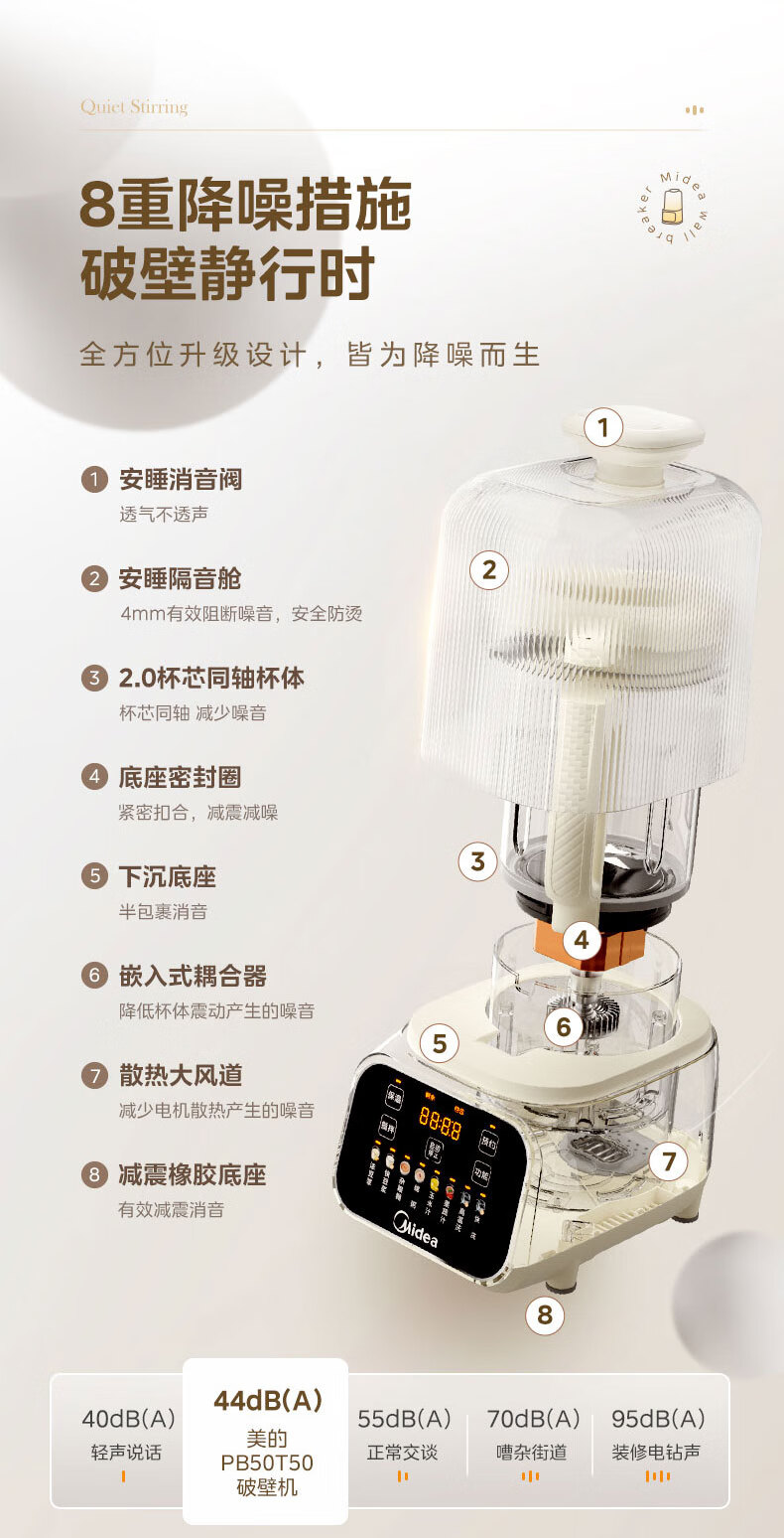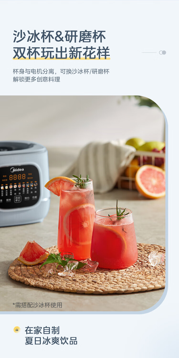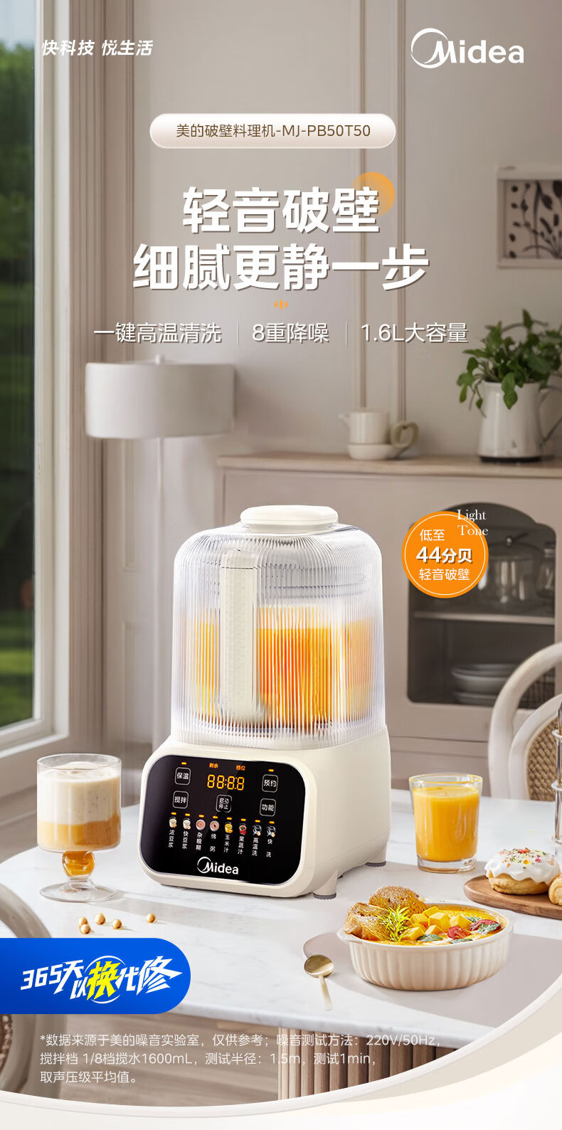 美的(Midea)大容量低音降噪破壁机 家用小米豆浆机料理辅食机全自动免过滤五谷杂粮榨汁机智能预约料理果汁机 【德国进口刀头 】-1.75L