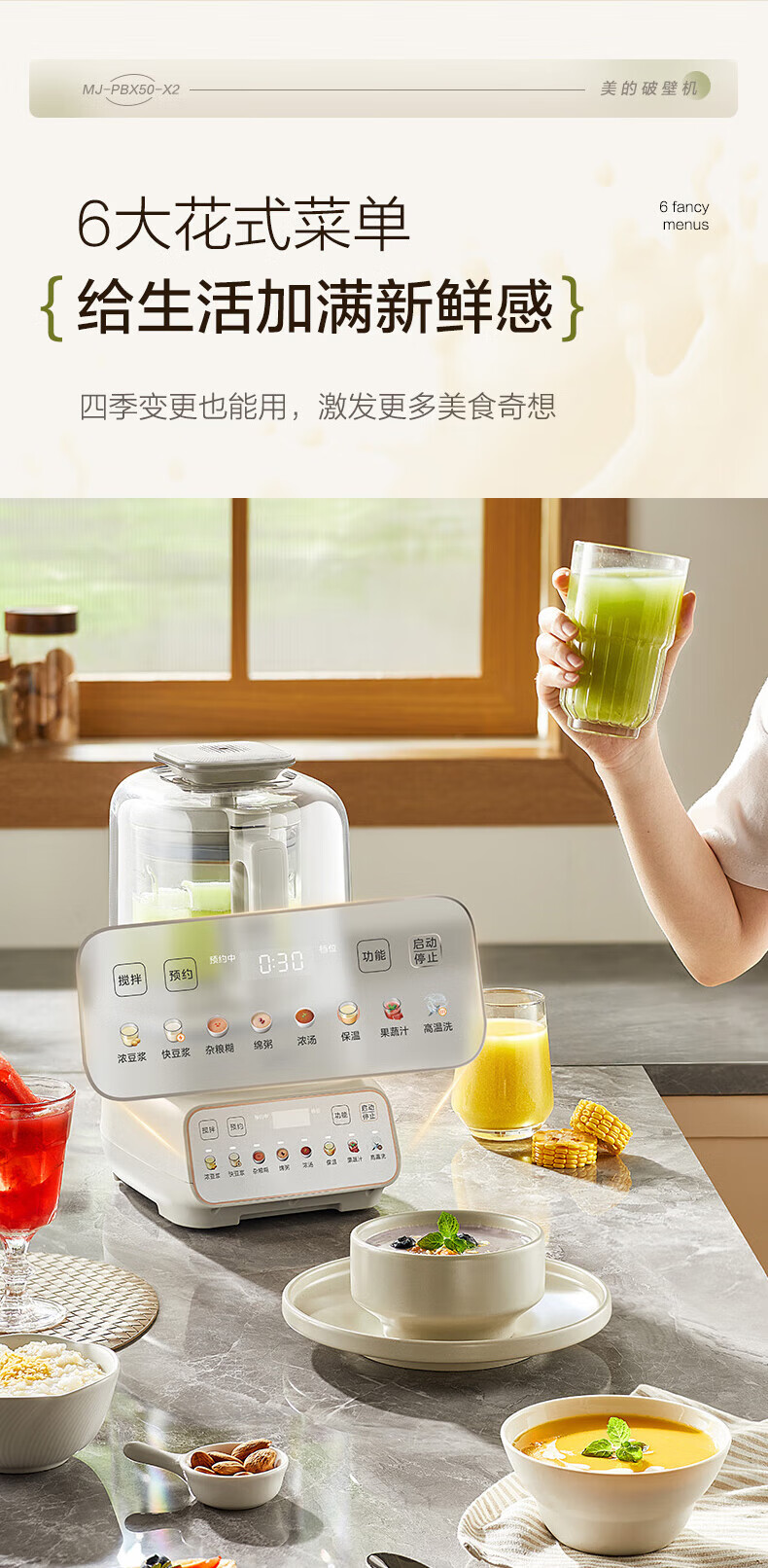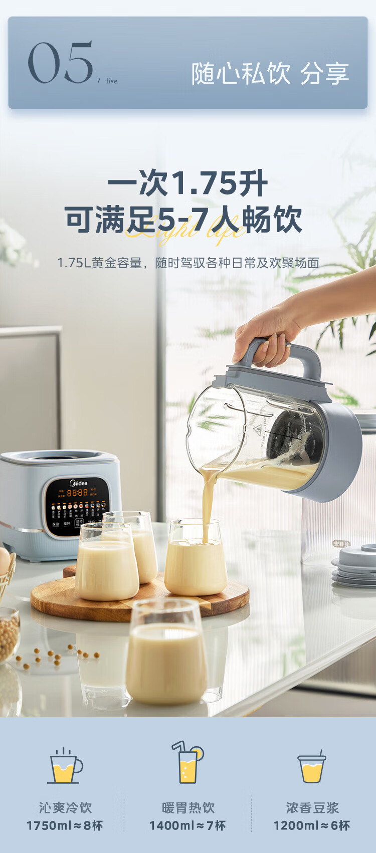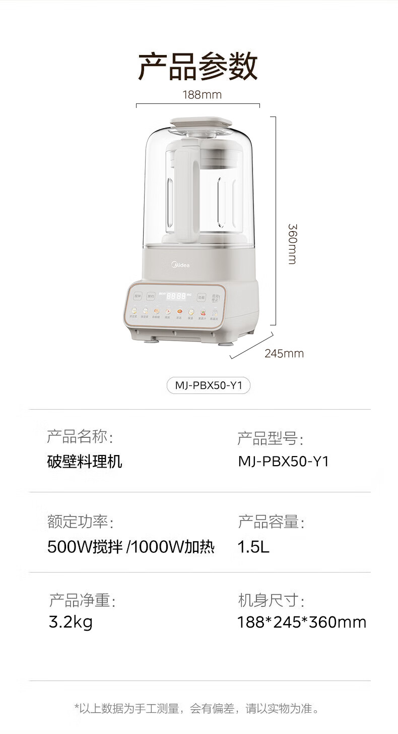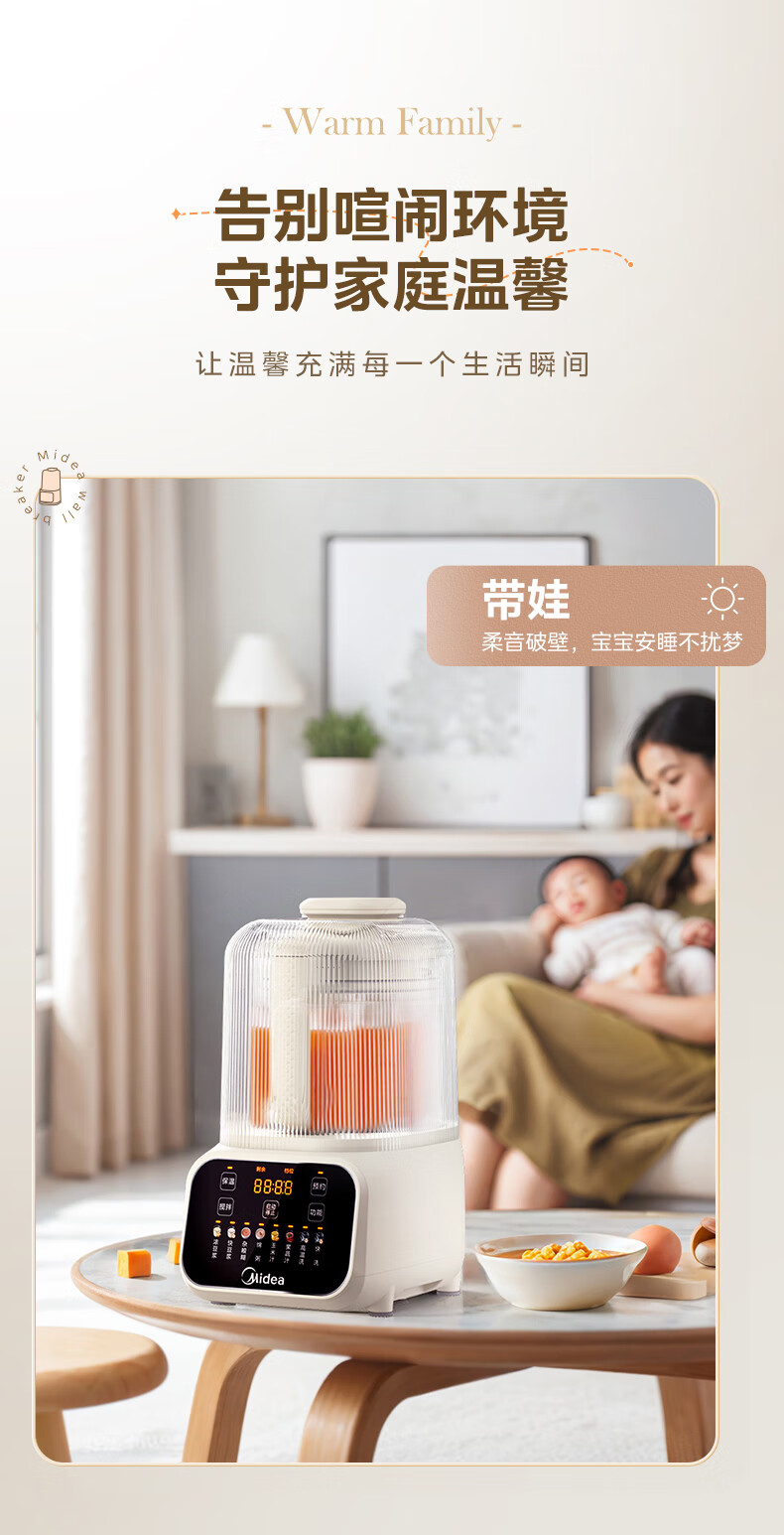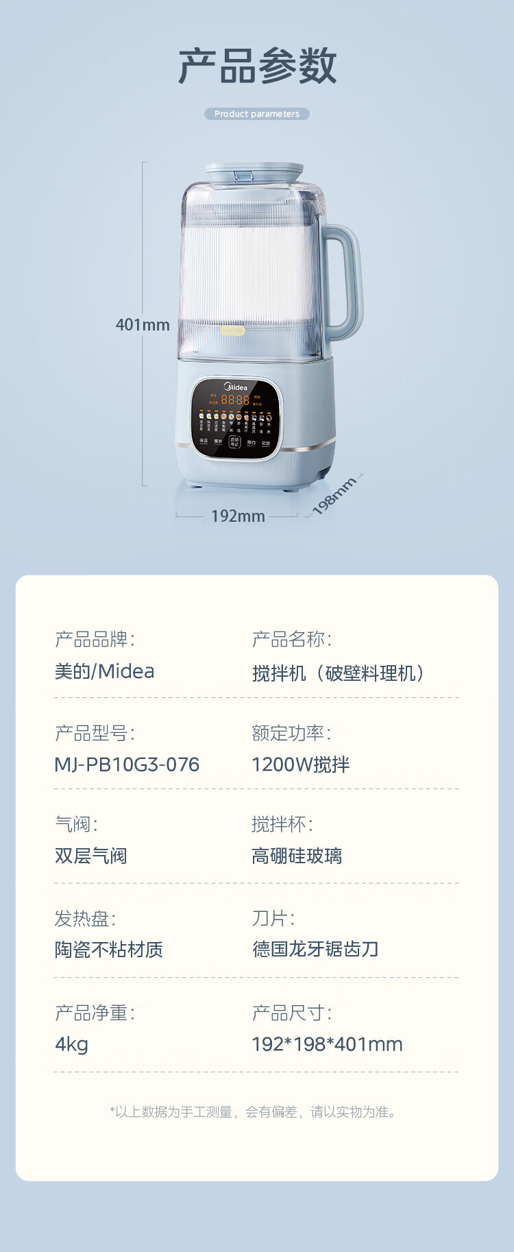 美的(Midea)大容量低音降噪破壁机 家用小米豆浆机料理辅食机全自动免过滤五谷杂粮榨汁机智能预约料理果汁机 【德国进口刀头 】-1.75L