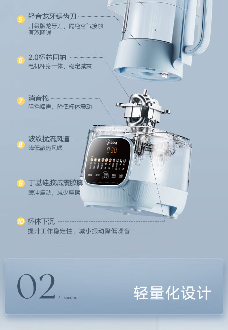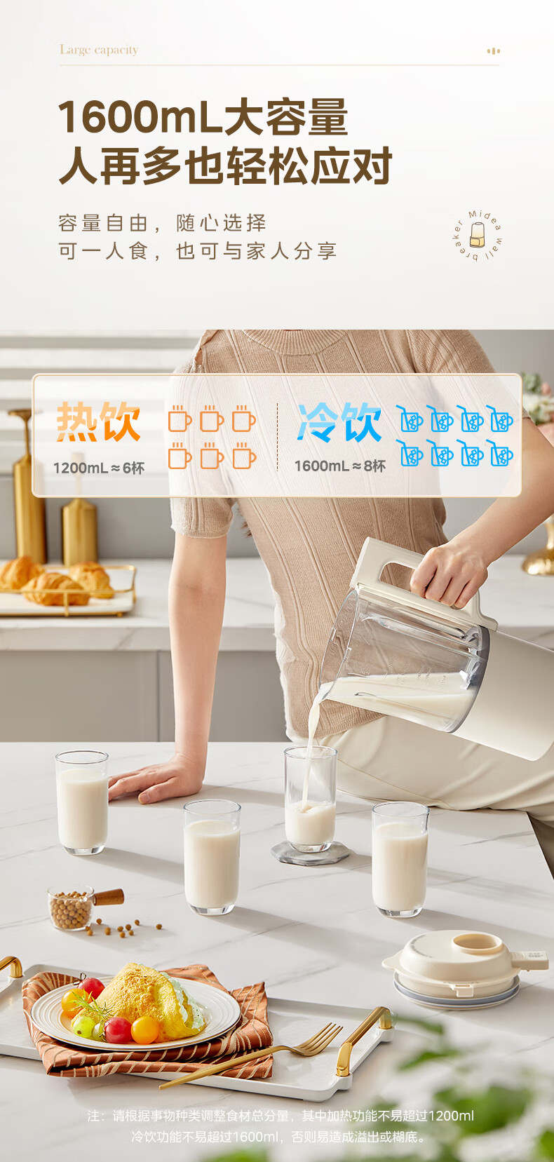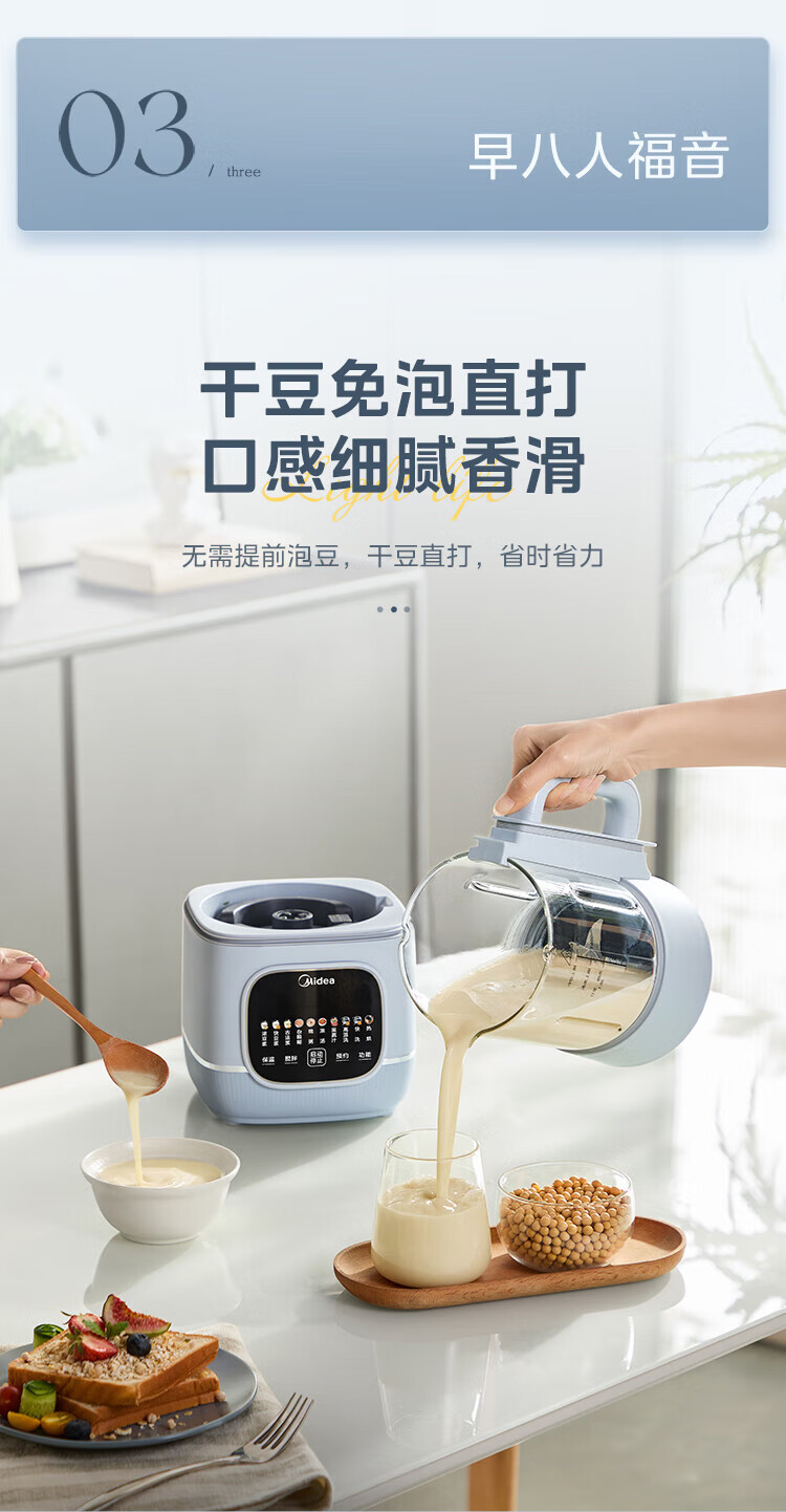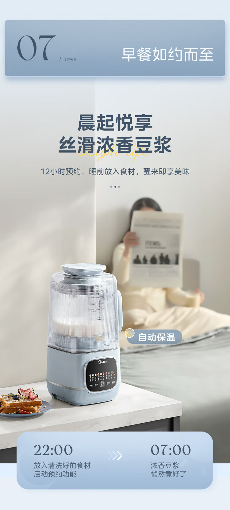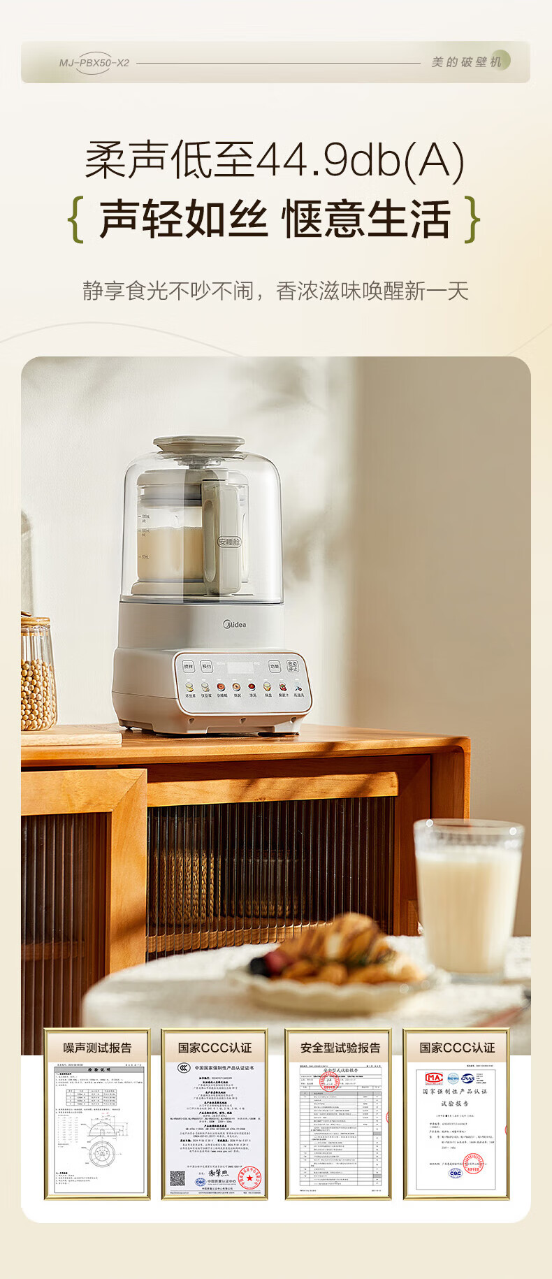 美的(Midea)大容量低音降噪破壁机 家用小米豆浆机料理辅食机全自动免过滤五谷杂粮榨汁机智能预约料理果汁机 【德国进口刀头 】-1.75L
