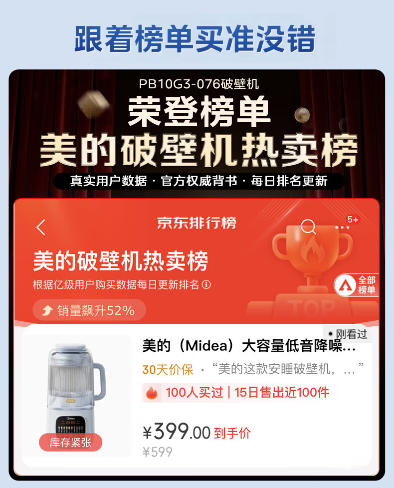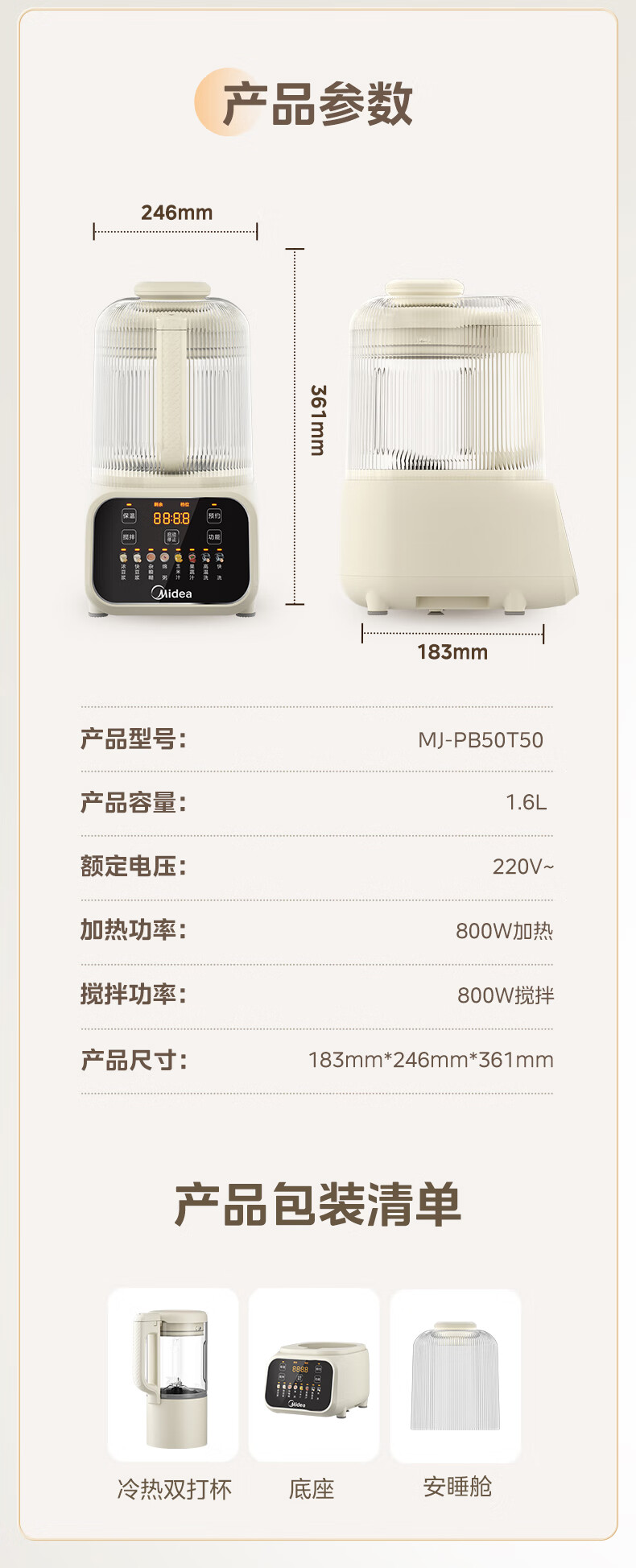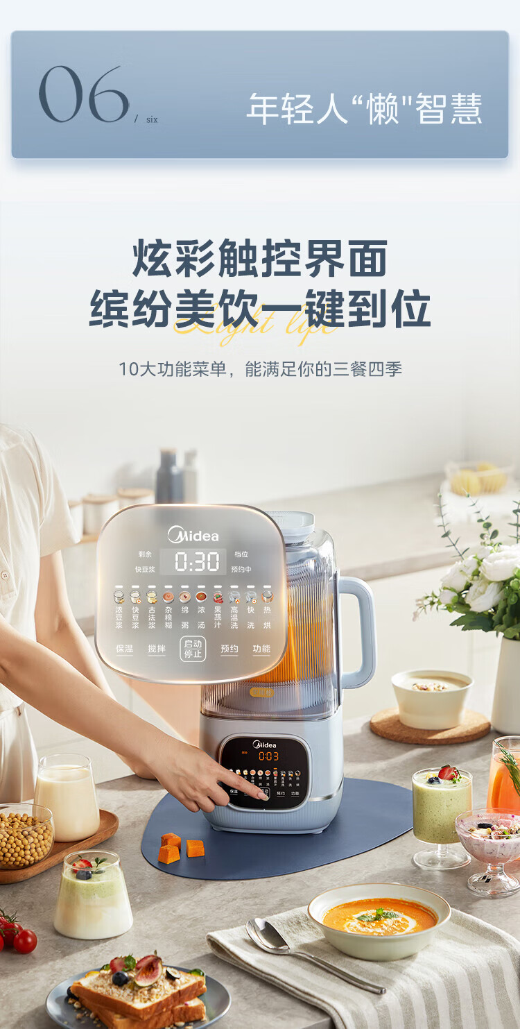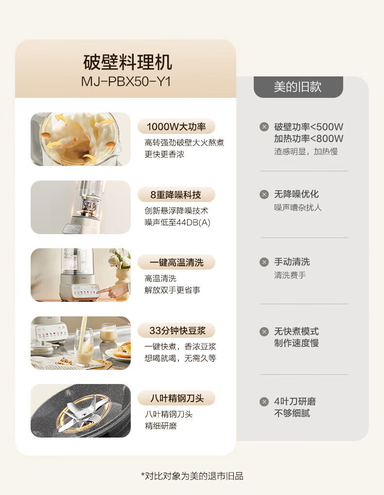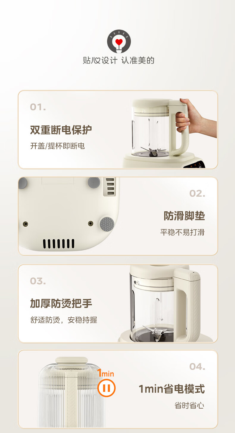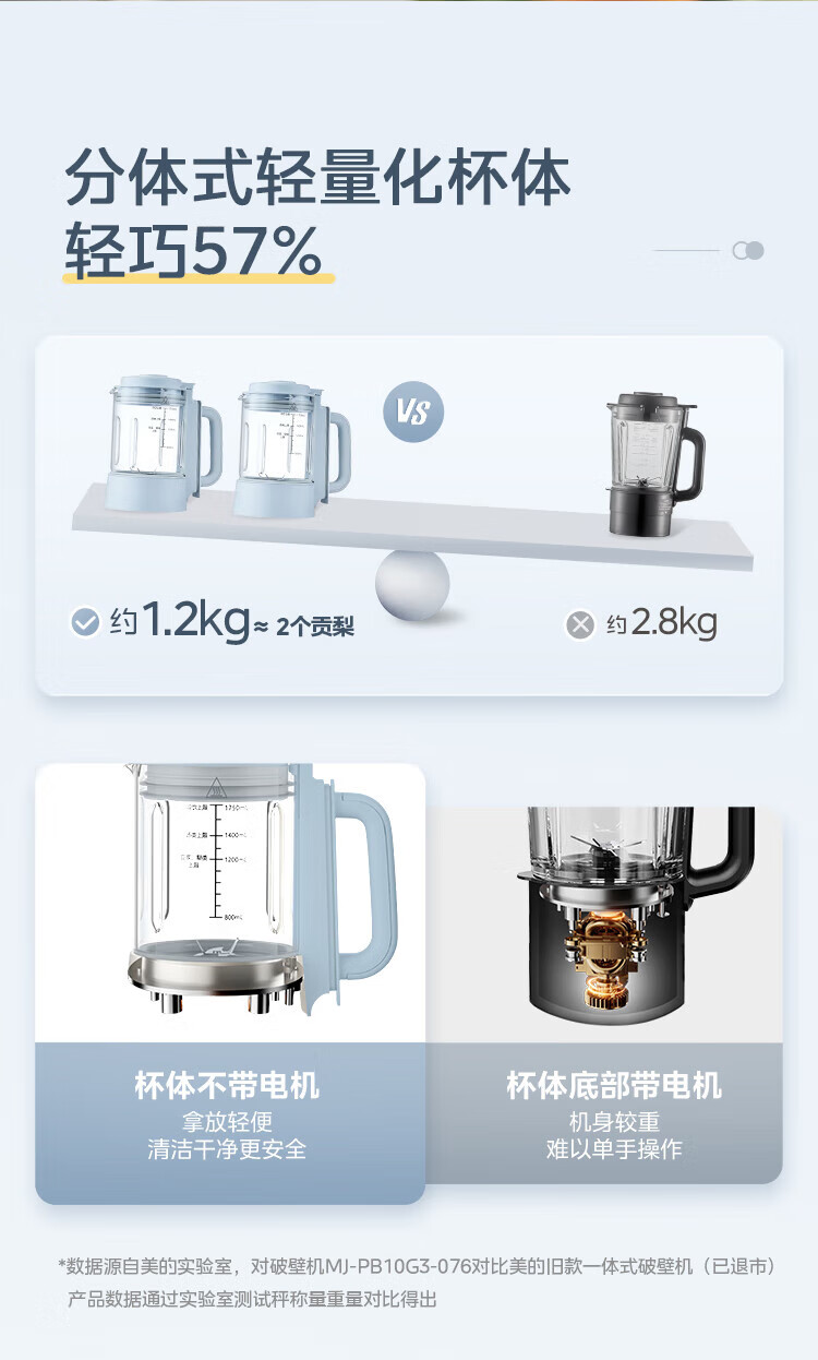 美的(Midea)大容量低音降噪破壁机 家用小米豆浆机料理辅食机全自动免过滤五谷杂粮榨汁机智能预约料理果汁机 【德国进口刀头 】-1.75L