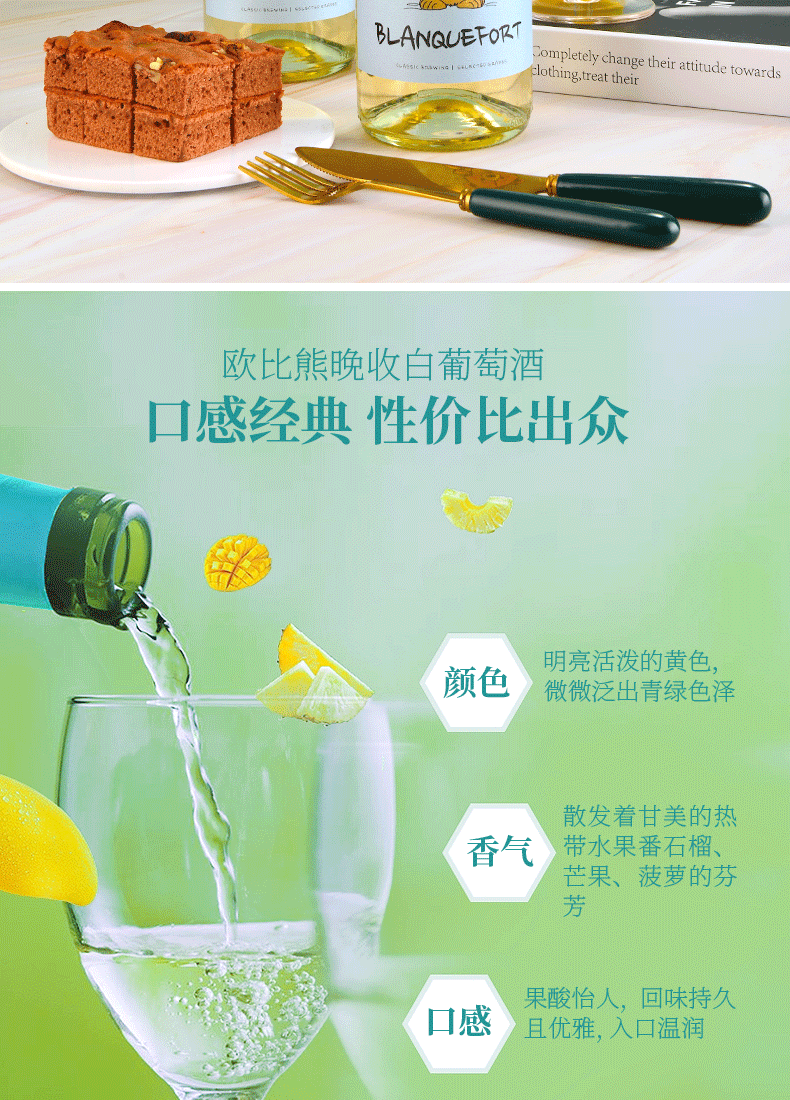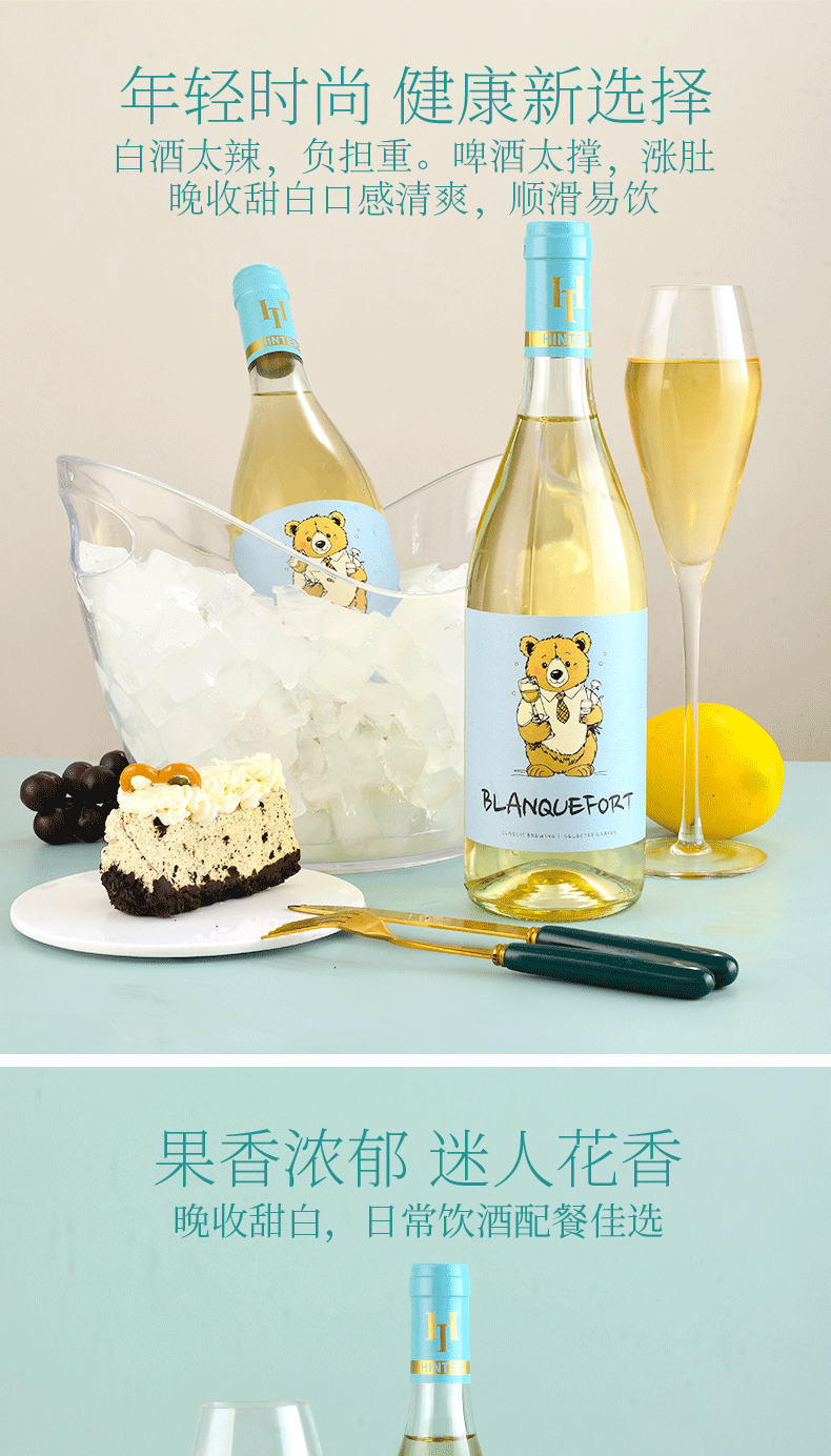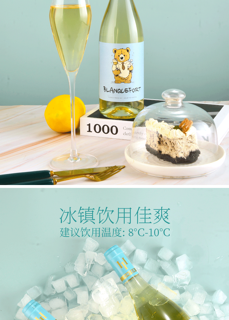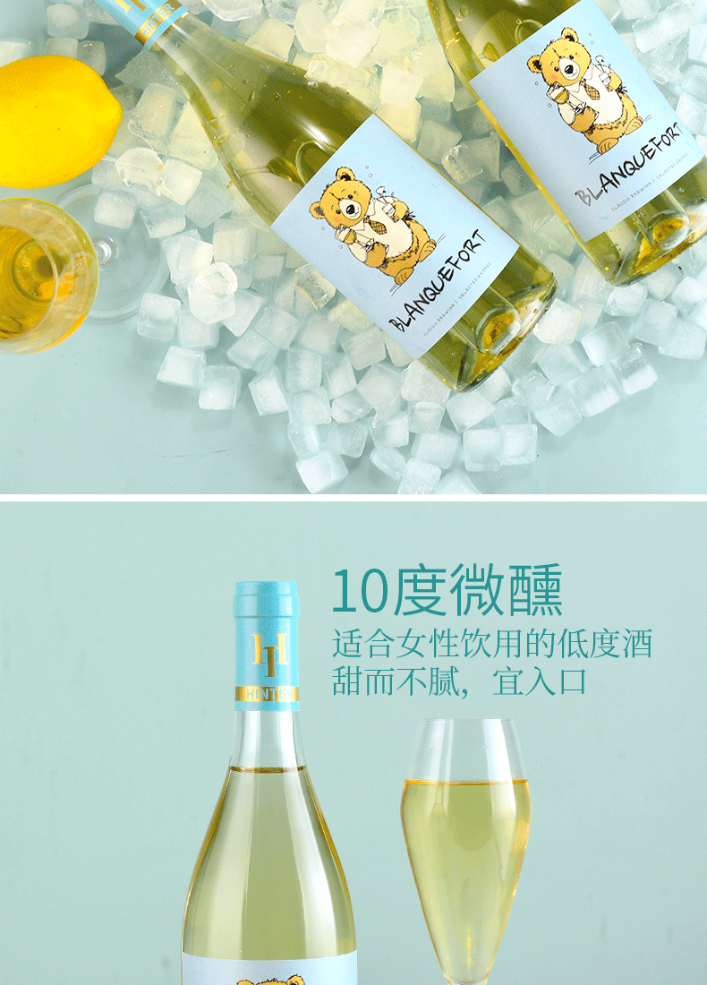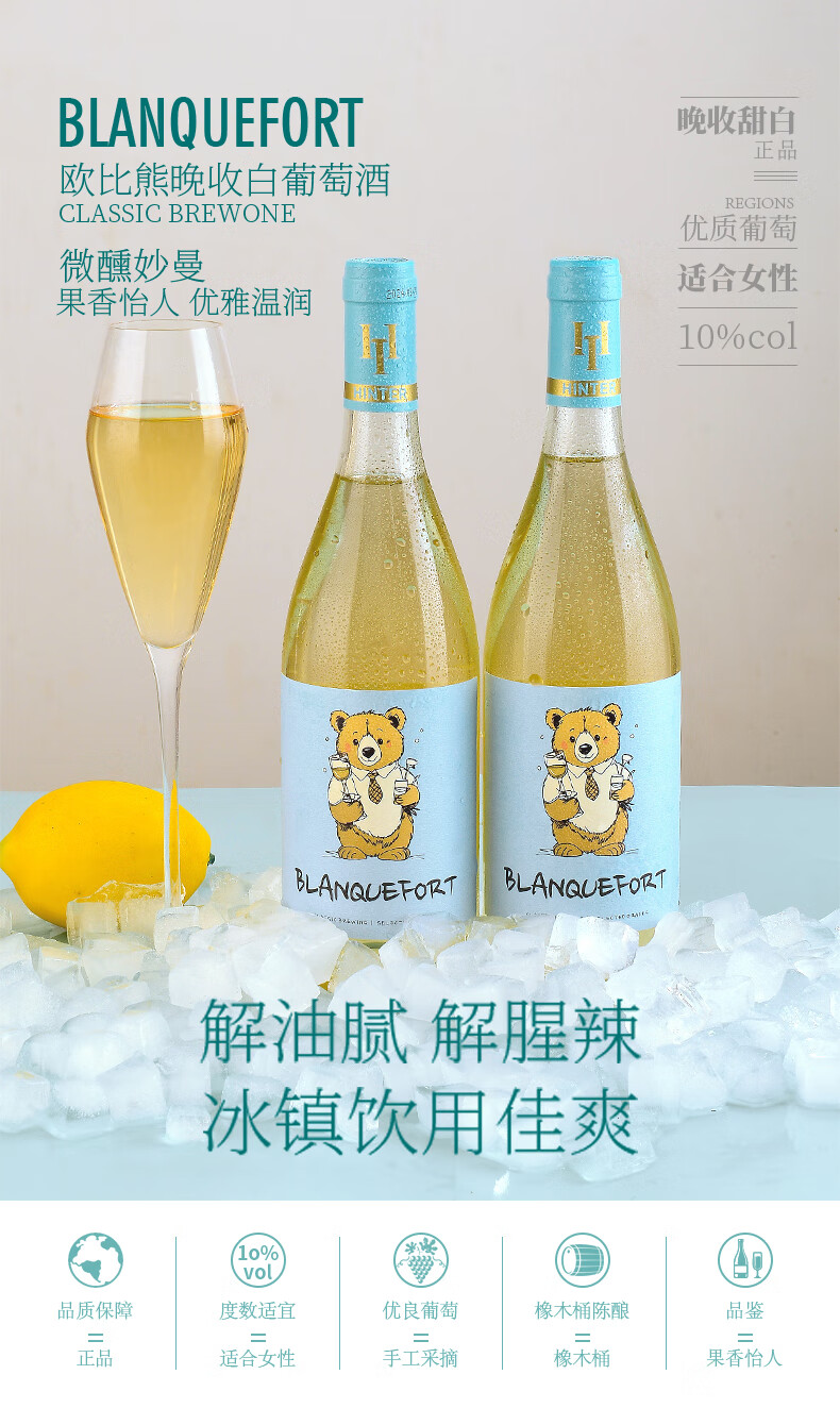 BLANQUEFORT欧比熊晚收白葡萄酒10度甜型白葡萄酒 750ml*2瓶