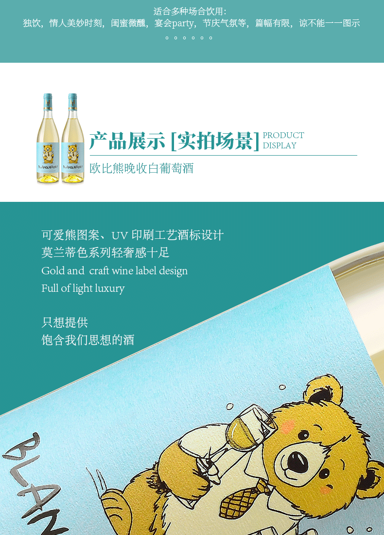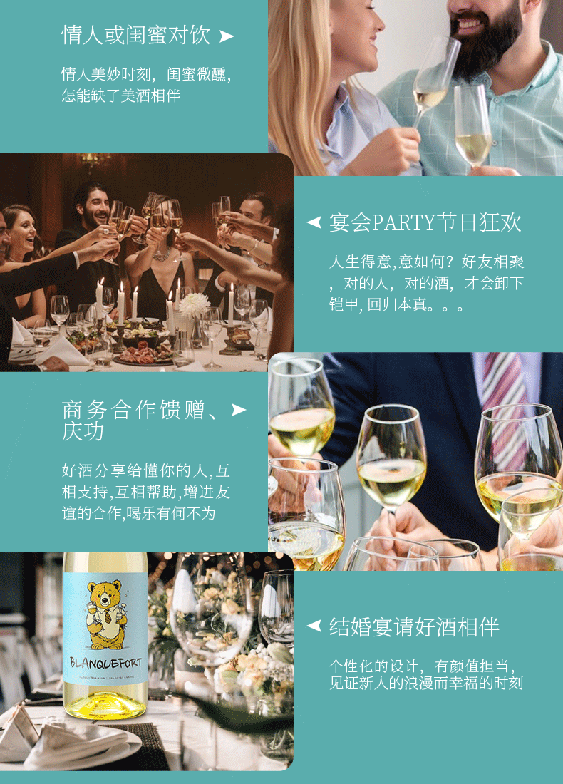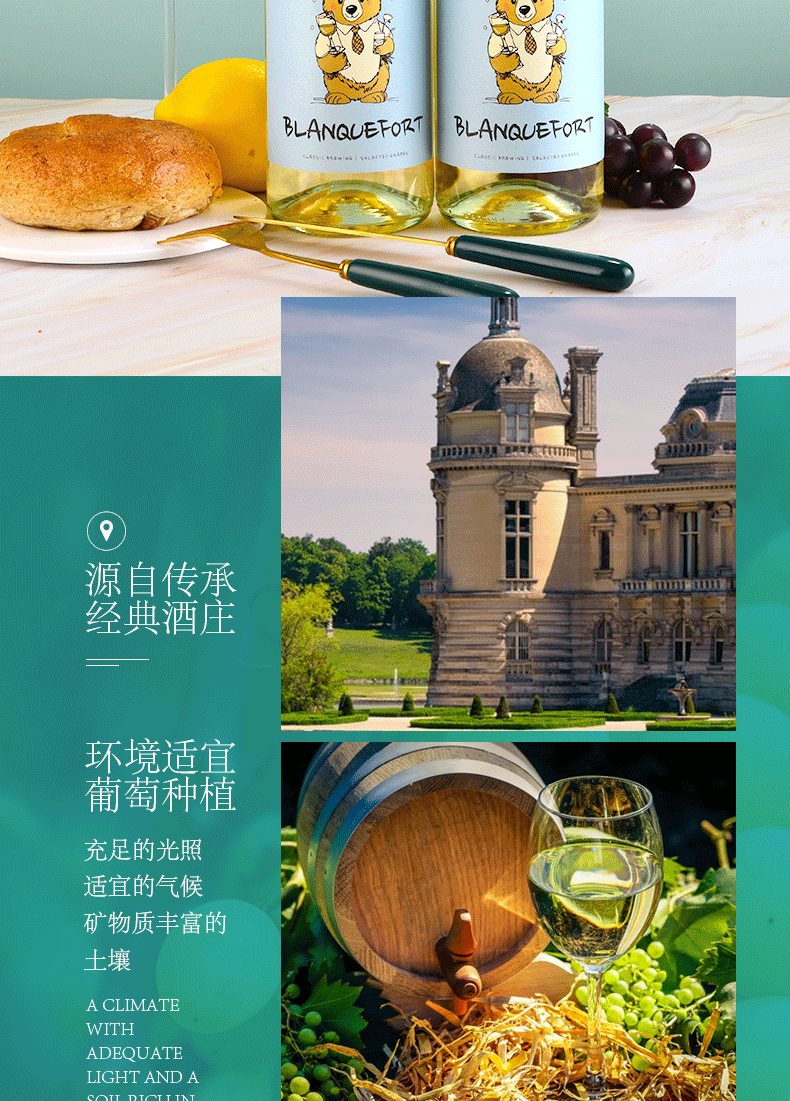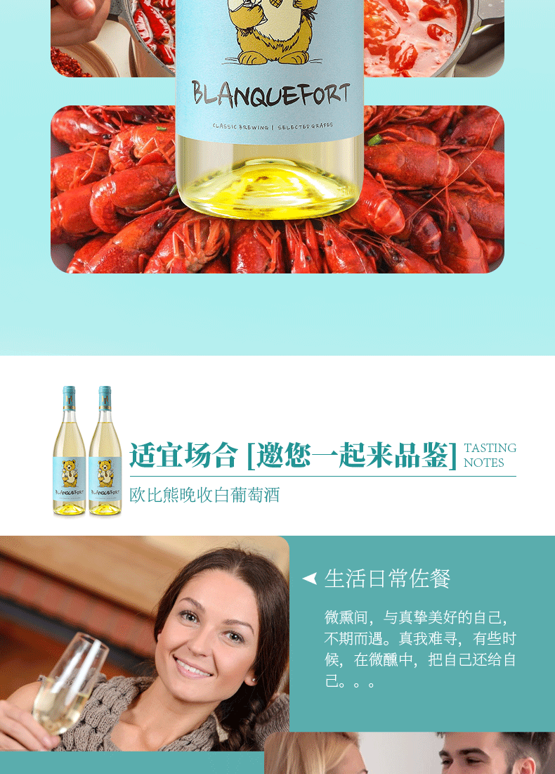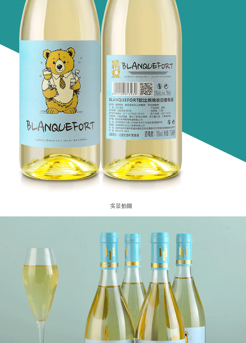 BLANQUEFORT欧比熊晚收白葡萄酒10度甜型白葡萄酒 750ml*2瓶