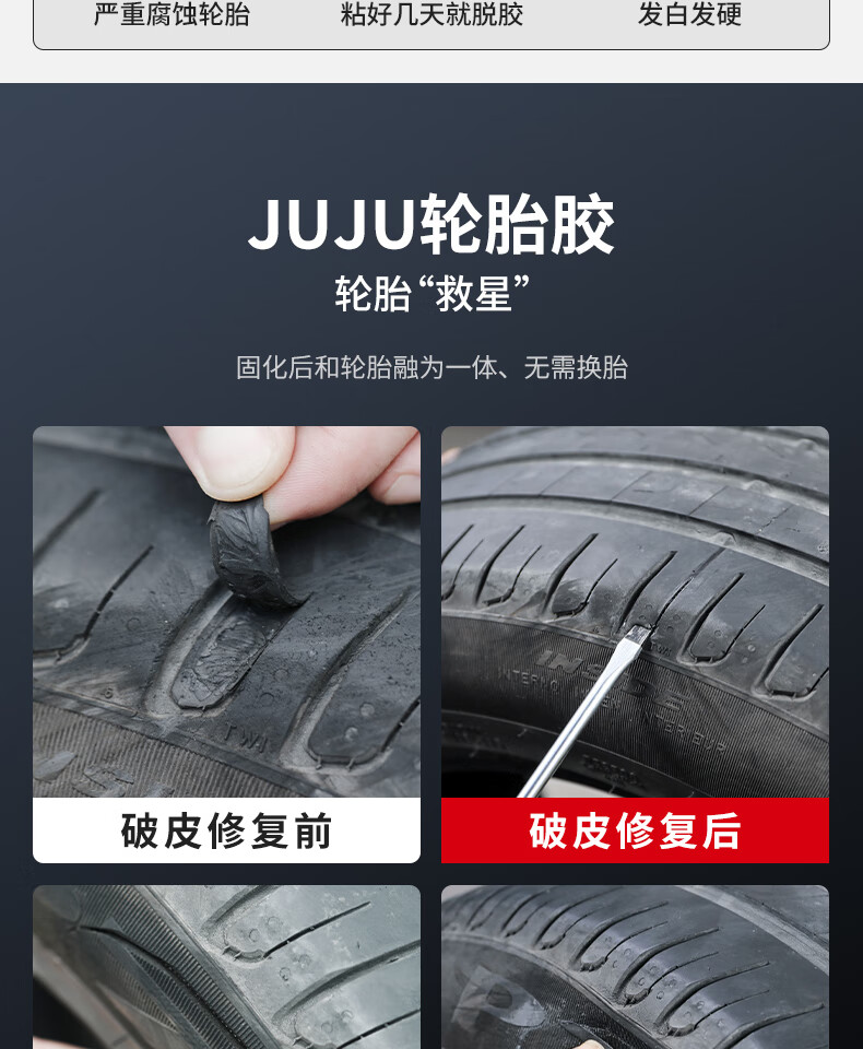 久而久轮胎修补胶水修复侧面硬伤补裂缝裂纹强力专用万能胶粘刮伤划破神器补汽车破损橡胶外胎壁修补胶水 破皮修补-速干型【1瓶装】