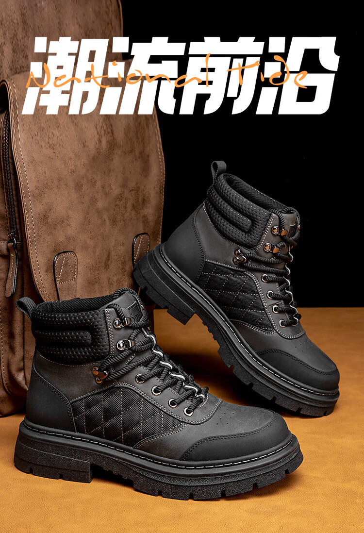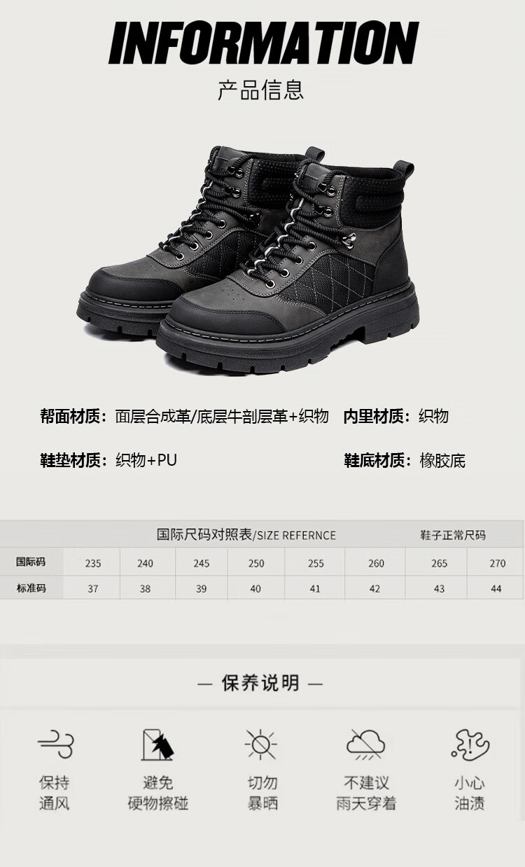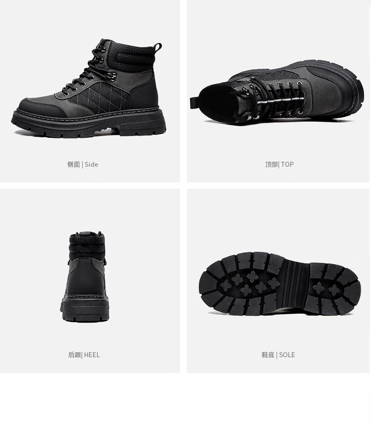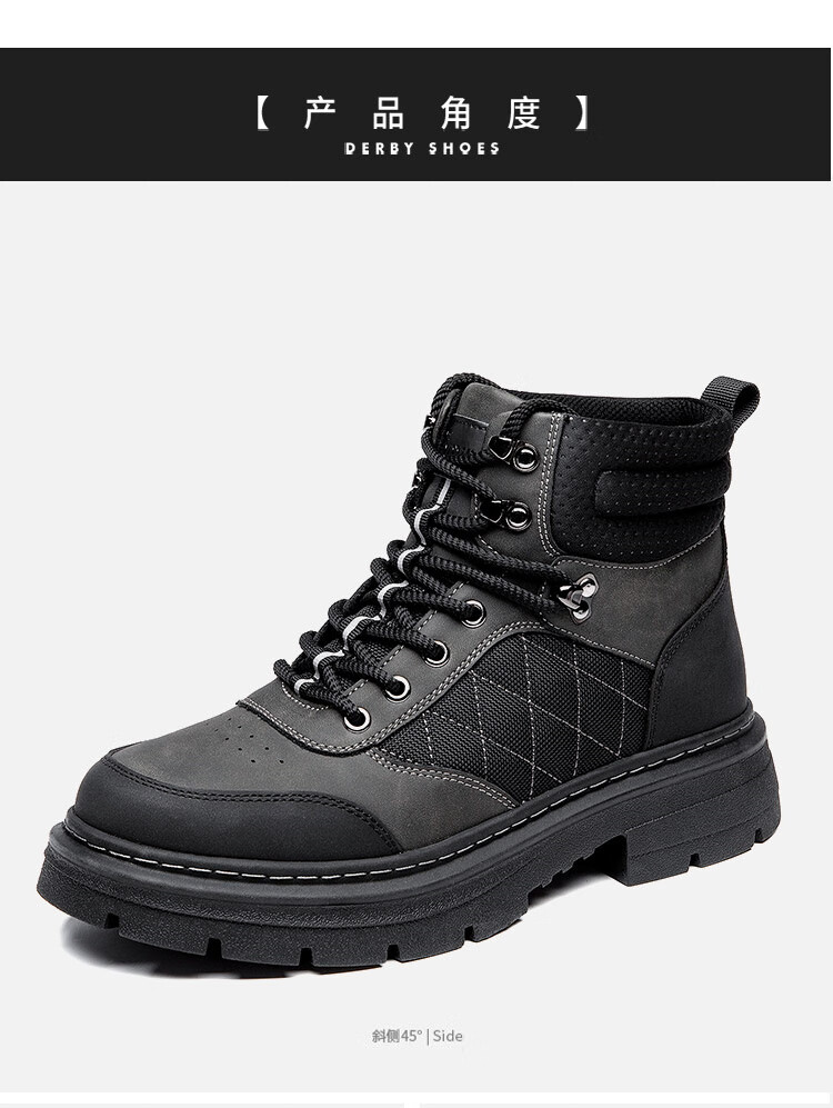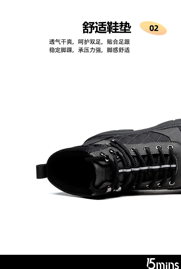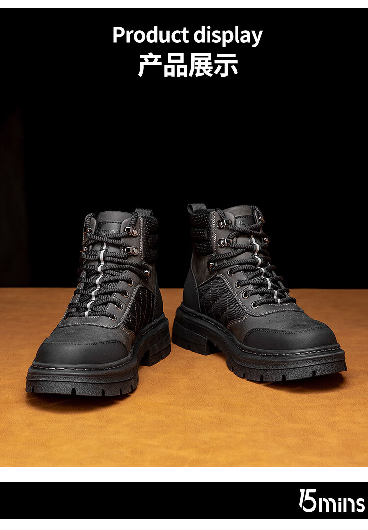15分钟男士马丁靴时尚男靴舒适户外靴子男英伦风工装靴 E1171 黑灰 41