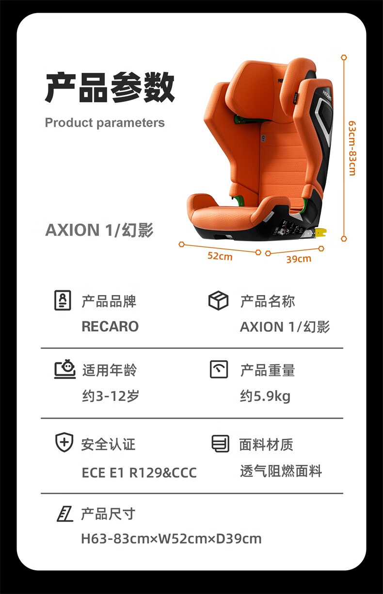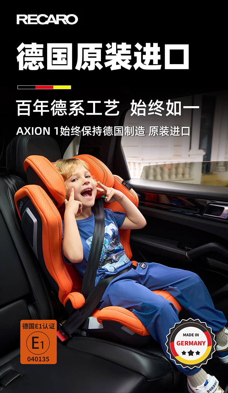 RECARO汽车儿童安全座椅3-12岁德国原装进口ADAC高分AXION 1幻影摩卡灰