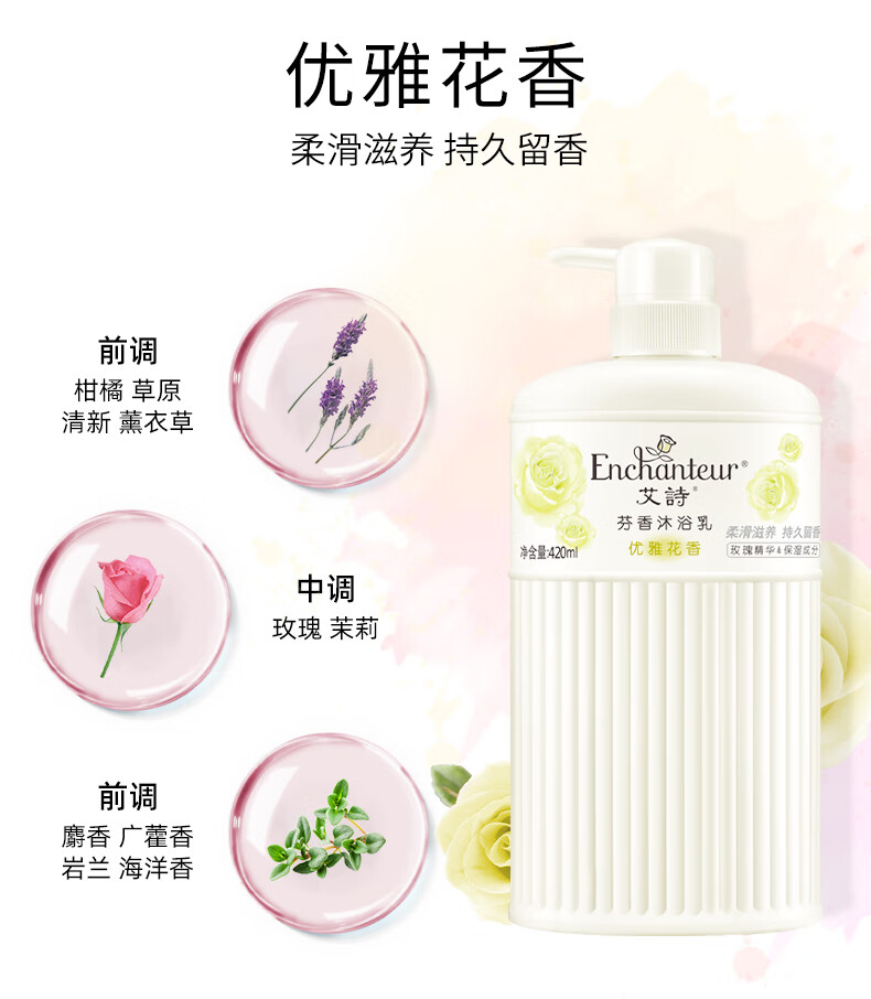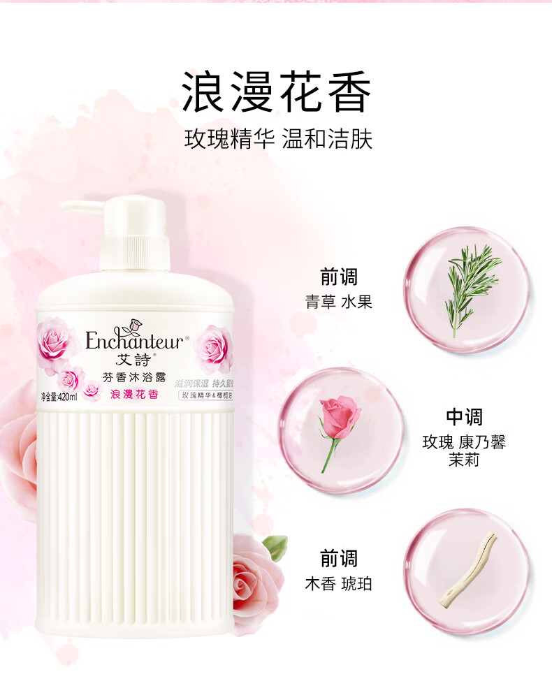艾诗(Enchanteur)沐浴露留香滋润保湿香氛沐浴乳420ml*3瓶