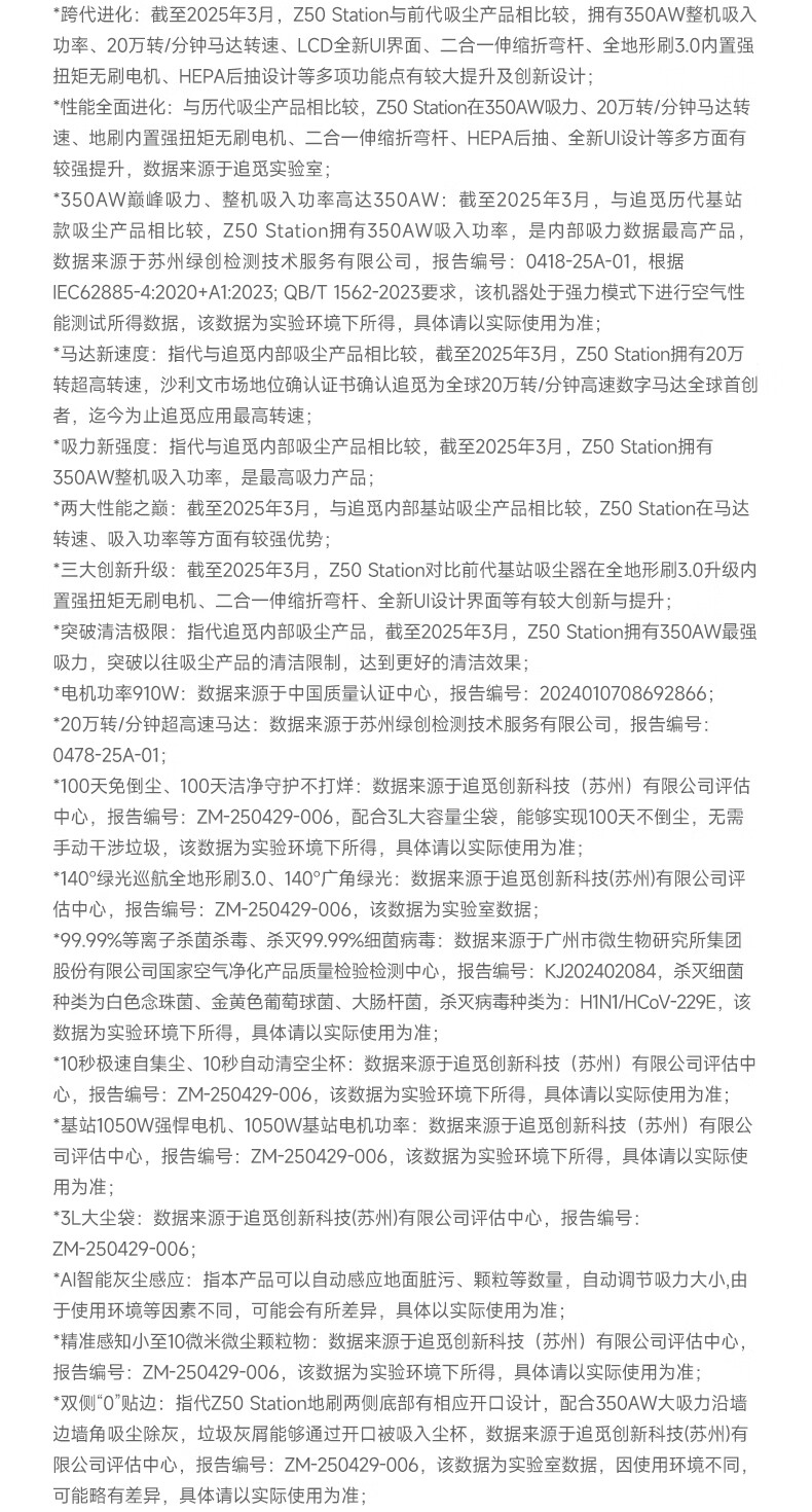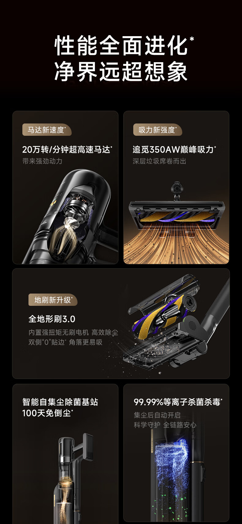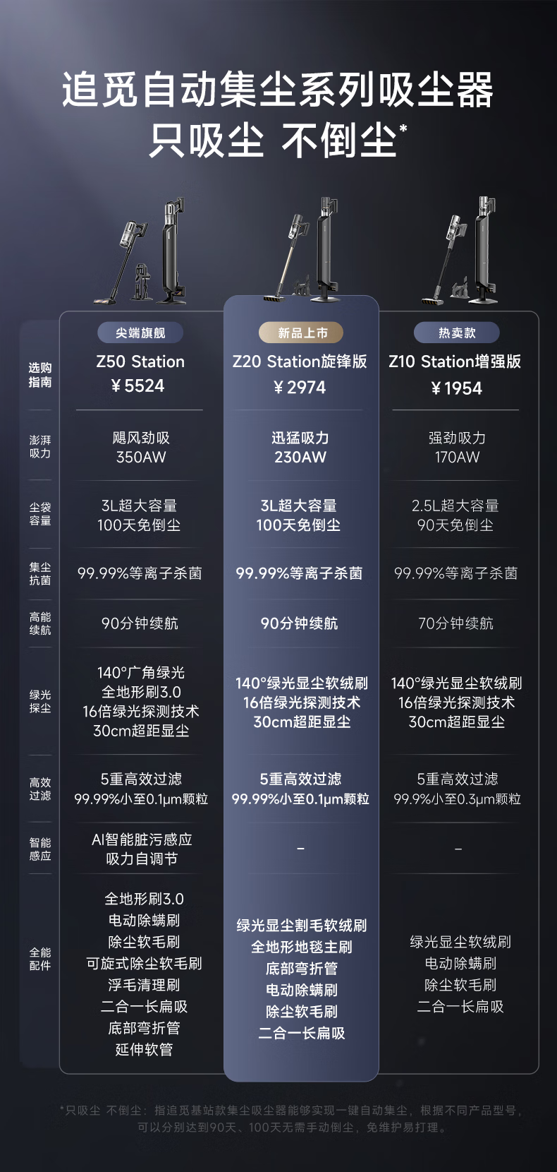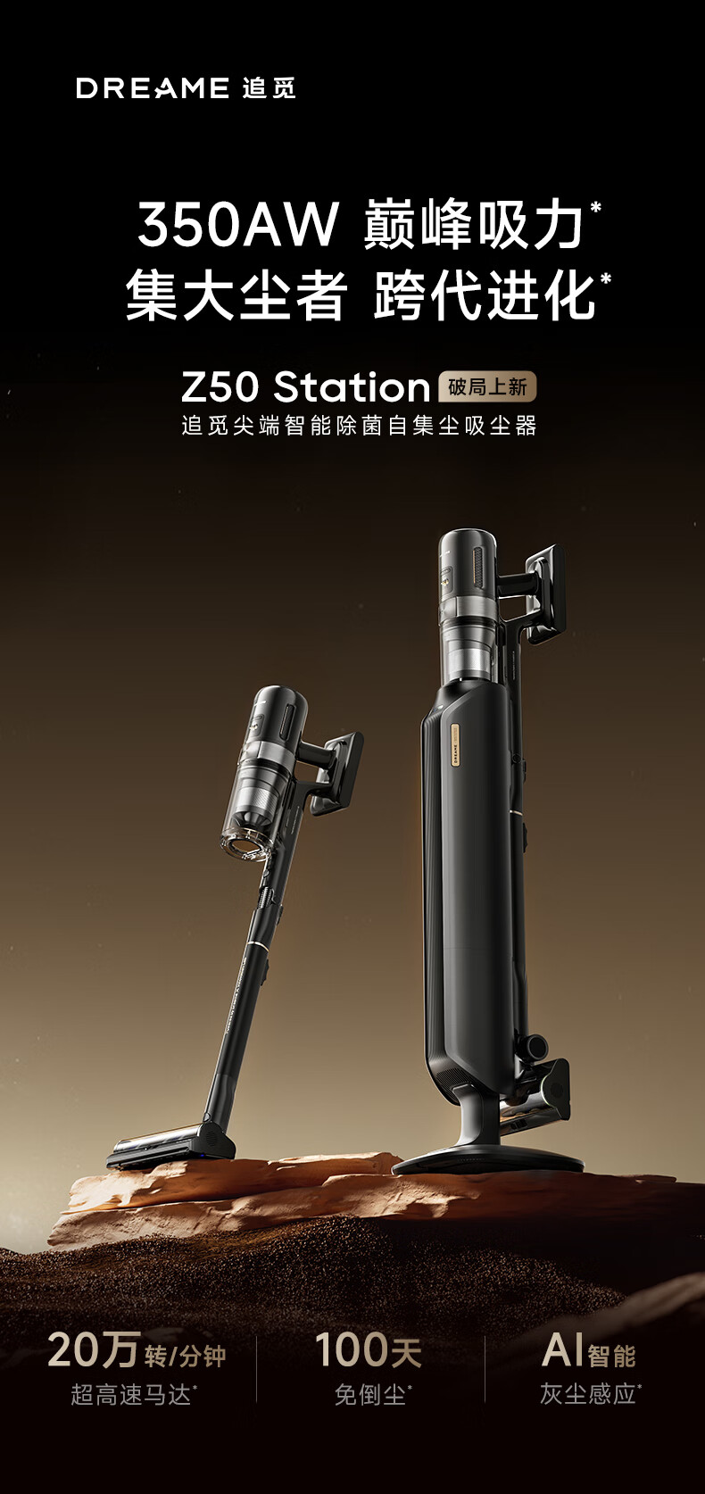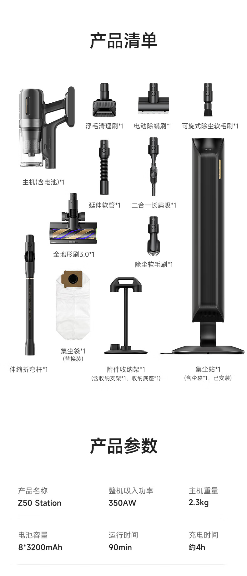 追觅自集尘吸尘器Z50 Station AI灰尘感应 家用无线手持 350AW大吸力 100天不动手 宠物家庭适用