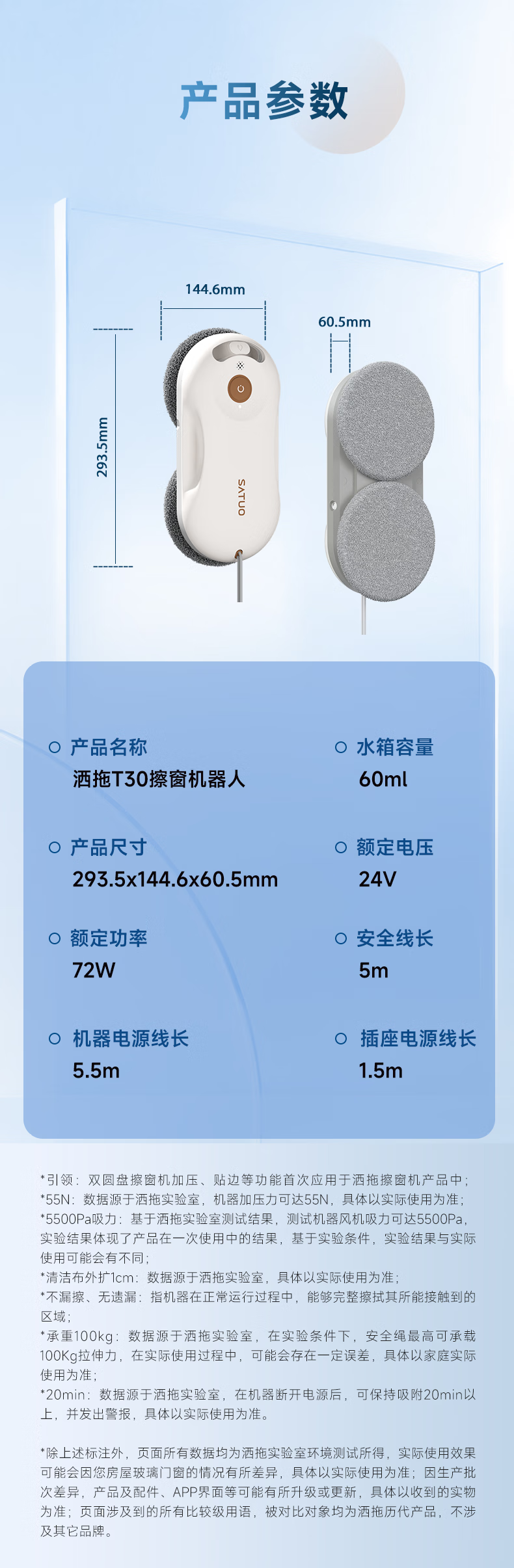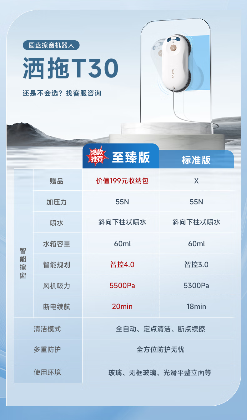 洒拖(SATUO)【国家补贴】T30擦窗机器人家政专用擦玻璃神器 洒脱高层户外智能喷水擦玻璃机器人 至臻版-百元机皇-极致性价比