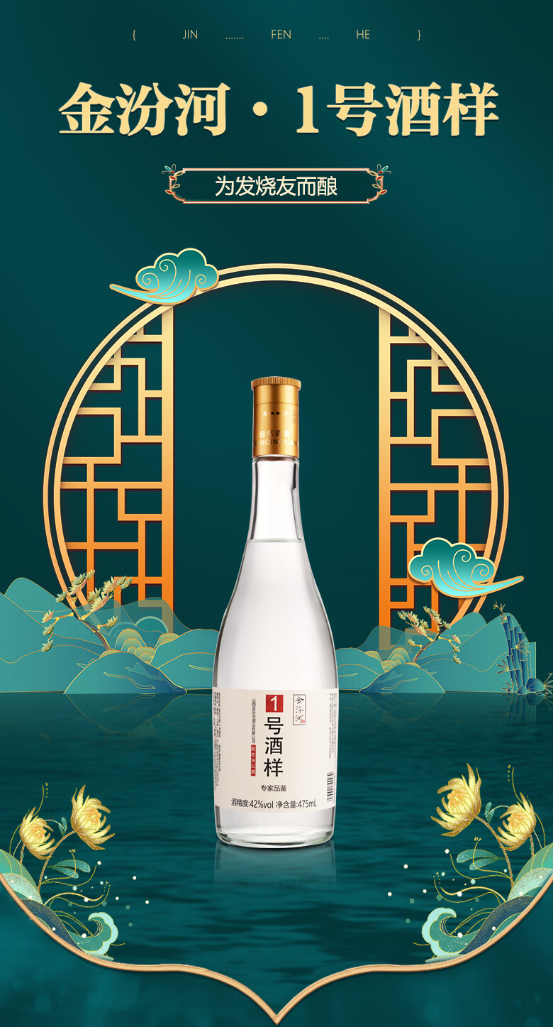 金汾河1号酒样 清香型白酒 53度475ml 收藏自饮宴请送礼 光瓶装 年货节 53度 475mL 1瓶 光瓶装