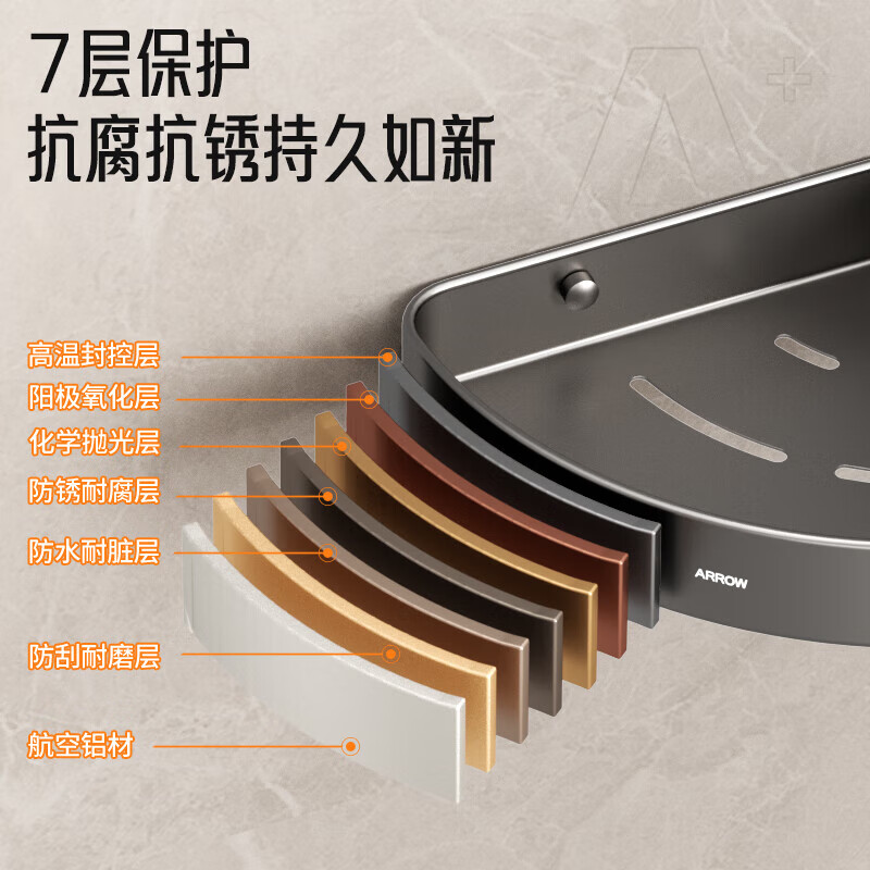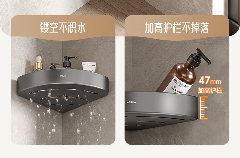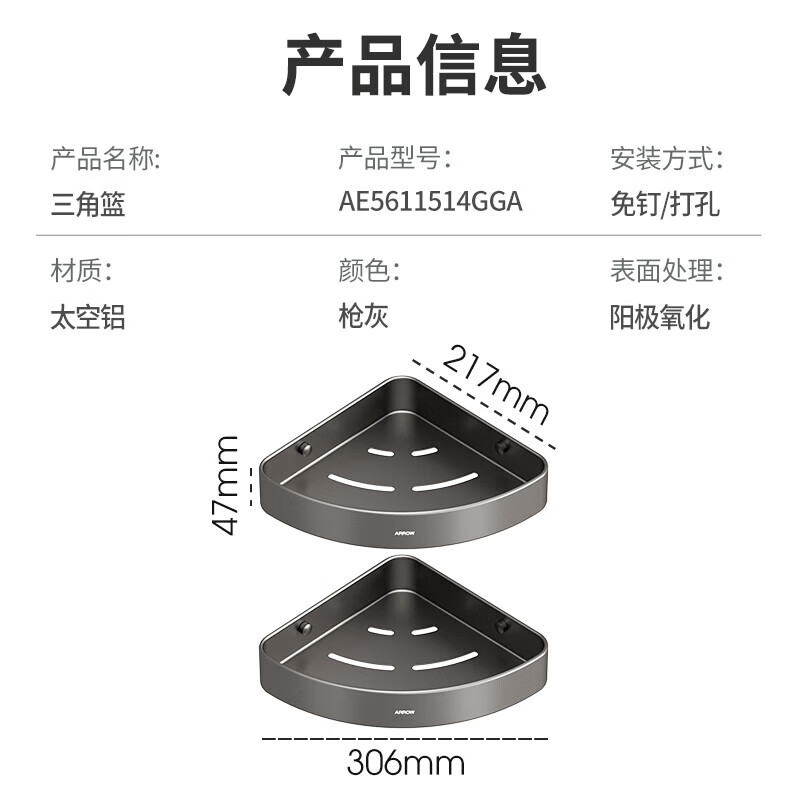 箭牌(ARROW)三角篮太空铝免打孔浴室卫生间置物架厕所挂件收纳篮