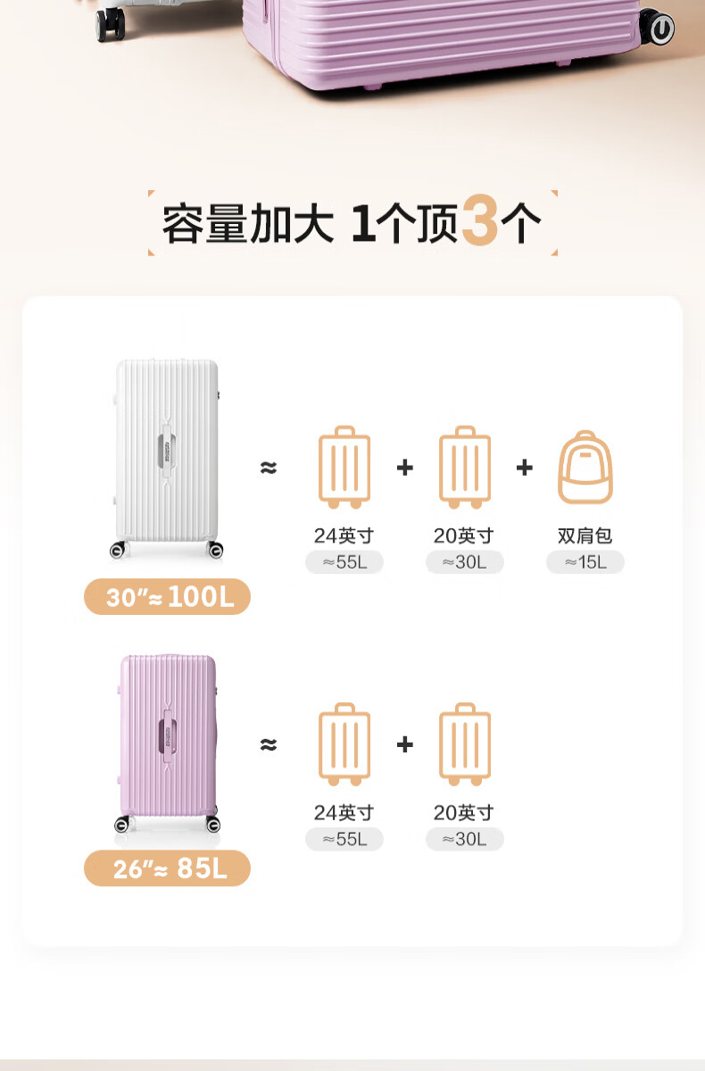 新秀丽(Samsonite)行李箱20英寸拉杆箱大容量旅行箱包HK6紫色密码登机箱