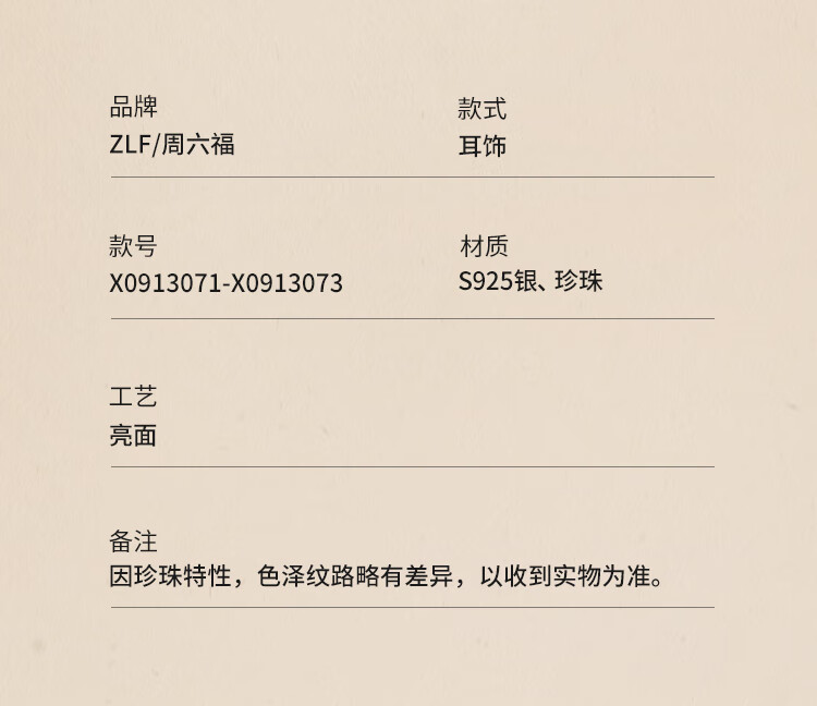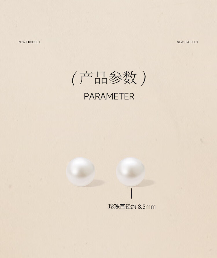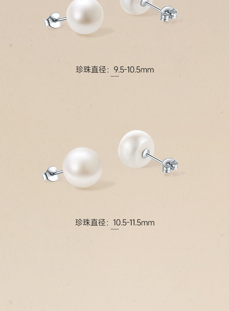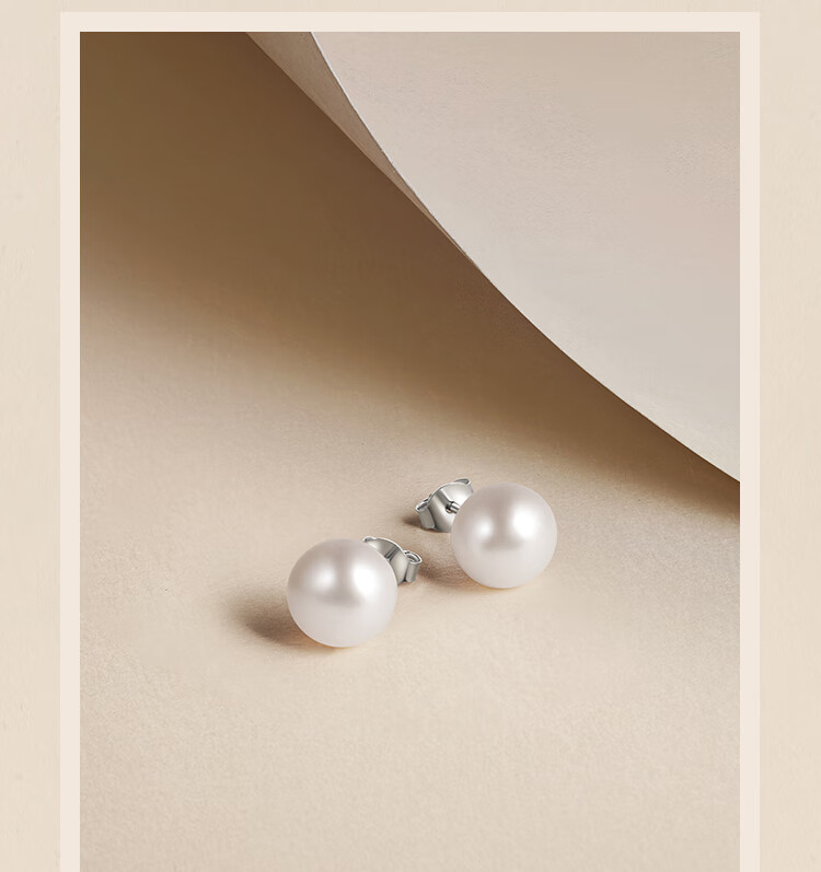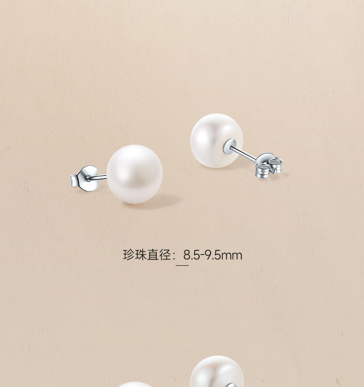 周六福(ZLF)圣诞礼物 S925银淡水珍珠耳钉女简约优雅耳针耳饰送 珍珠耳钉8.5-9.5mm