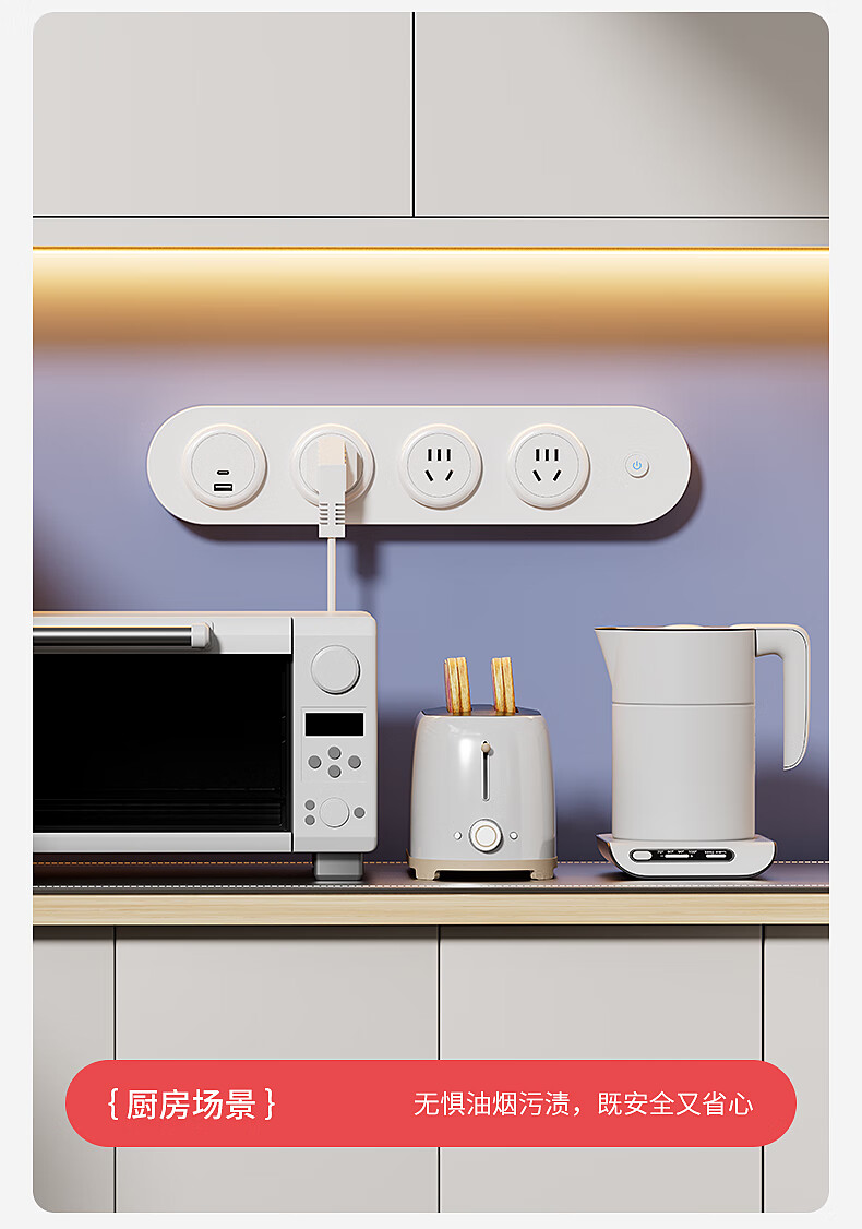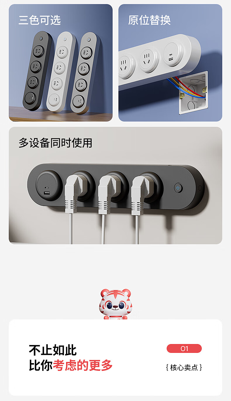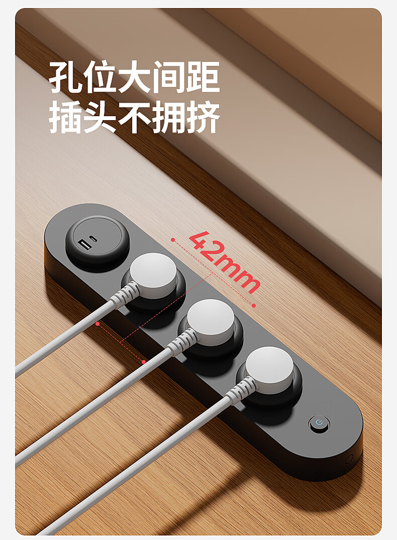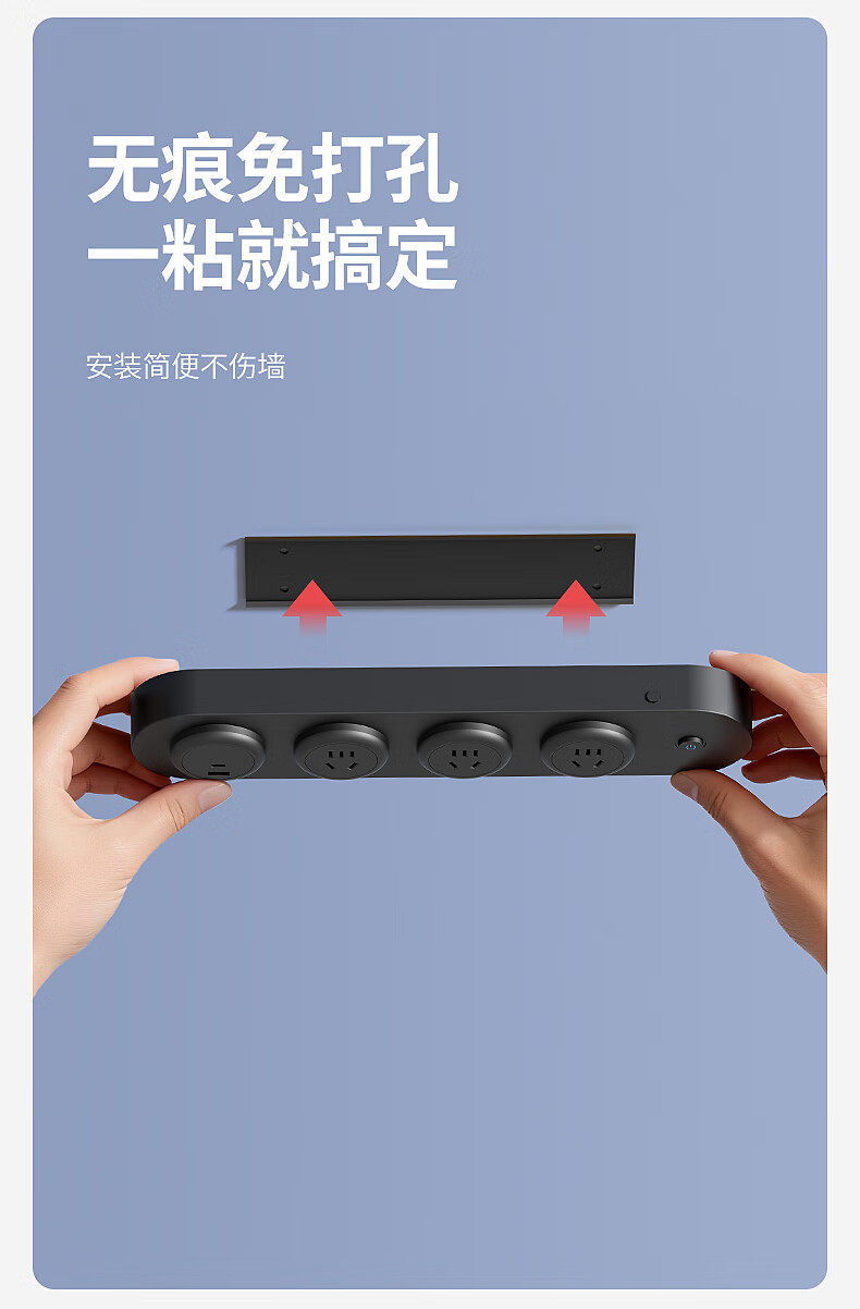国际电工挂壁式扩展插座家用厨房餐边柜轨道插座USB带Type-C一转多孔插排 黑色扩展排插-【四位五孔】