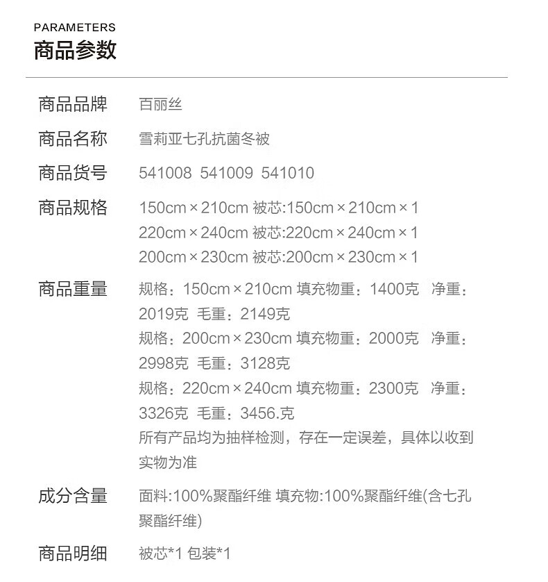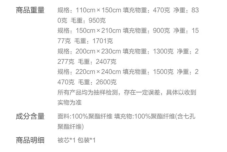 百丽丝被子七孔纤维抗菌保暖春秋被冬被加厚宿舍家用被芯 七孔抗菌春秋被(漂白色) 110cm×150cm
