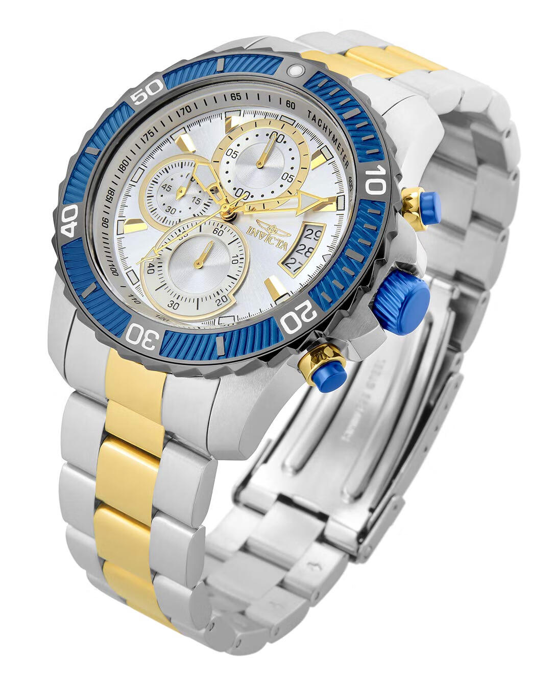 INVICTA 男式专业潜水石英多功能银色表盘手表 Stainless Steel 45