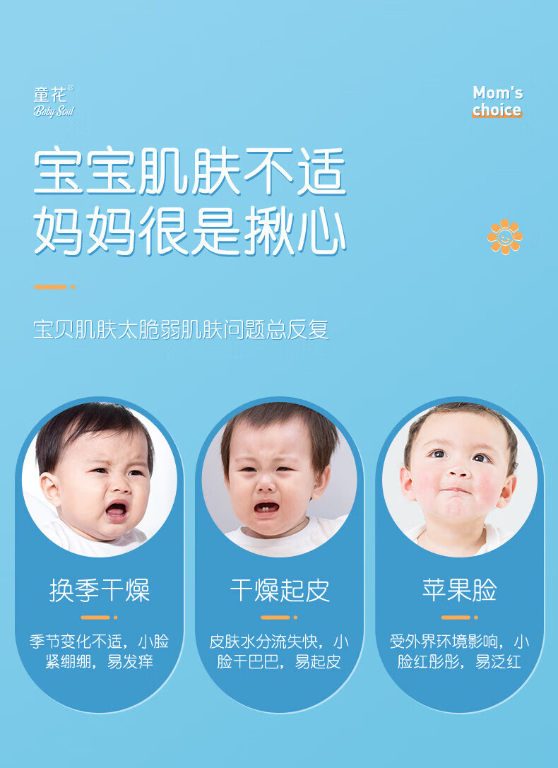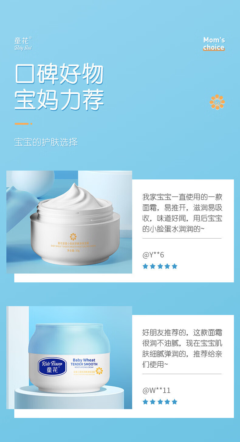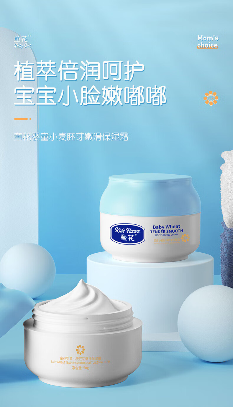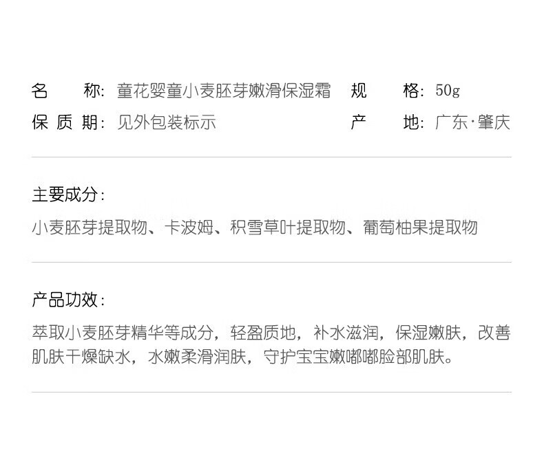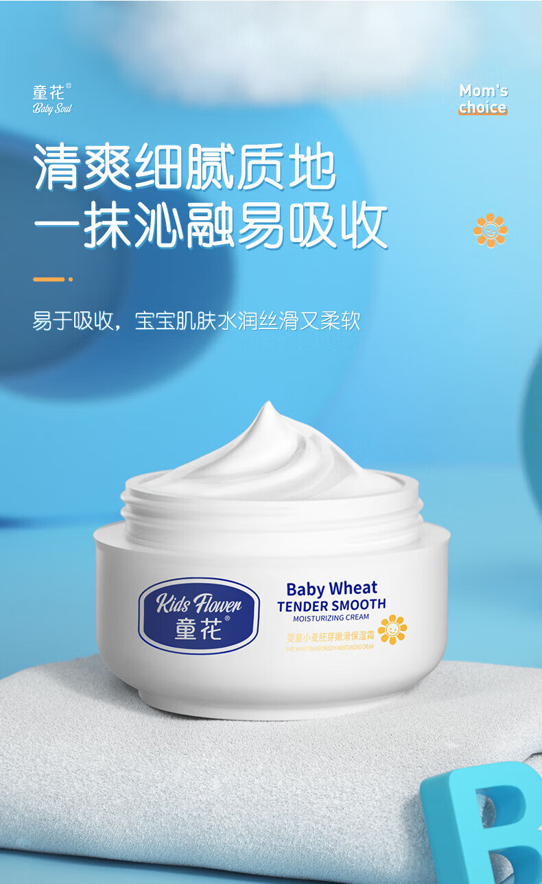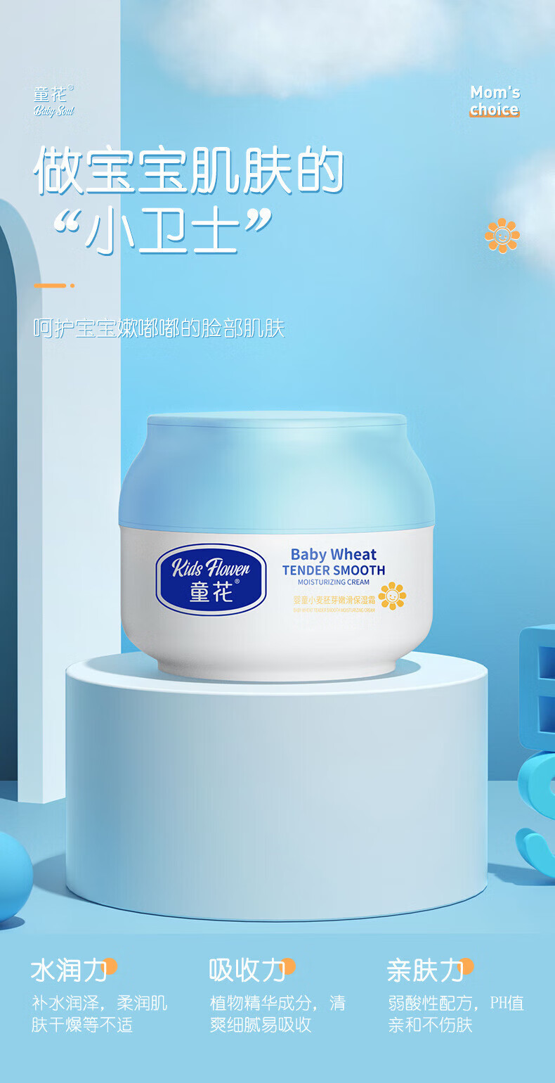 童花花宝宝面霜补水保湿秋冬润肤防皴 小麦胚芽润肤乳120g