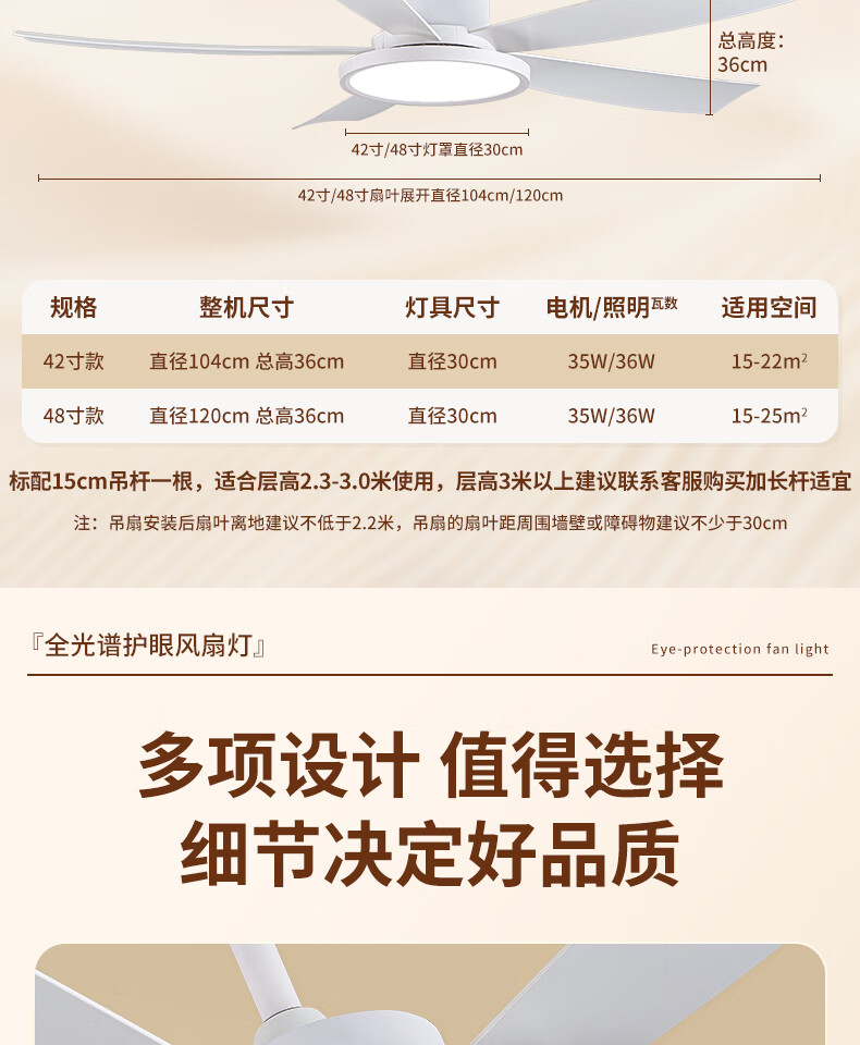 钻石牌风扇灯一体餐厅吊扇灯客厅吊灯带风扇卧室吸顶吊顶简约电扇灯具 42寸白色+变频遥控-吊杆