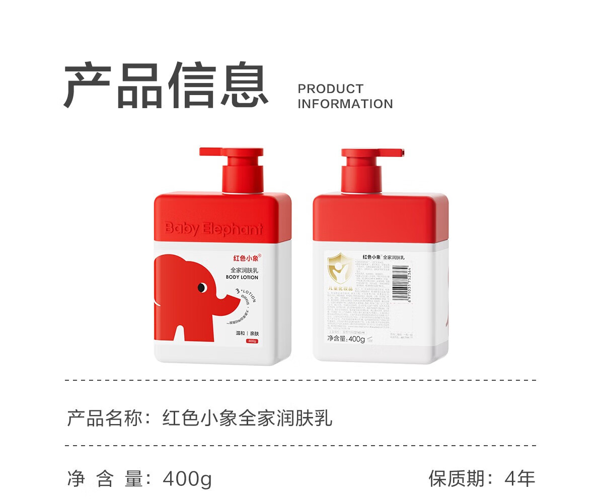 红色小象身体乳 婴儿宝宝儿童润肤乳 全家适用身体乳四季清爽保湿滋润护肤 【全家润肤乳400g】