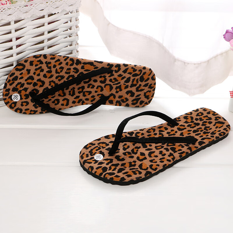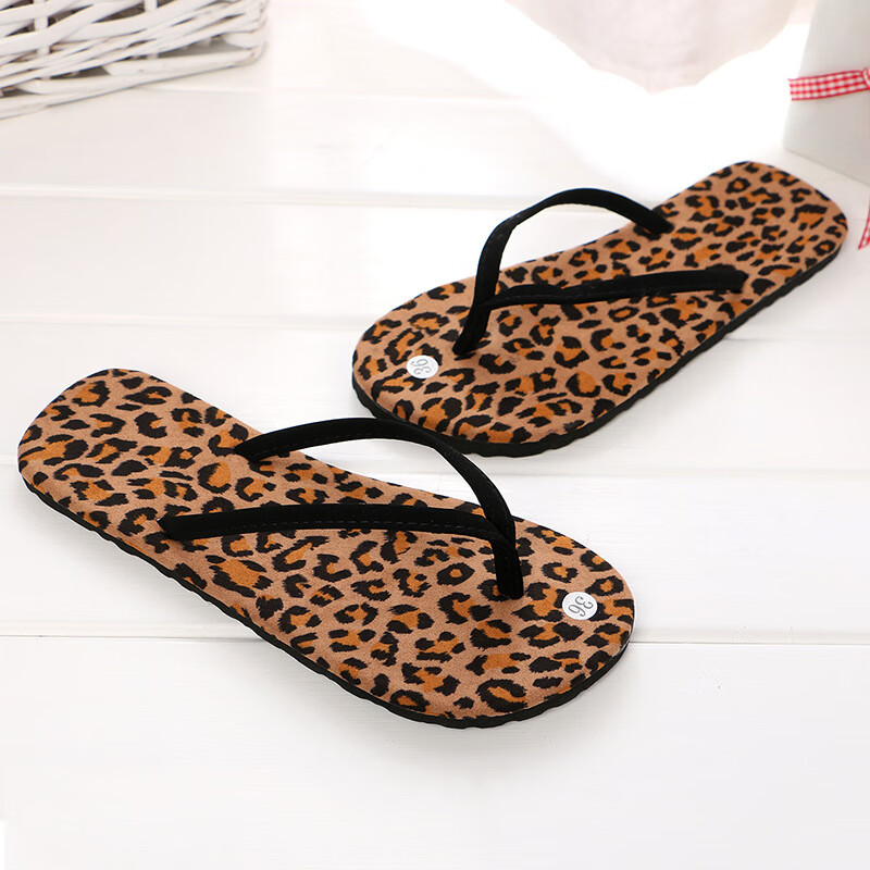 【好物优选】豹纹时尚平底人字拖凉拖防滑拖鞋厂家直销棉拖鞋底跟 1688----花朵灰 36
