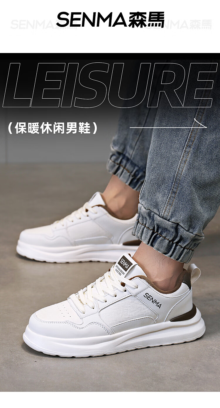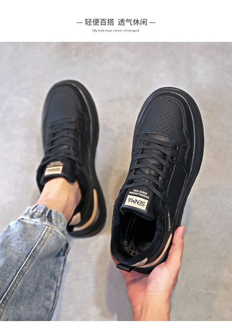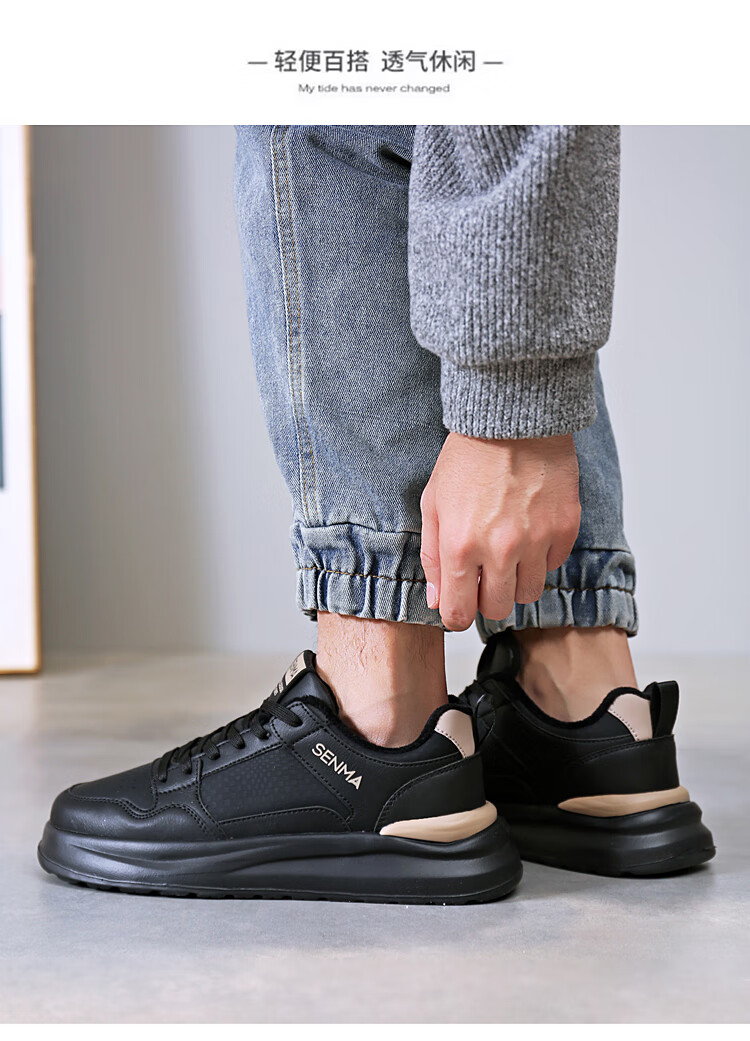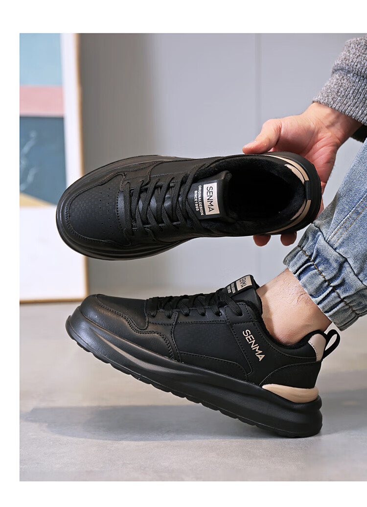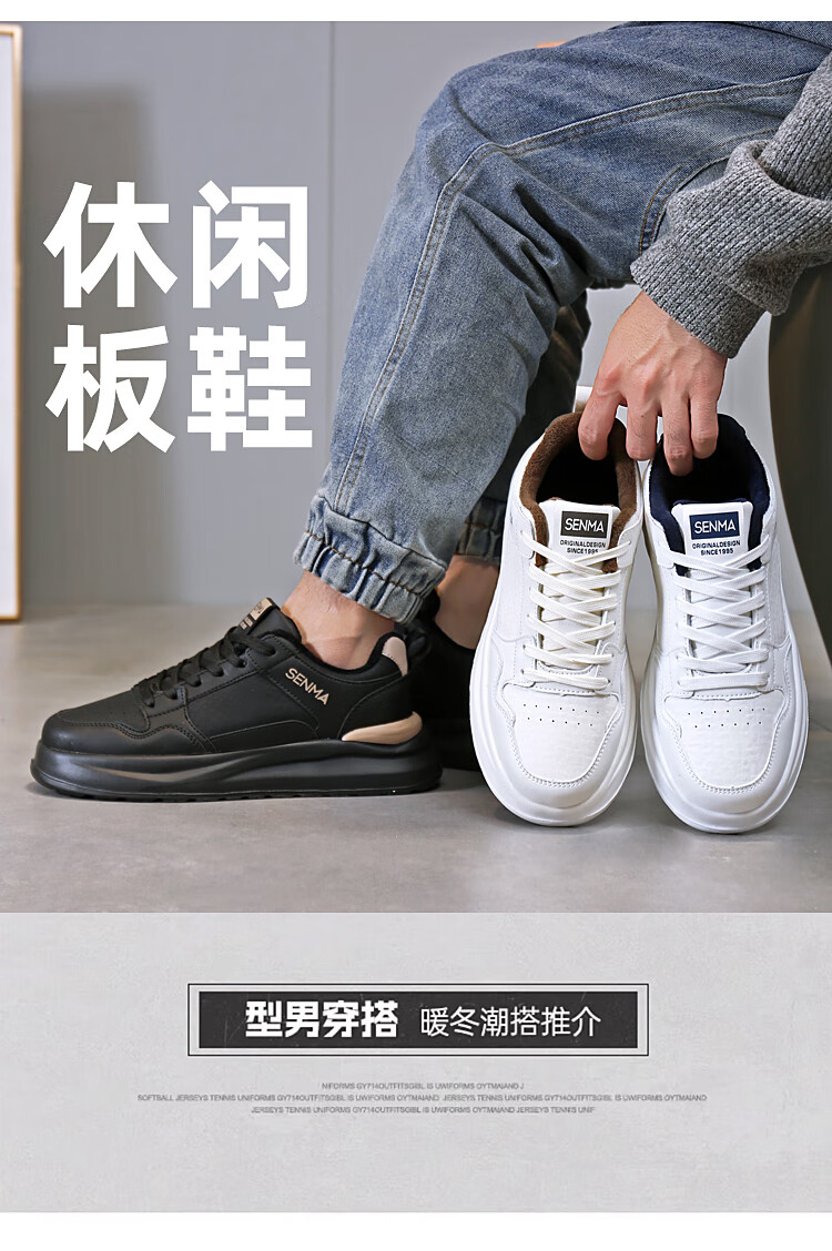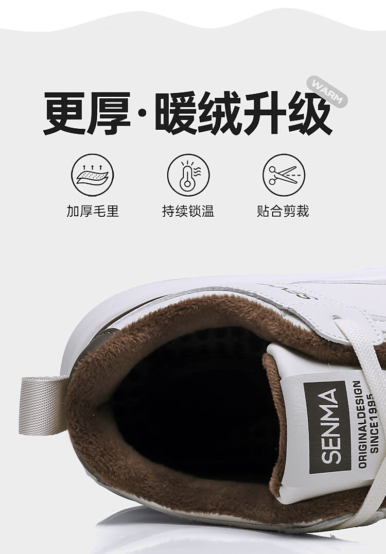 森馬(senma)冬季新款男鞋加棉加厚男滑板鞋轻便防滑运动休闲鞋 米卡其 45