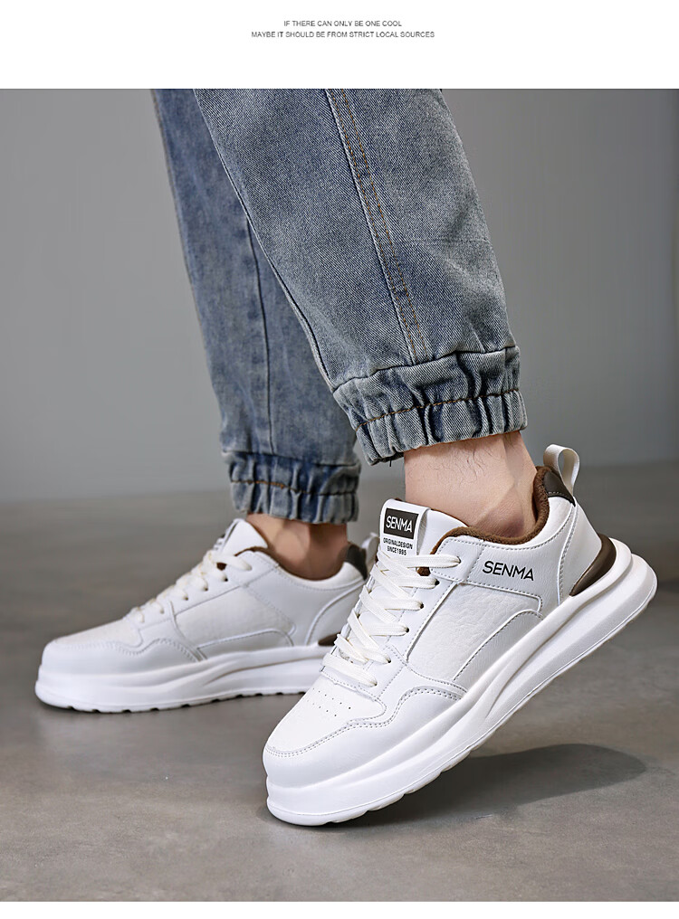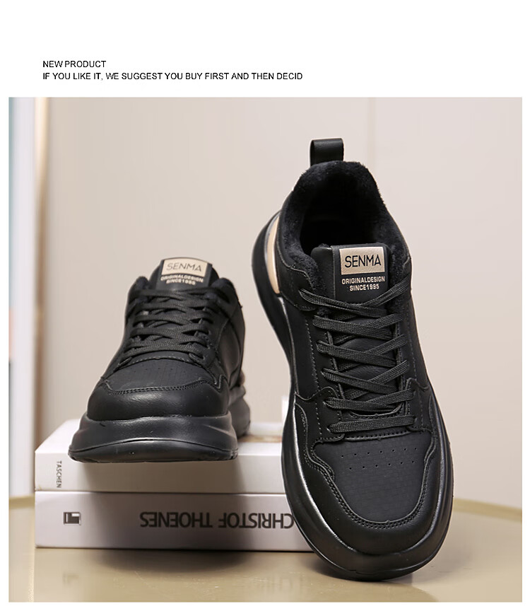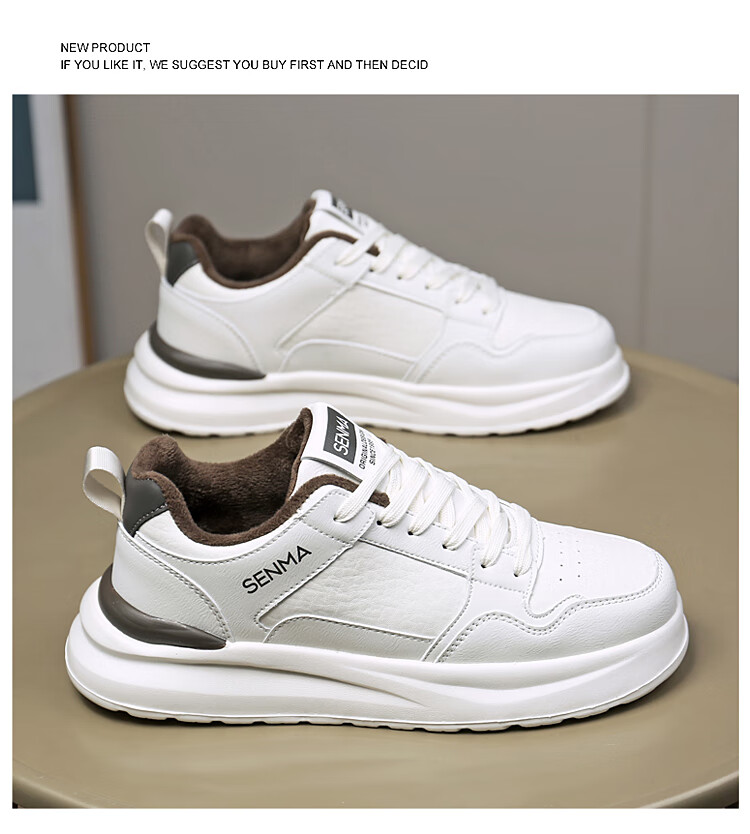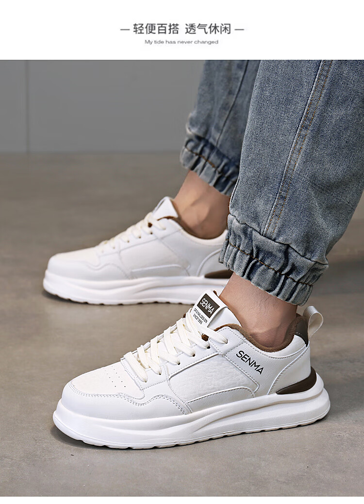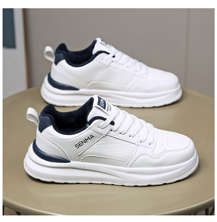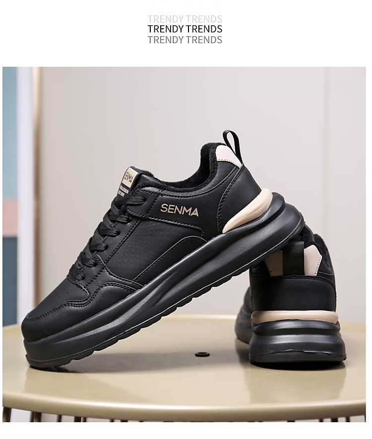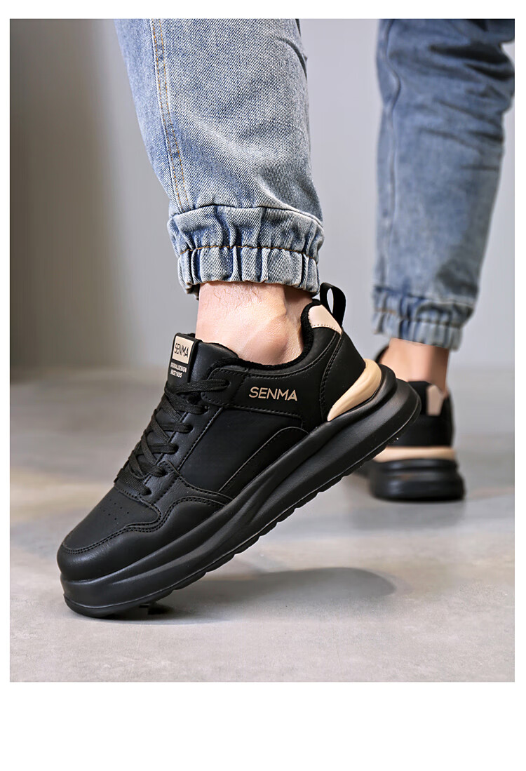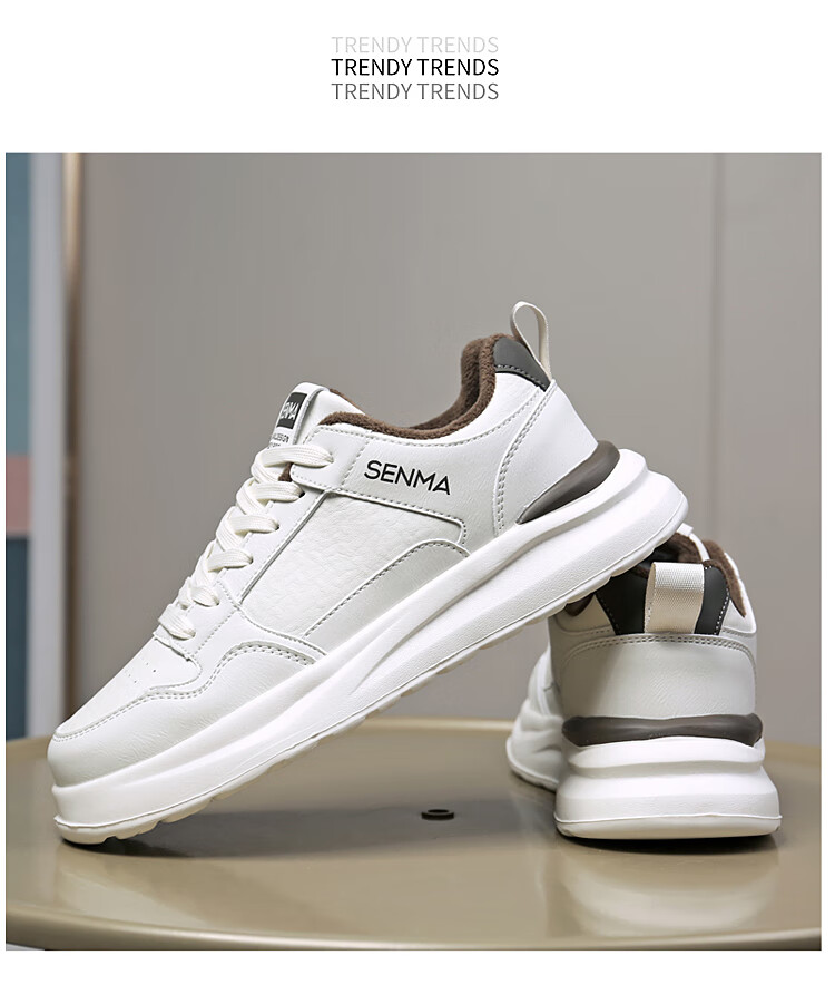 森馬(senma)冬季新款男鞋加棉加厚男滑板鞋轻便防滑运动休闲鞋 米卡其 45