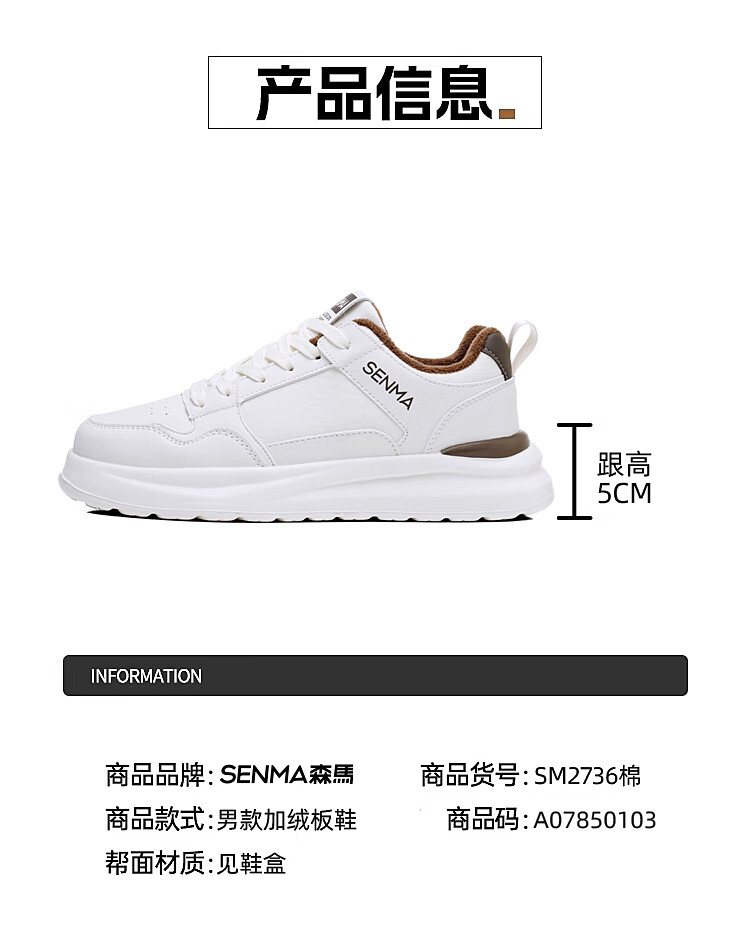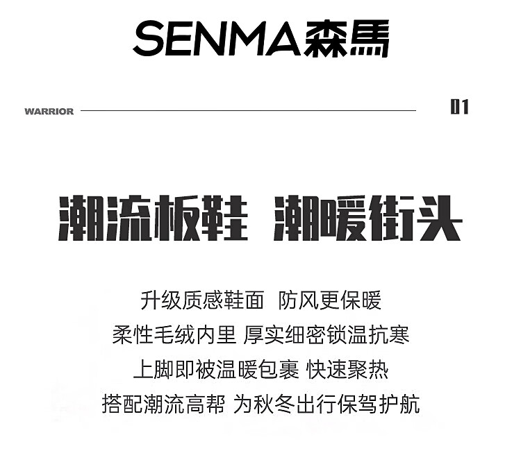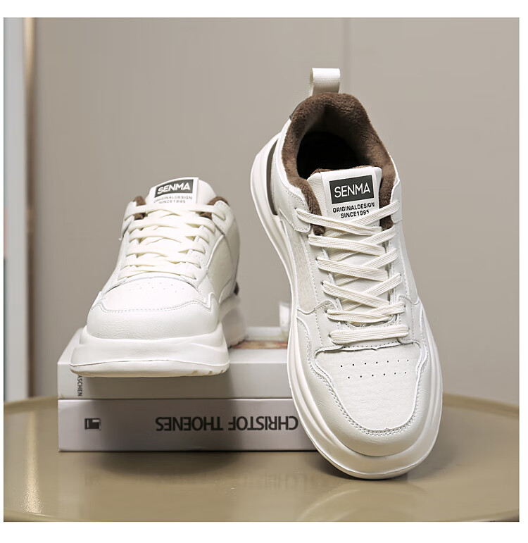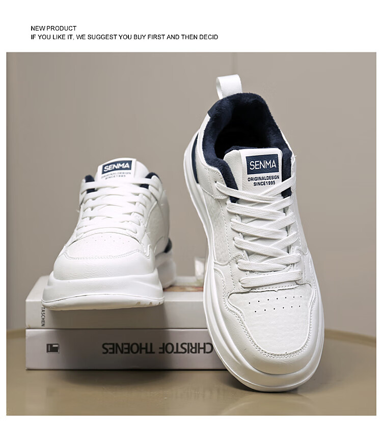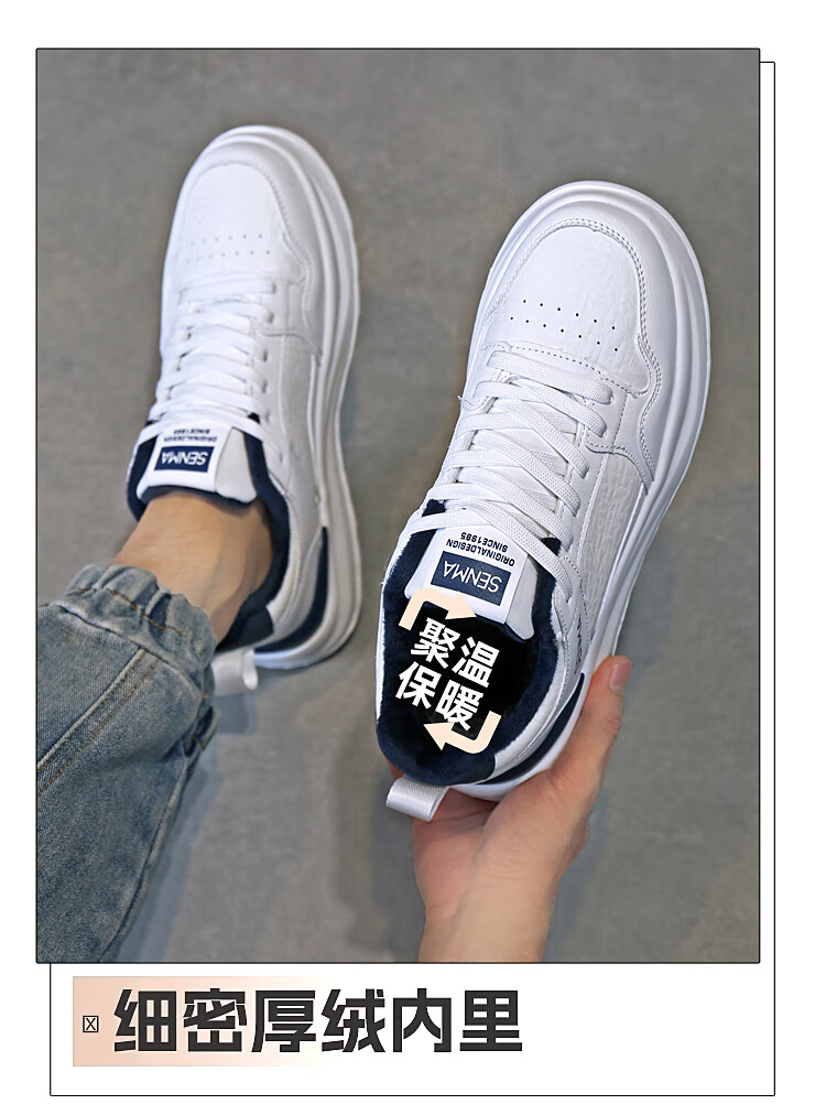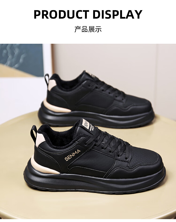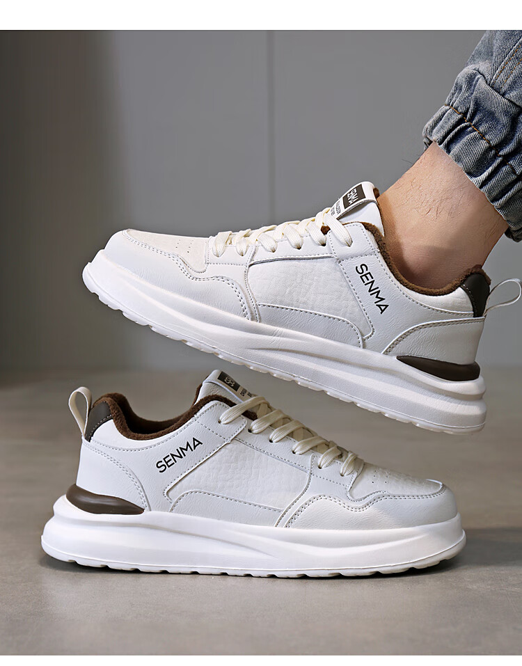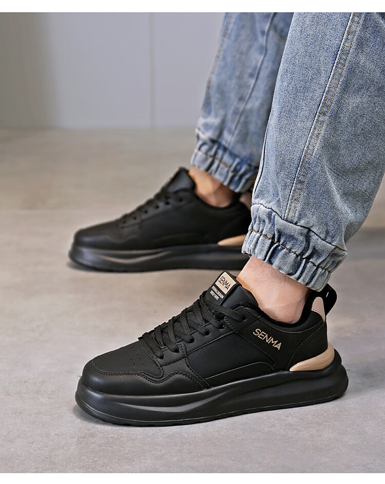 森馬(senma)冬季新款男鞋加棉加厚男滑板鞋轻便防滑运动休闲鞋 米卡其 45