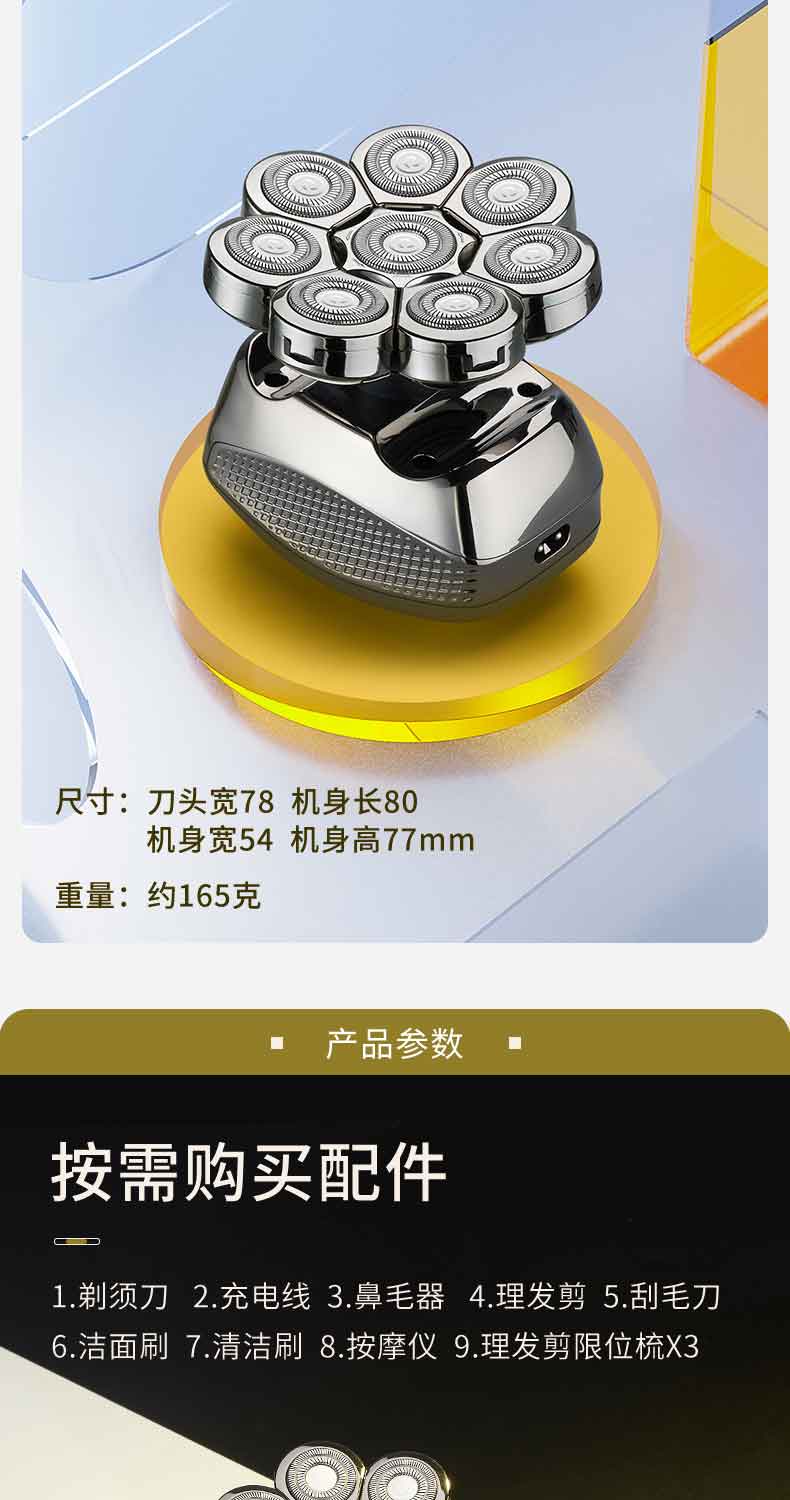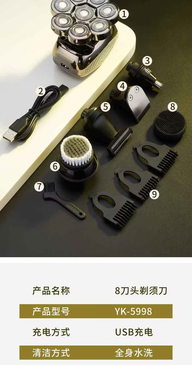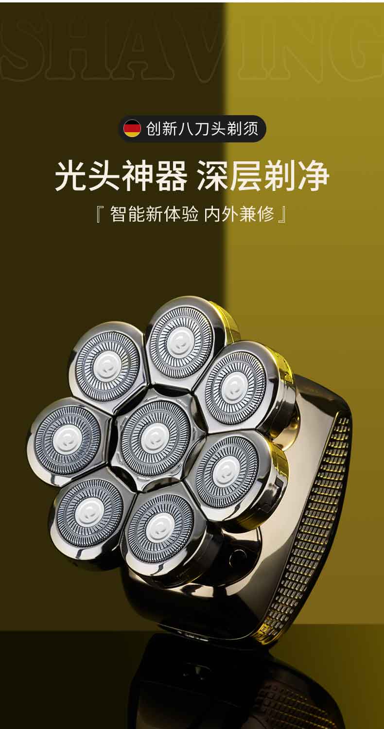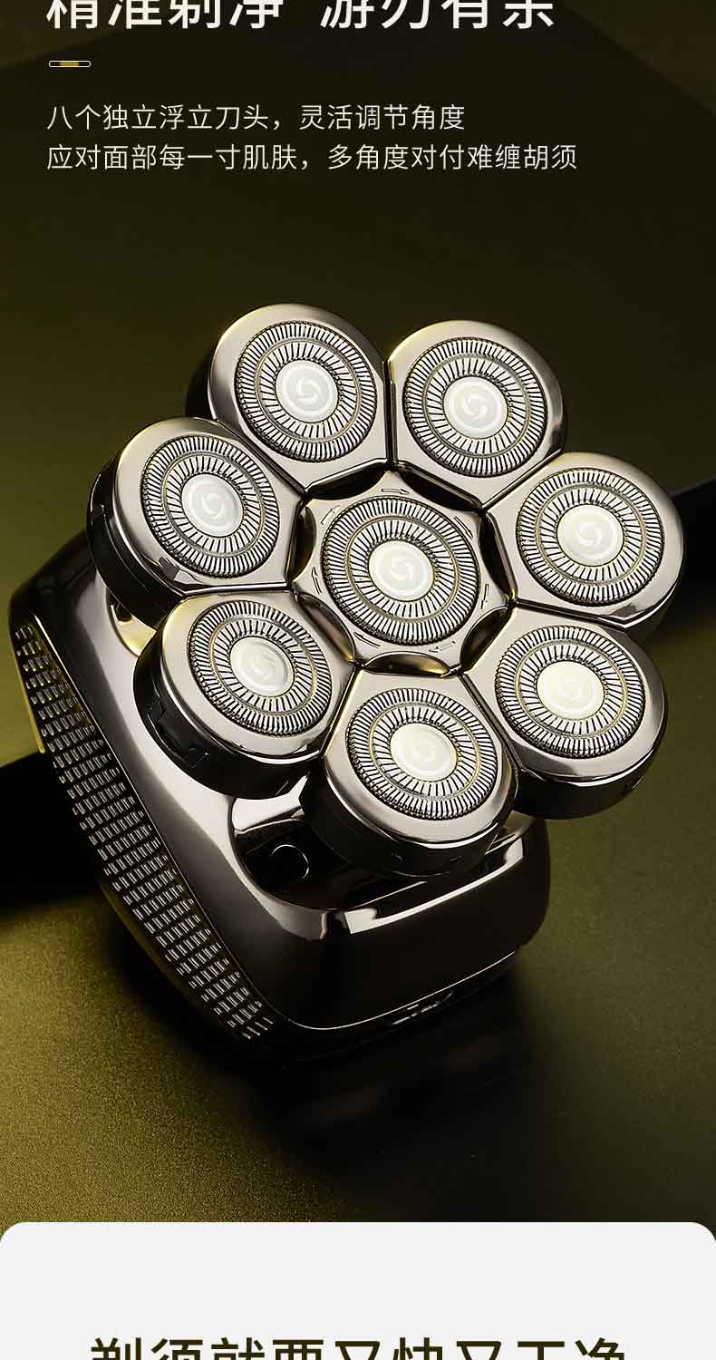 约克 (YUEKE)剃光头神器多刀头自刮胡须刀多功能剃须刀男士电动刮胡刀送男友送老公情人节礼物礼品 八刀头单机+收纳包