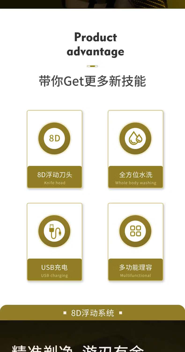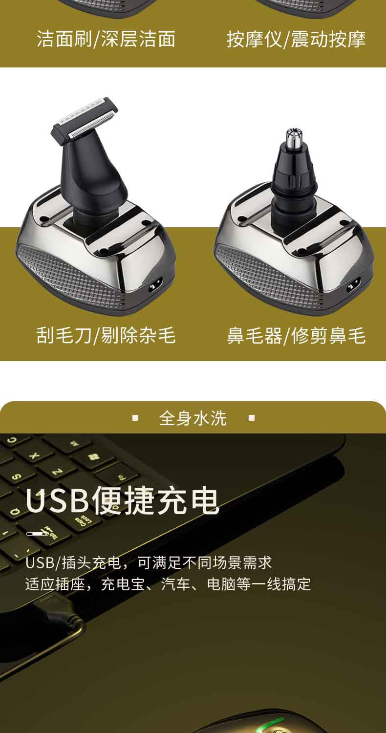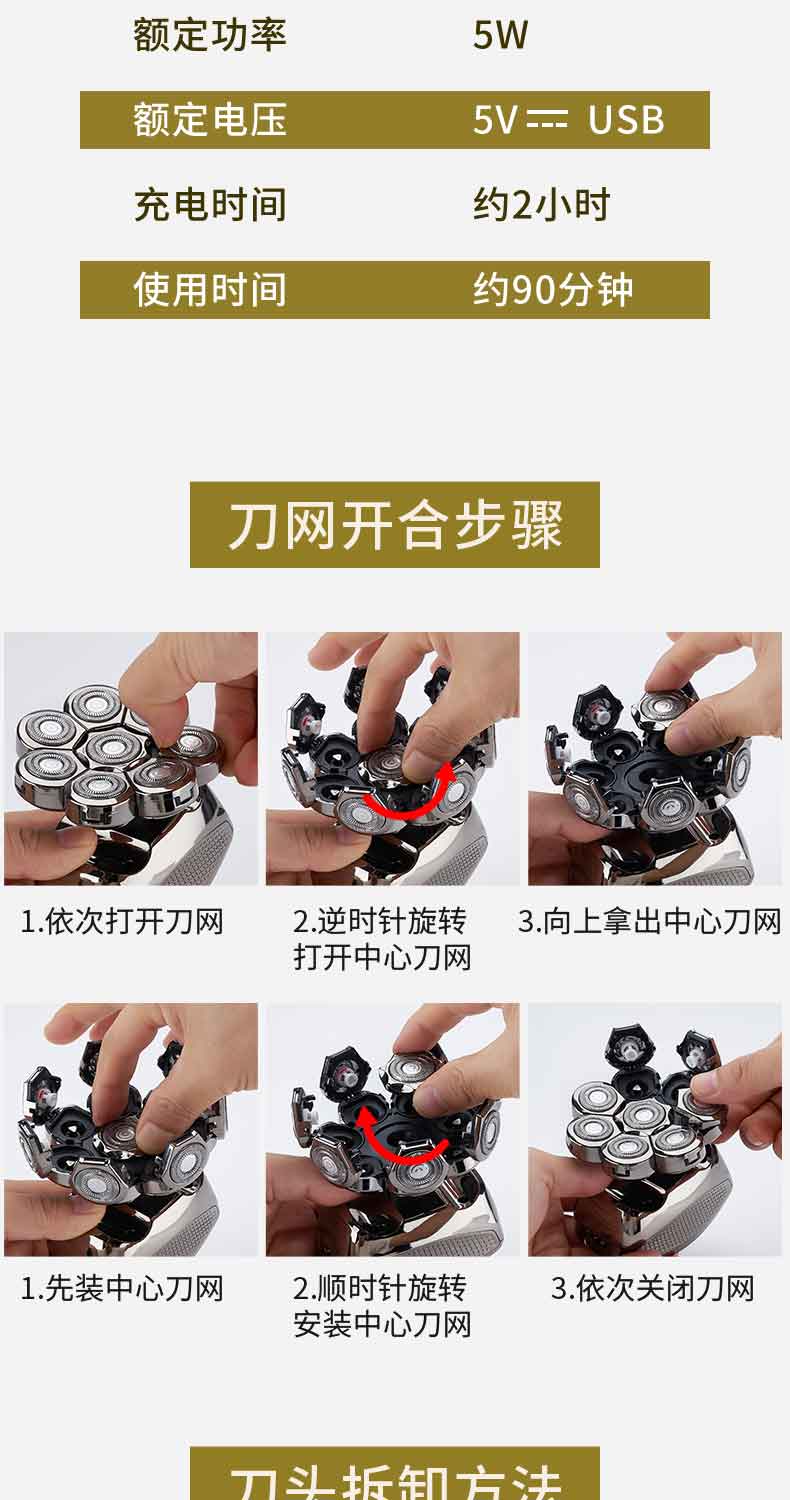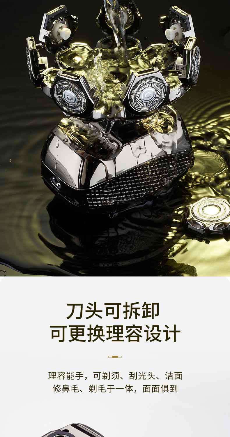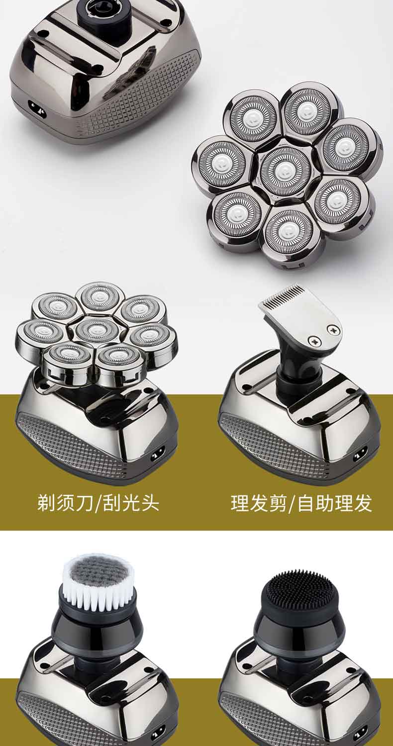 约克 (YUEKE)剃光头神器多刀头自刮胡须刀多功能剃须刀男士电动刮胡刀送男友送老公情人节礼物礼品 八刀头单机+收纳包