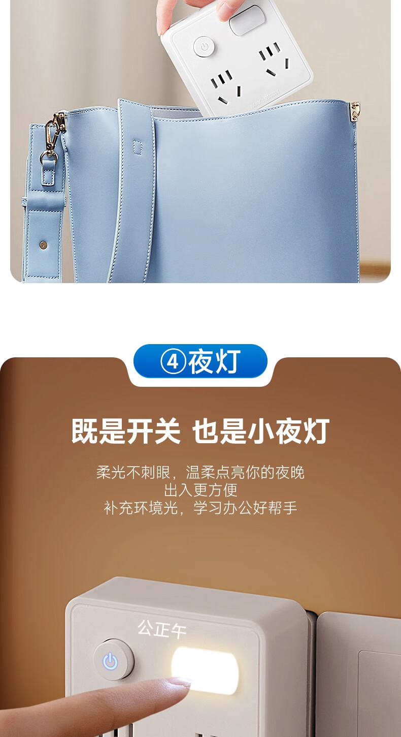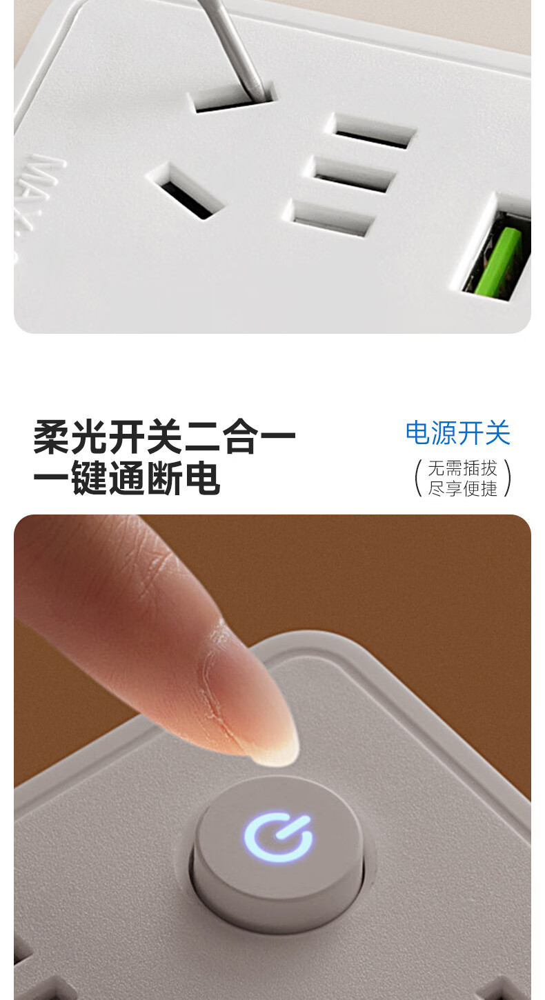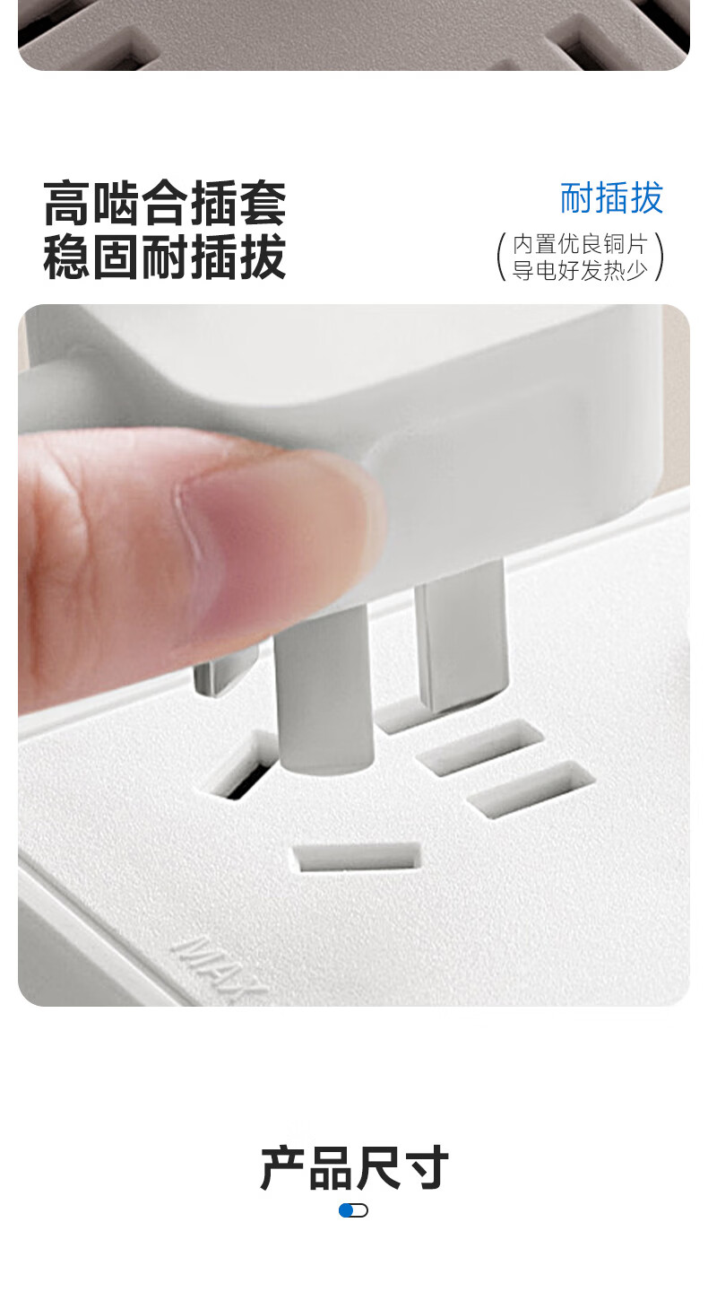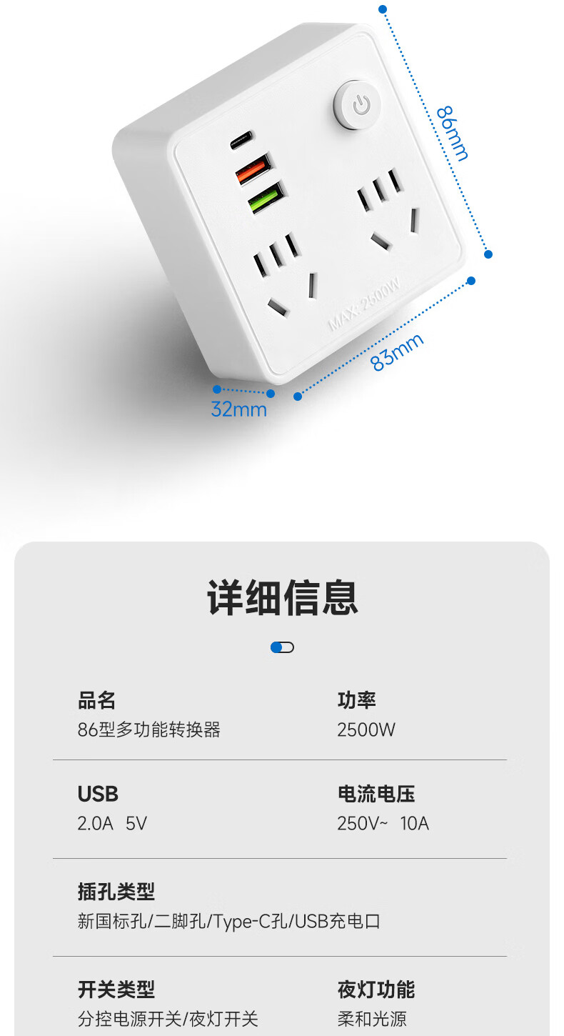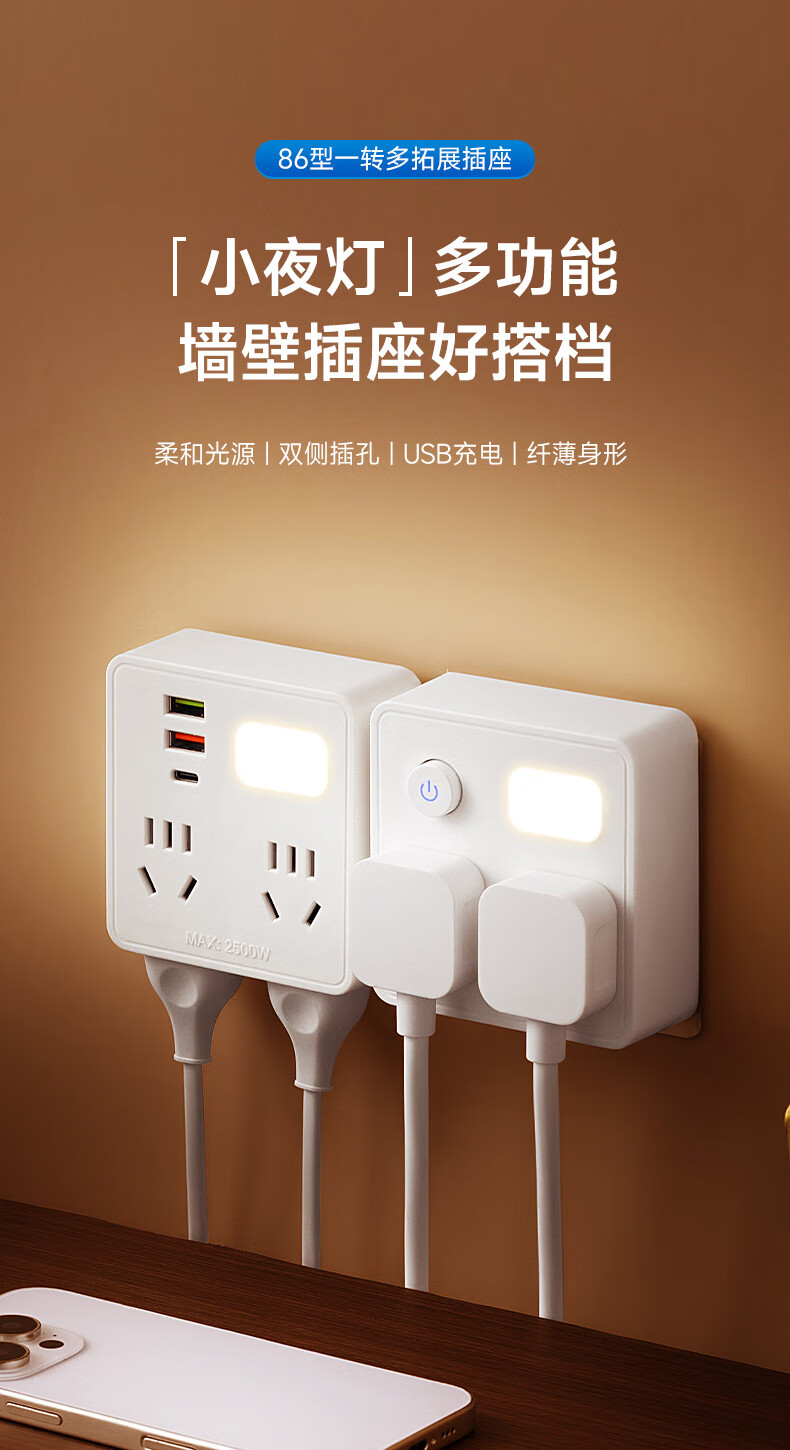 公正午纯铜插座转换器86型扩展器插头带快充USB夜灯宿舍家用办公插线板一转多位多插孔插板多功能接线板 白色时尚:一转六18孔 【纯铜+防雷】