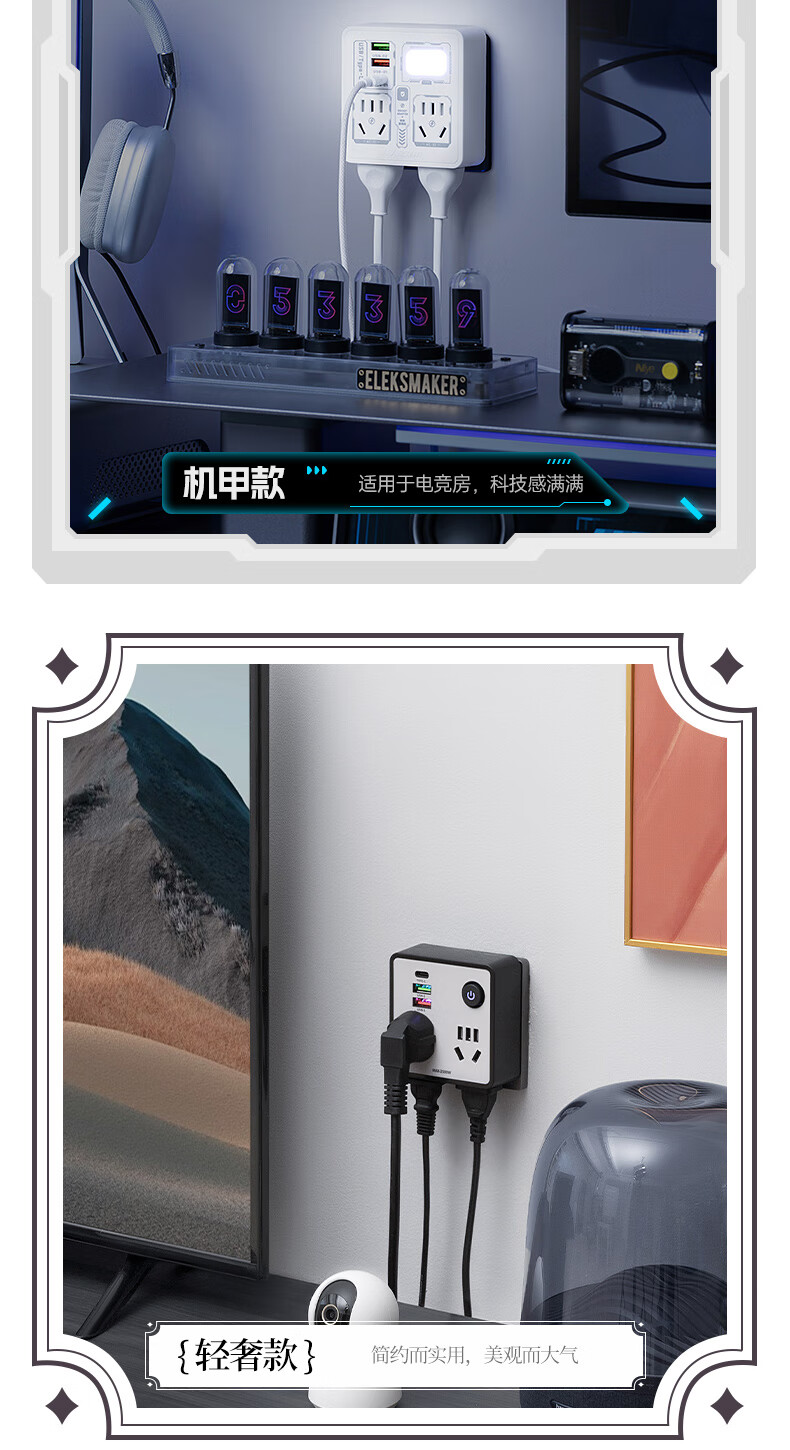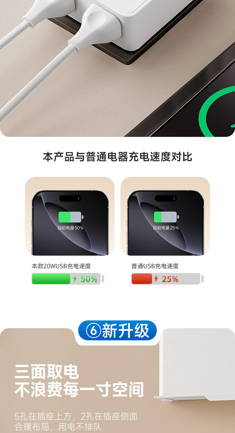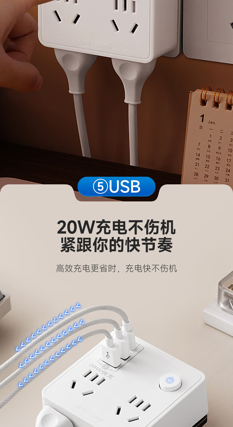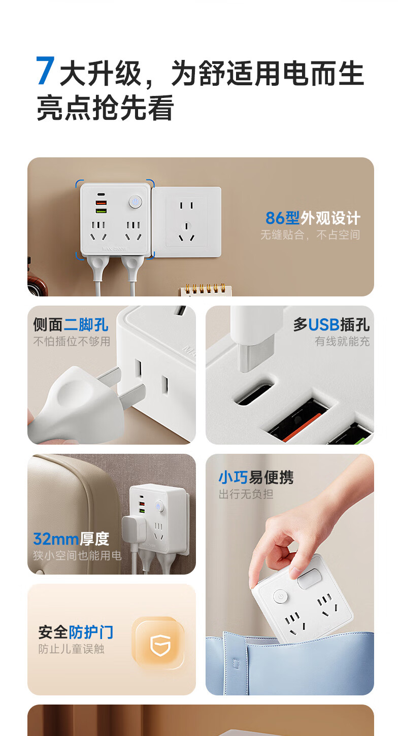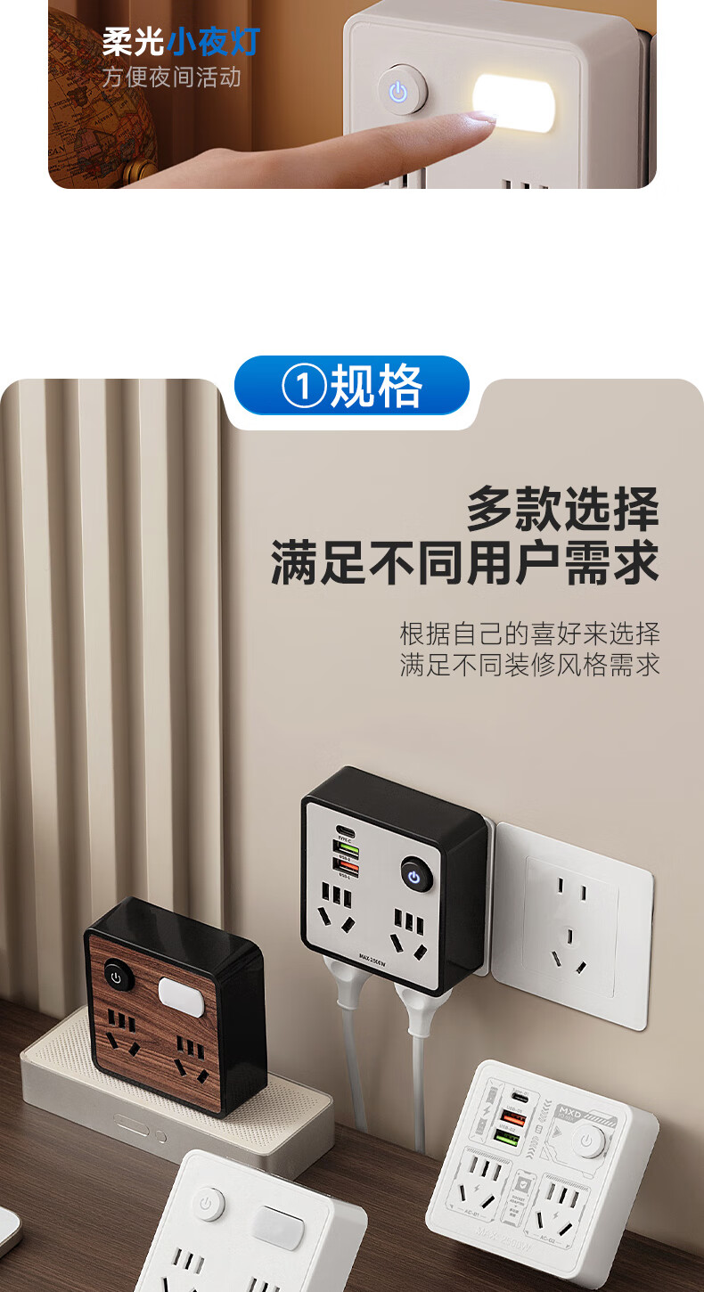 公正午纯铜插座转换器86型扩展器插头带快充USB夜灯宿舍家用办公插线板一转多位多插孔插板多功能接线板 白色时尚:一转六18孔 【纯铜+防雷】
