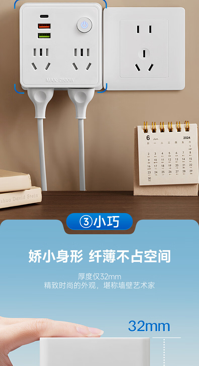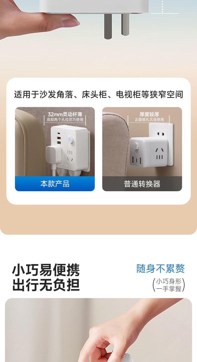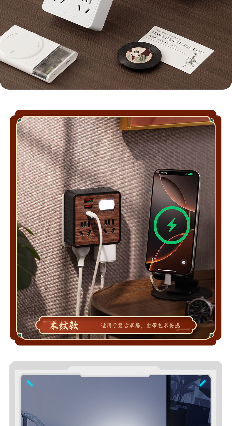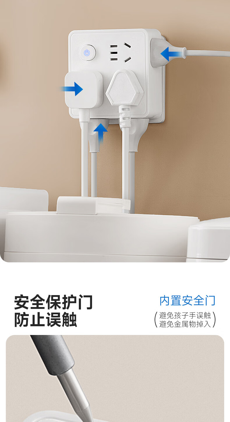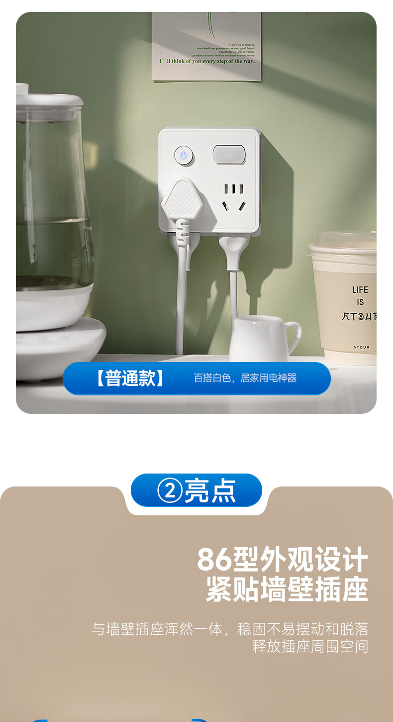 公正午纯铜插座转换器86型扩展器插头带快充USB夜灯宿舍家用办公插线板一转多位多插孔插板多功能接线板 白色时尚:一转六18孔 【纯铜+防雷】