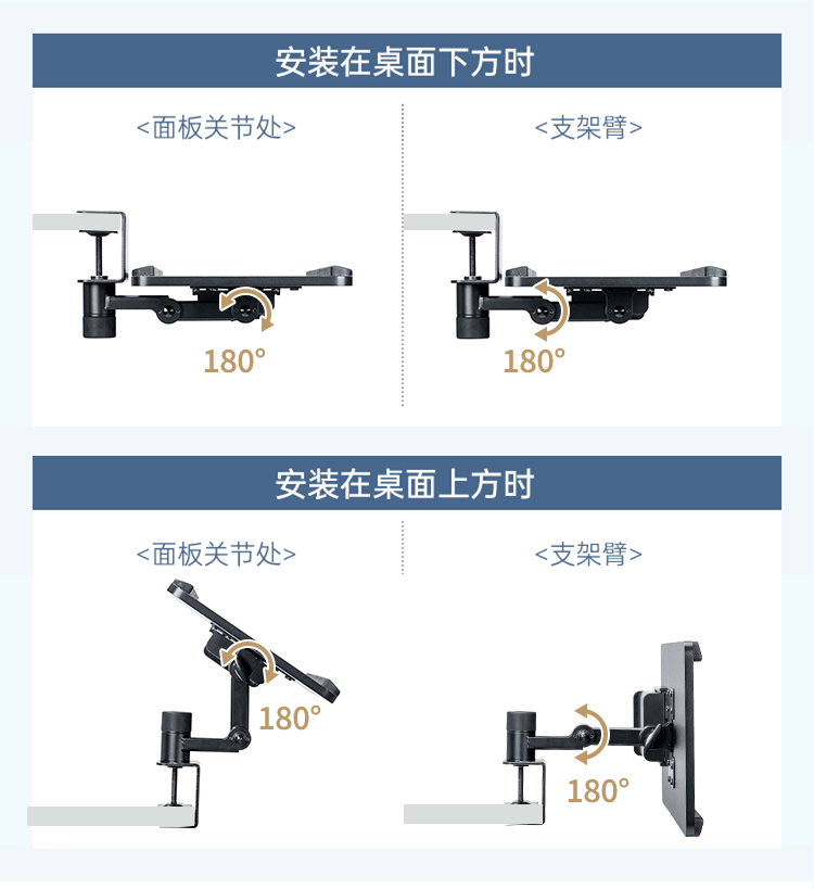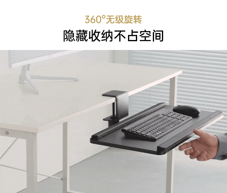 山业sanwa键盘鼠标托架支架 旋转可伸缩可调节托台增高架 桌下延伸板扩展板 免打孔桌下托 360°可旋转-面板厚度1.5~6.8cm适合