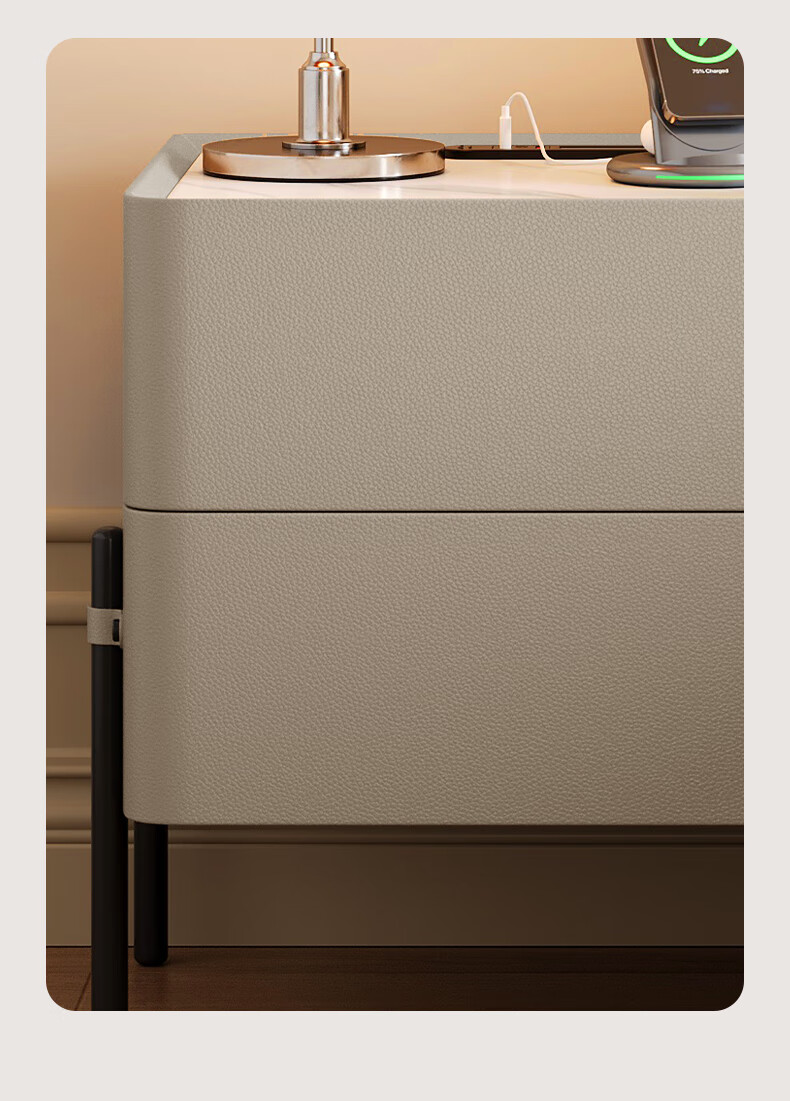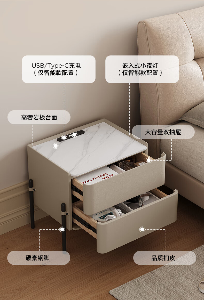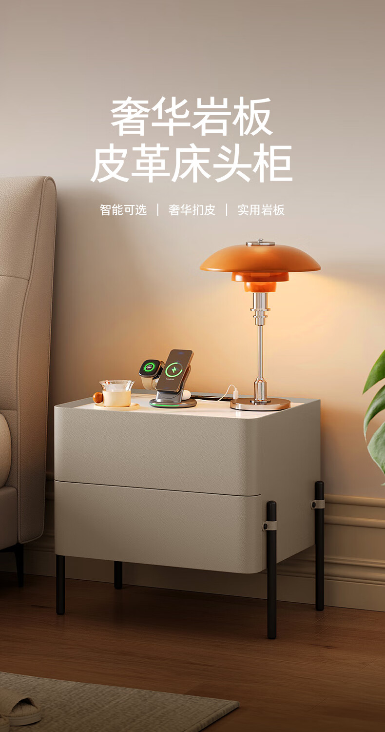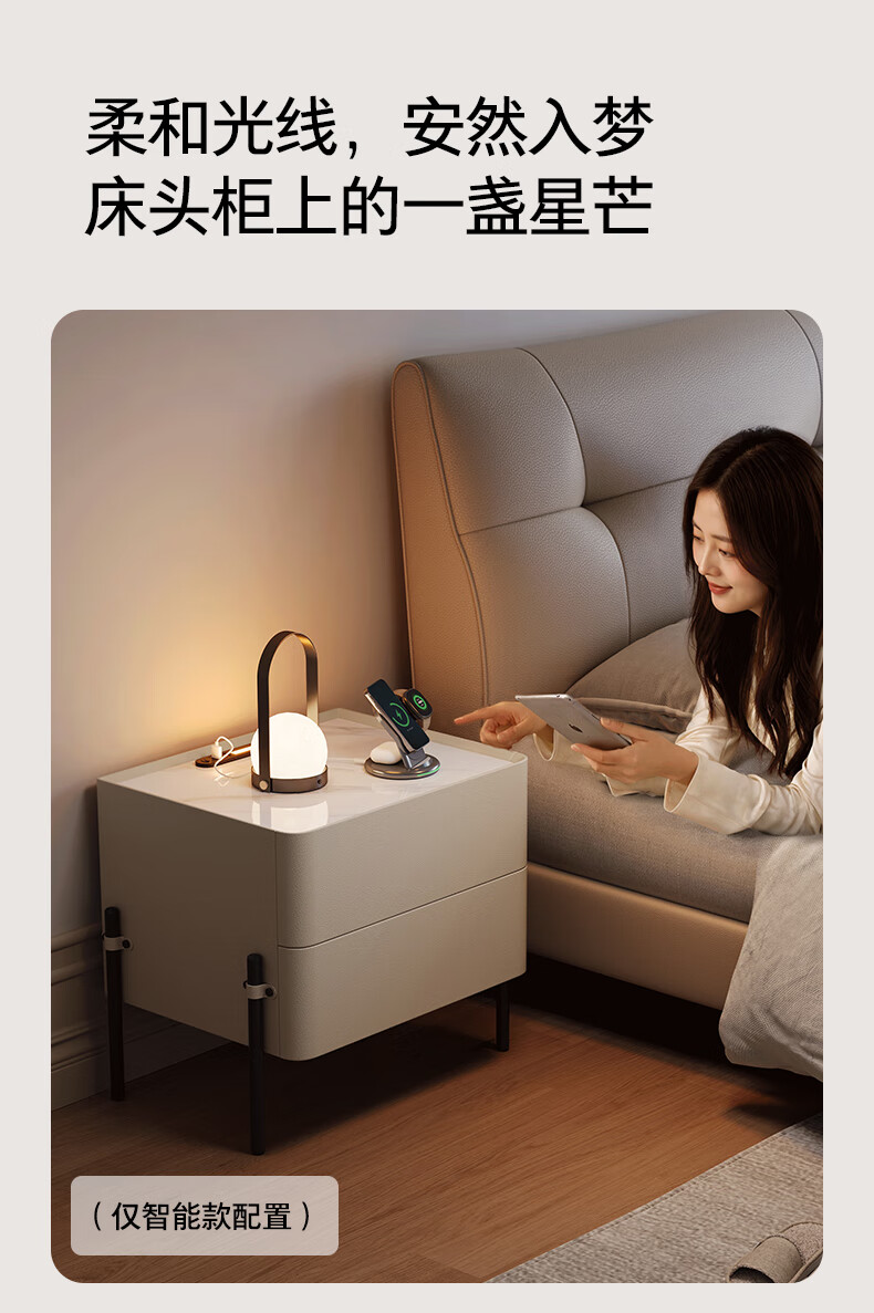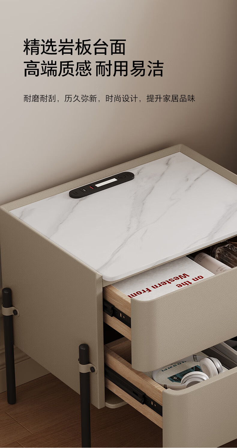 顾家家居(KUKA)意式轻奢高级感卧室奢华岩板皮革床头柜智能床头柜DS8055G 【皓月白】旗舰款·奢华岩板皮革床头柜