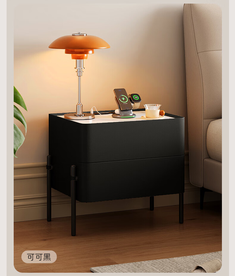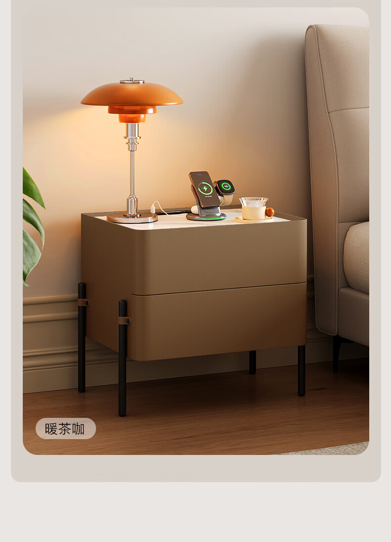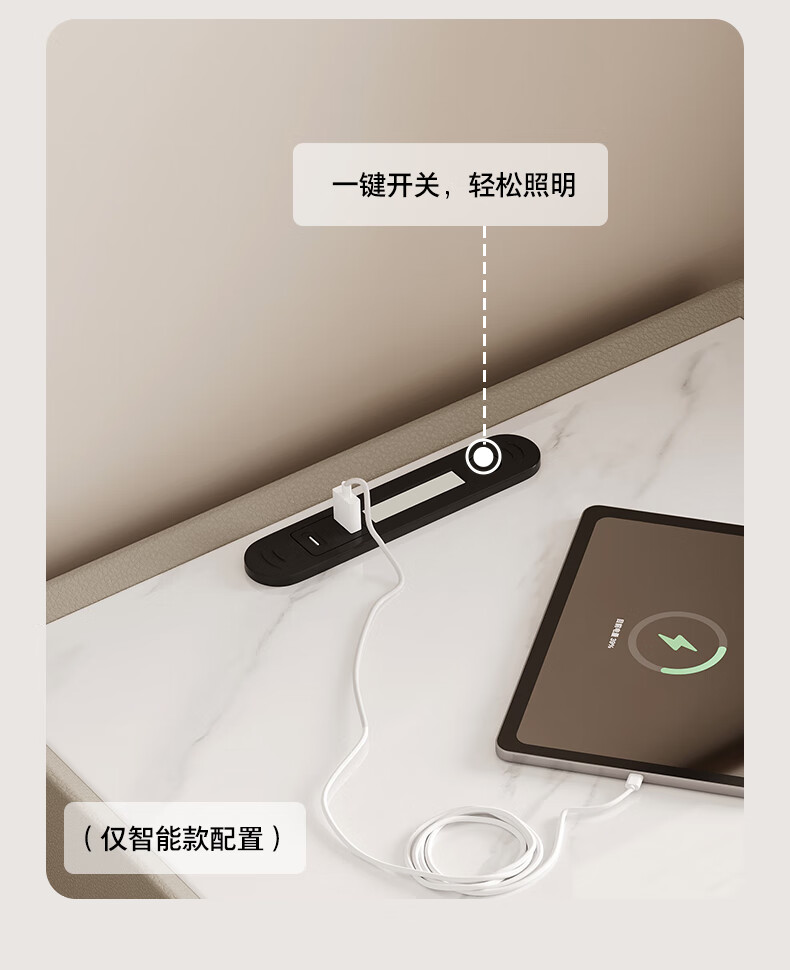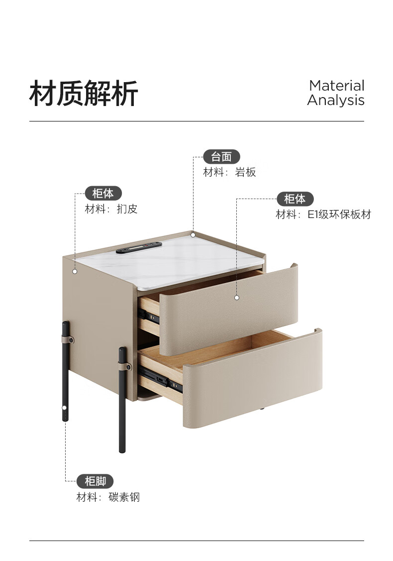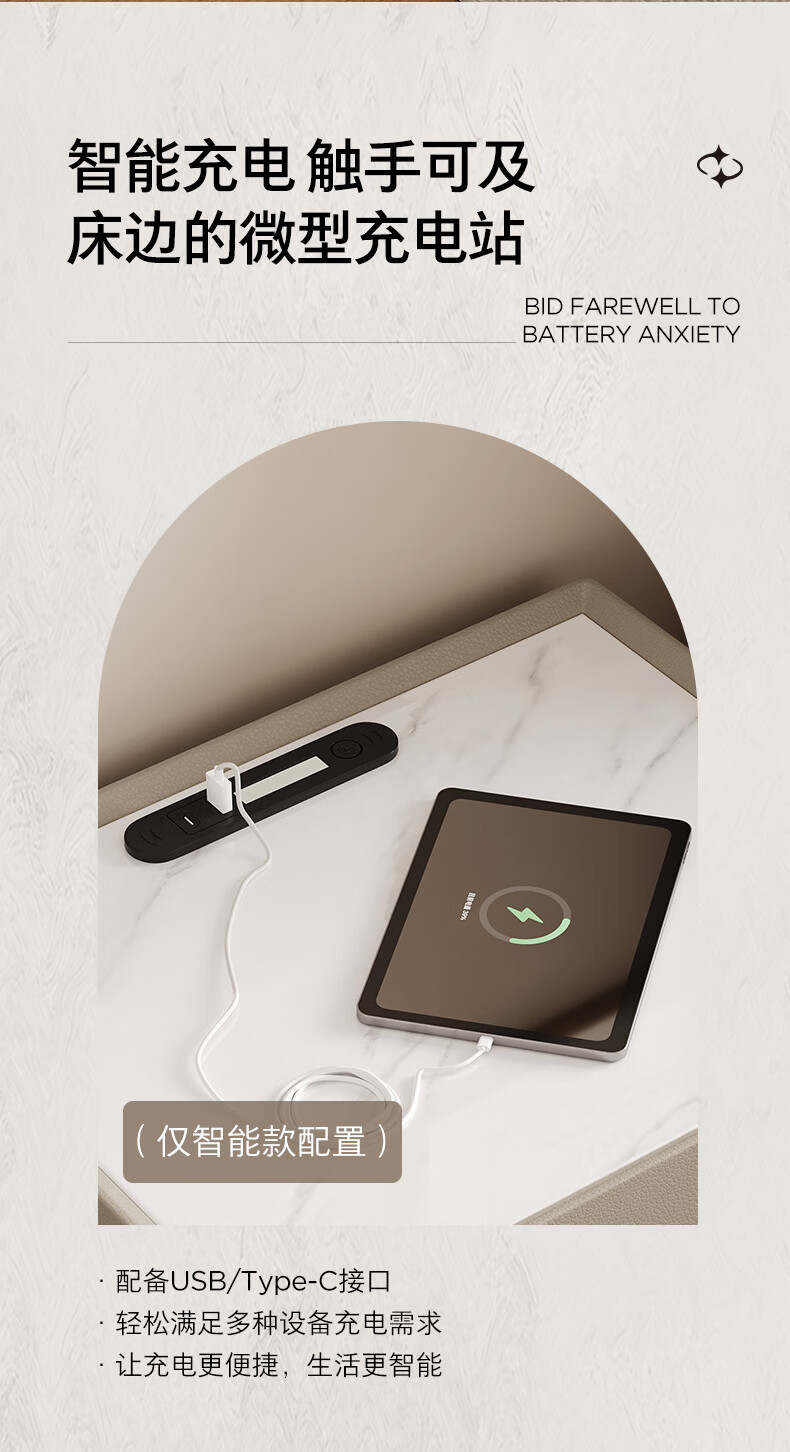 顾家家居(KUKA)意式轻奢高级感卧室奢华岩板皮革床头柜智能床头柜DS8055G 【皓月白】旗舰款·奢华岩板皮革床头柜