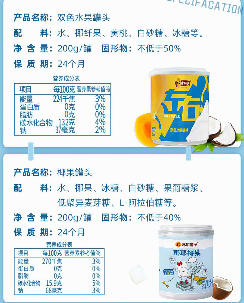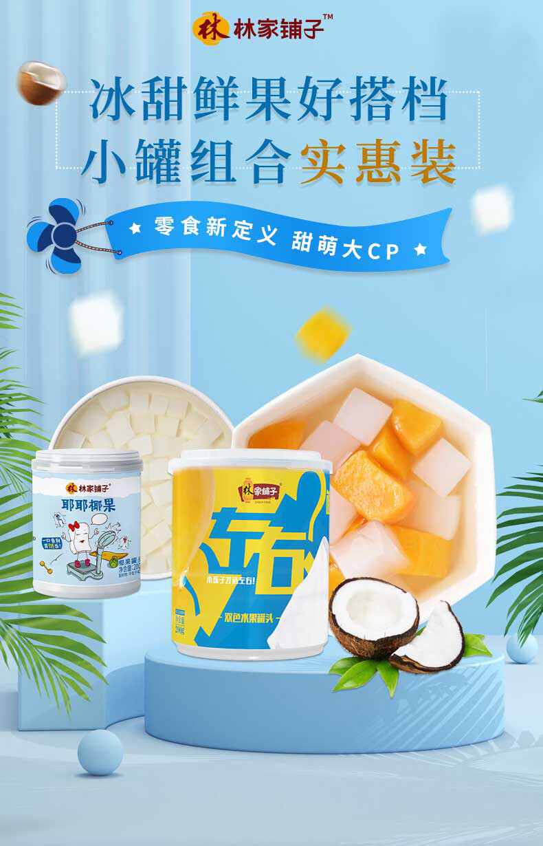 林家铺子左右双色耶耶椰果黄桃椰果组合水果罐头200g零食罐头 【到手6罐】双色*4+耶耶椰果*2