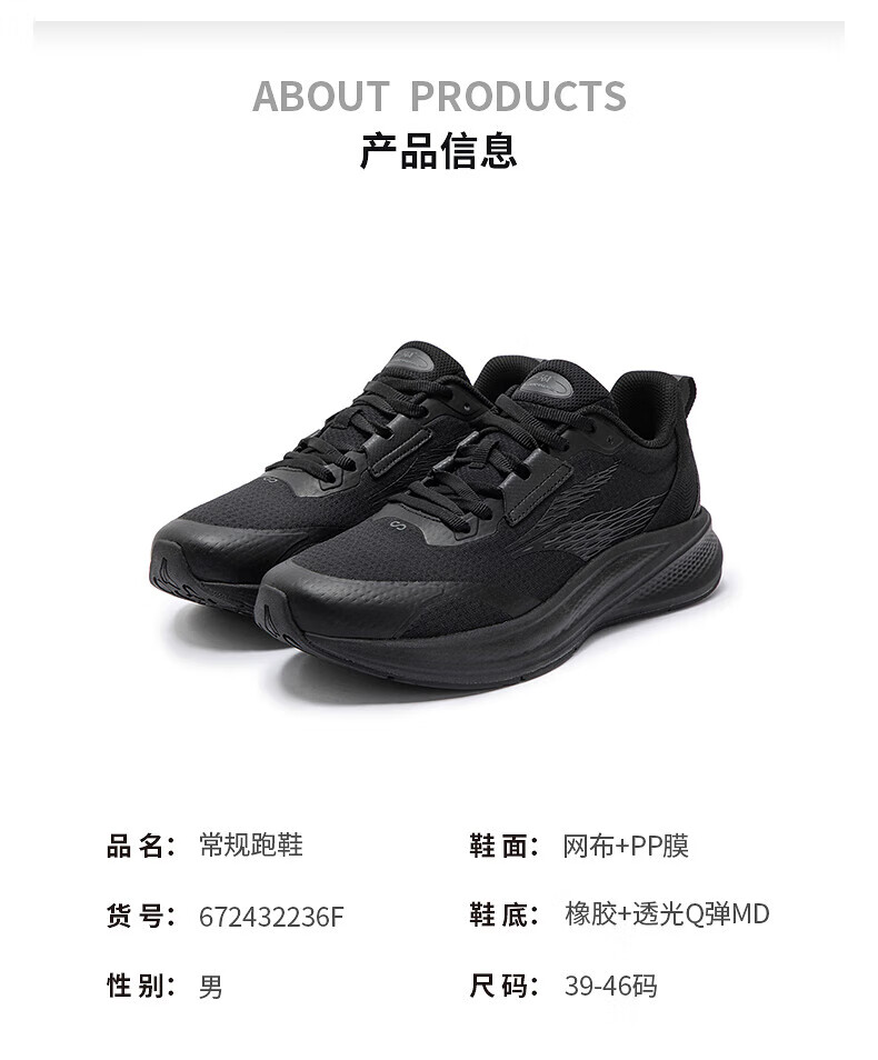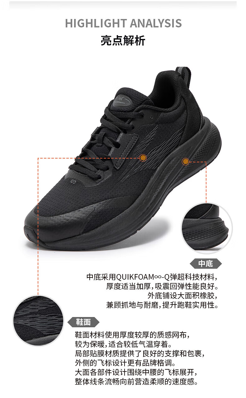 361°运动鞋男鞋【飞翼4.0】秋冬季新款Q弹缓震耐磨鞋子跑步鞋男 石墨灰/曜石黑【密网款】 42