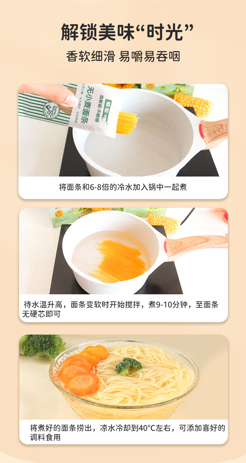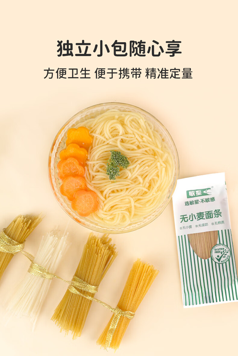 敏星大米小米玉米面条无小麦麸质不加鸡蛋牛奶盐送婴儿童宝宝辅食谱 小米原味200g*2盒