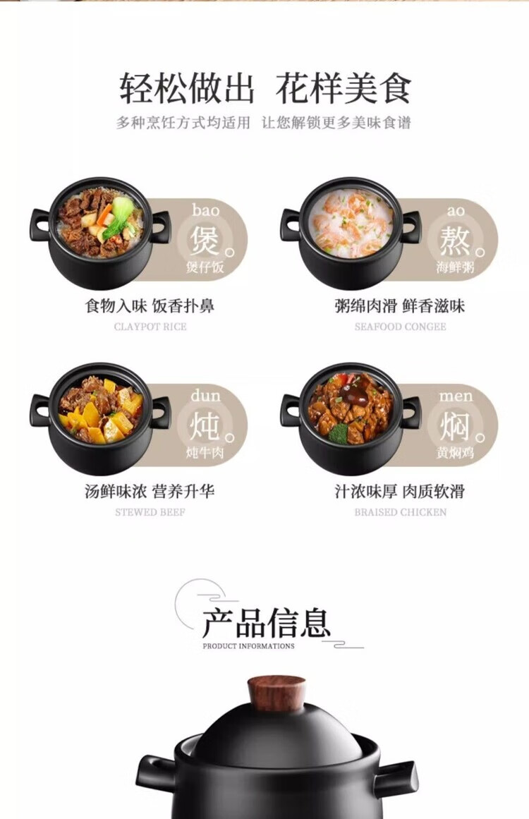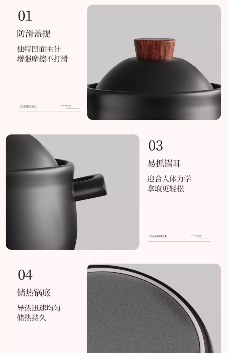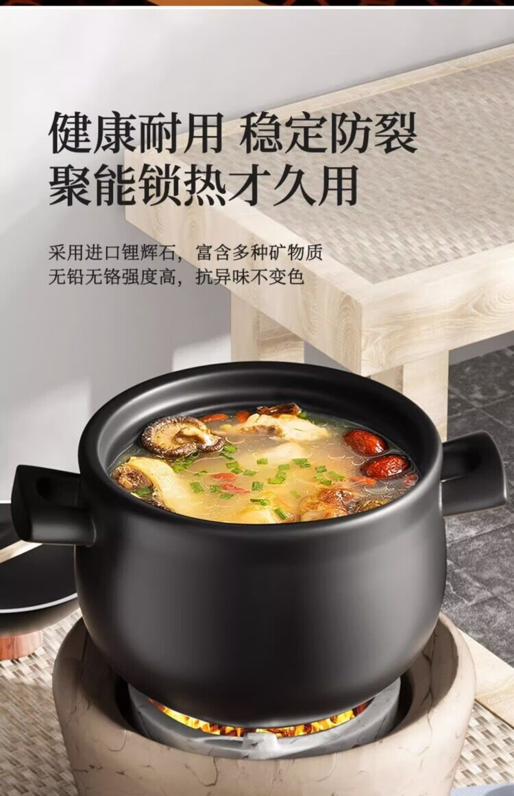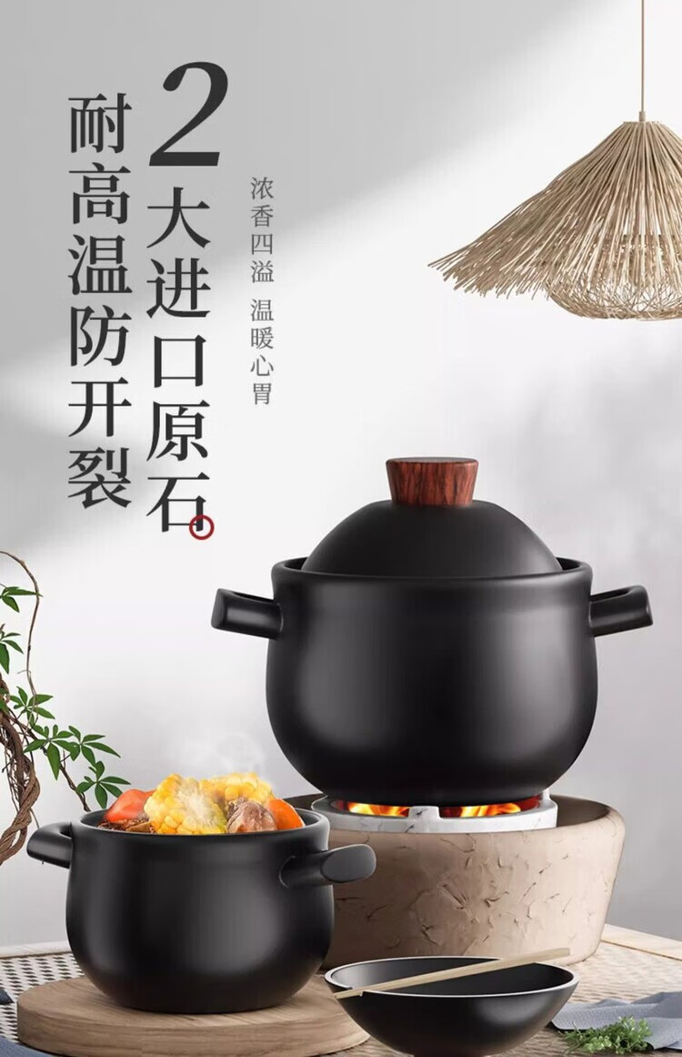 简漾砂锅炖锅家用煤气大容量养生锅汤锅陶瓷锅熬粥煮粥沙锅耐高温石锅 陶土健康煲 1ml 2.15L