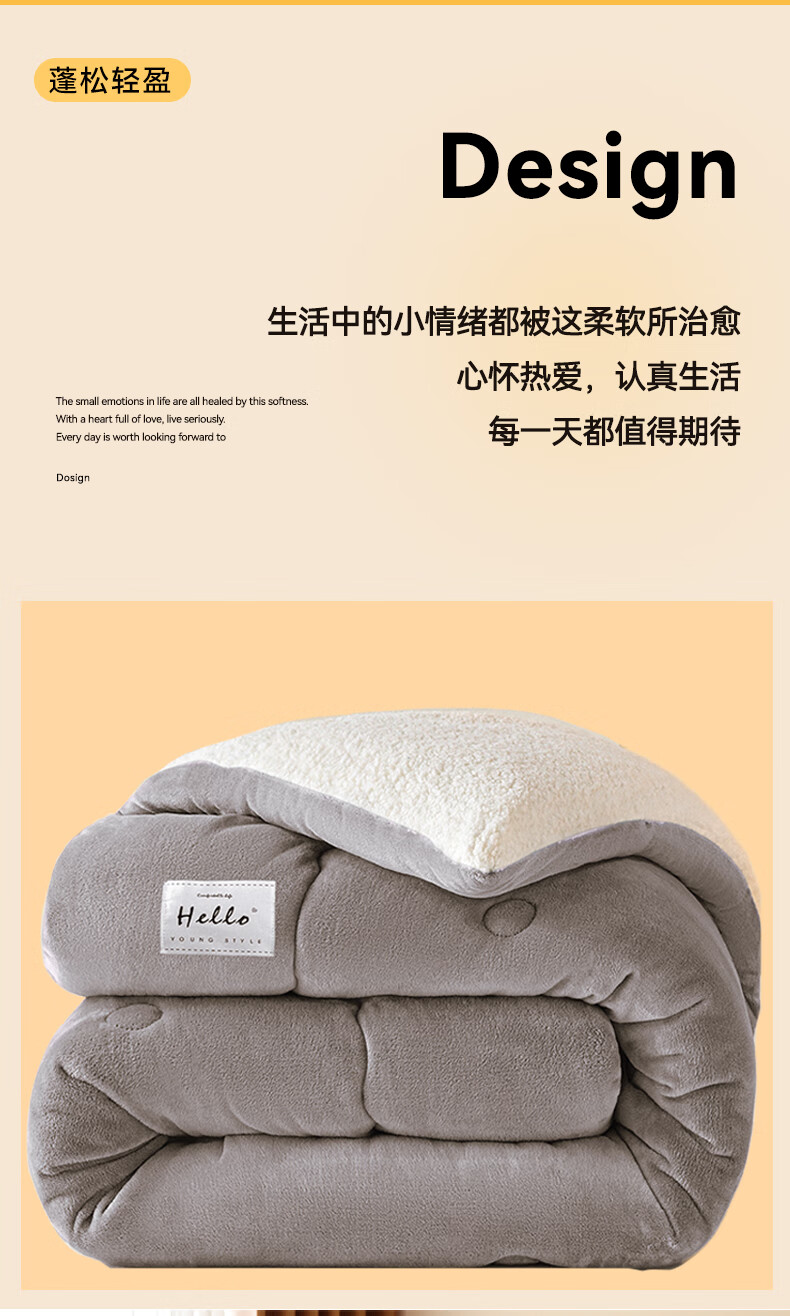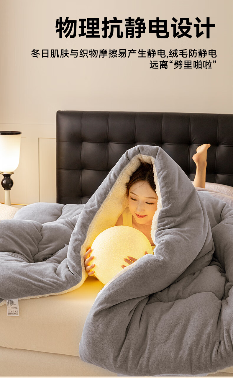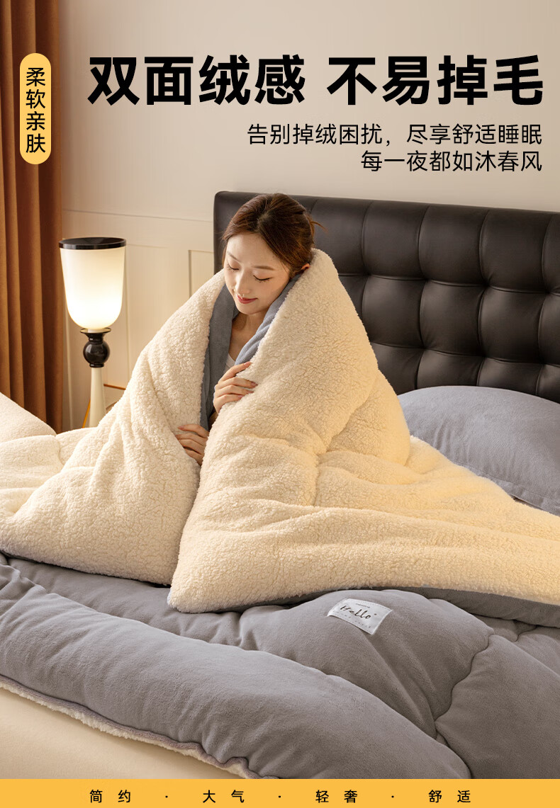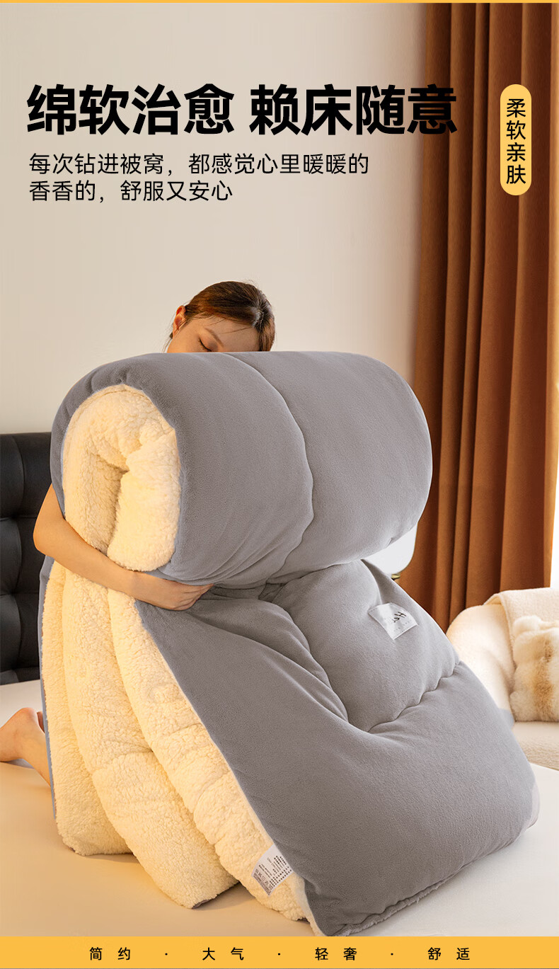 高睿羊羔绒被子棉被冬被加绒加厚秋冬被芯保暖冬季10斤2025新款单人被 典雅灰【牛奶绒+羊羔绒】 150*200cm【加厚5斤】抗寒保暖