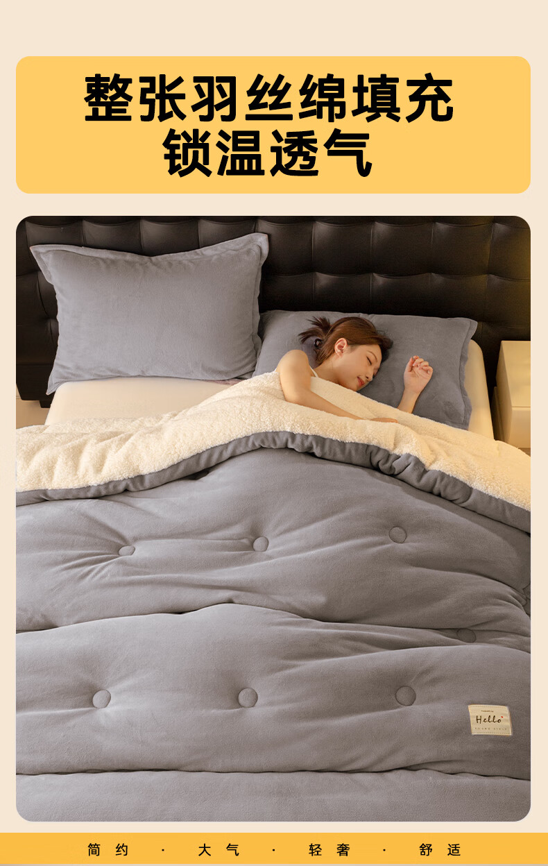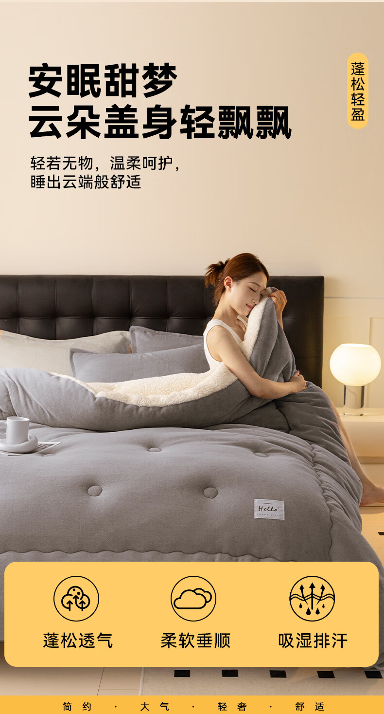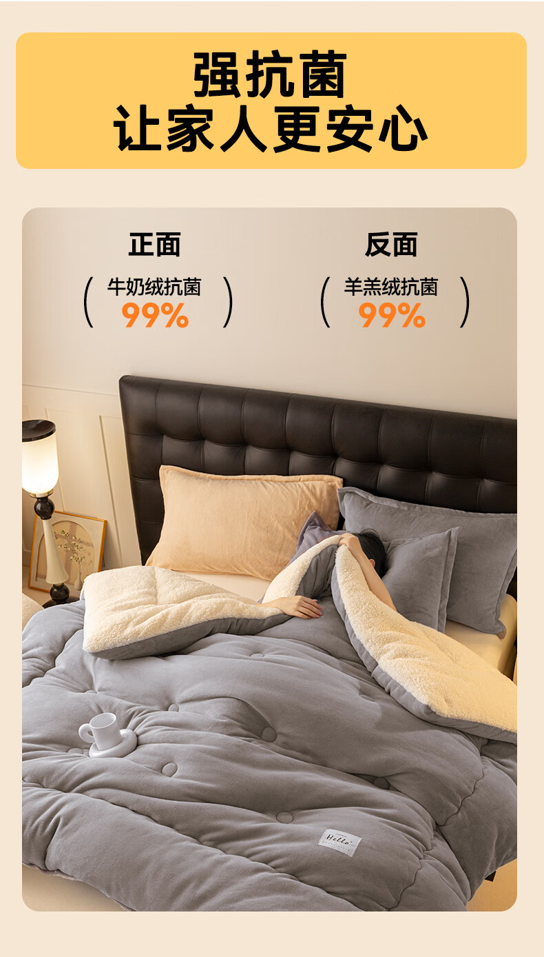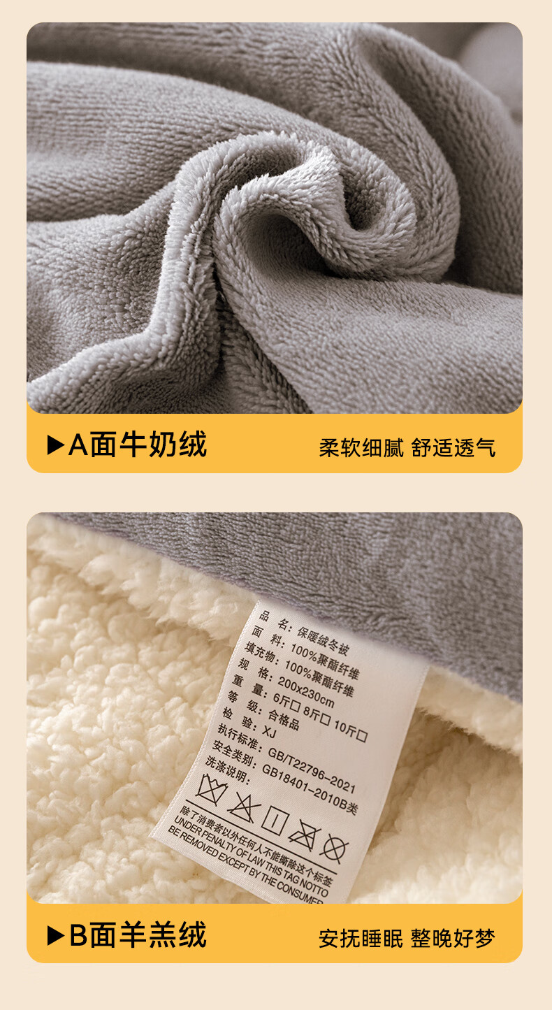 高睿羊羔绒被子棉被冬被加绒加厚秋冬被芯保暖冬季10斤2025新款单人被 典雅灰【牛奶绒+羊羔绒】 150*200cm【加厚5斤】抗寒保暖