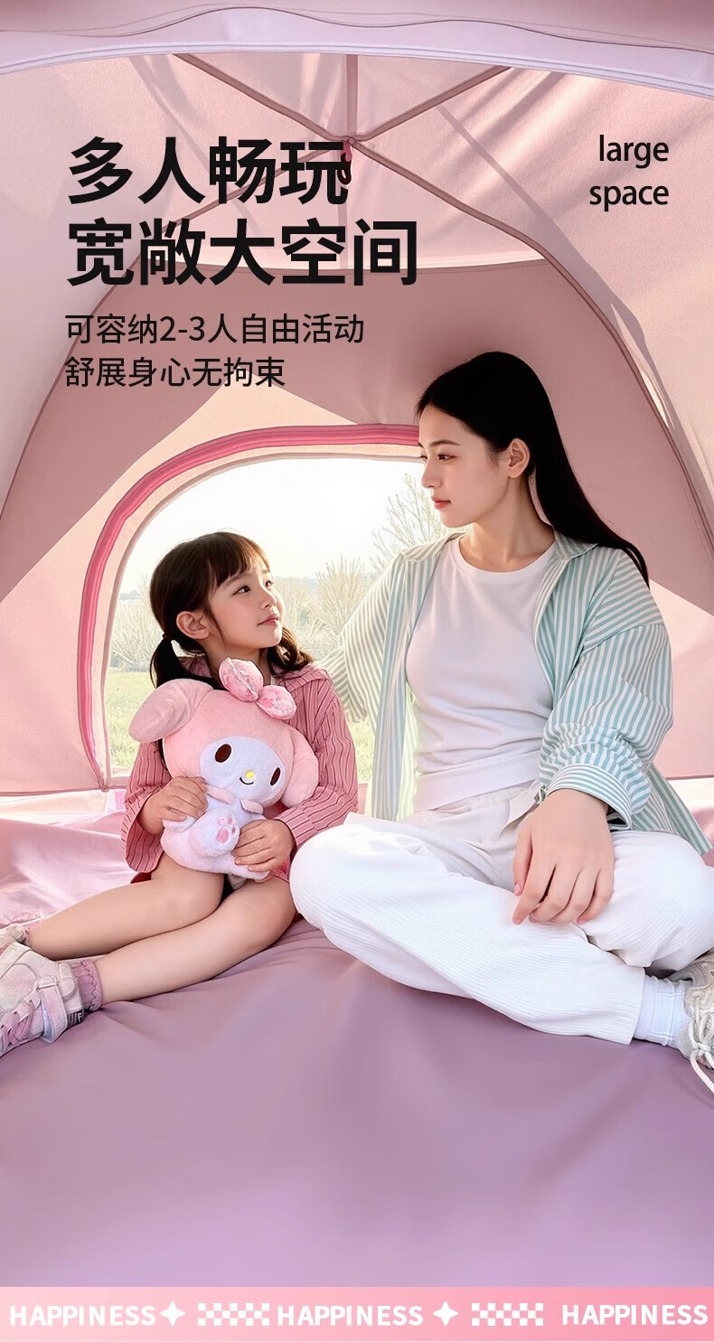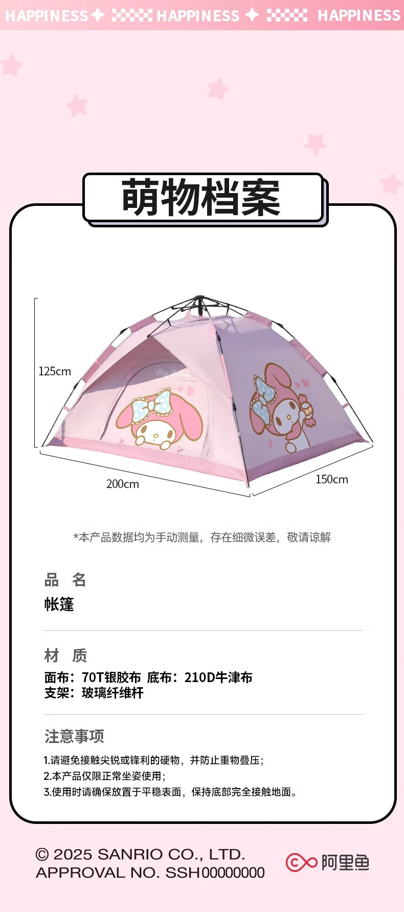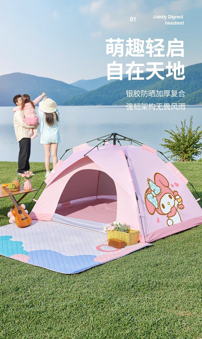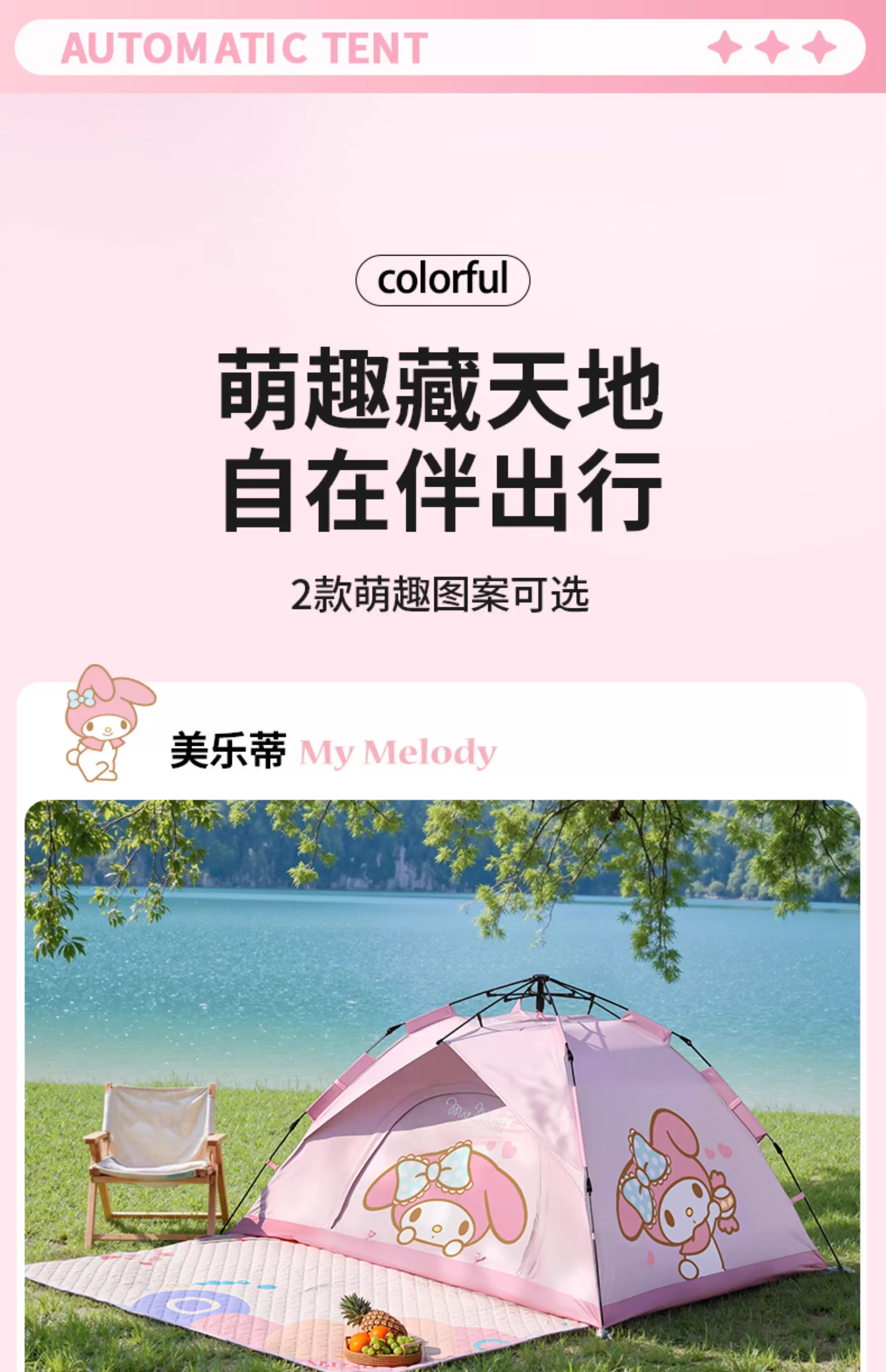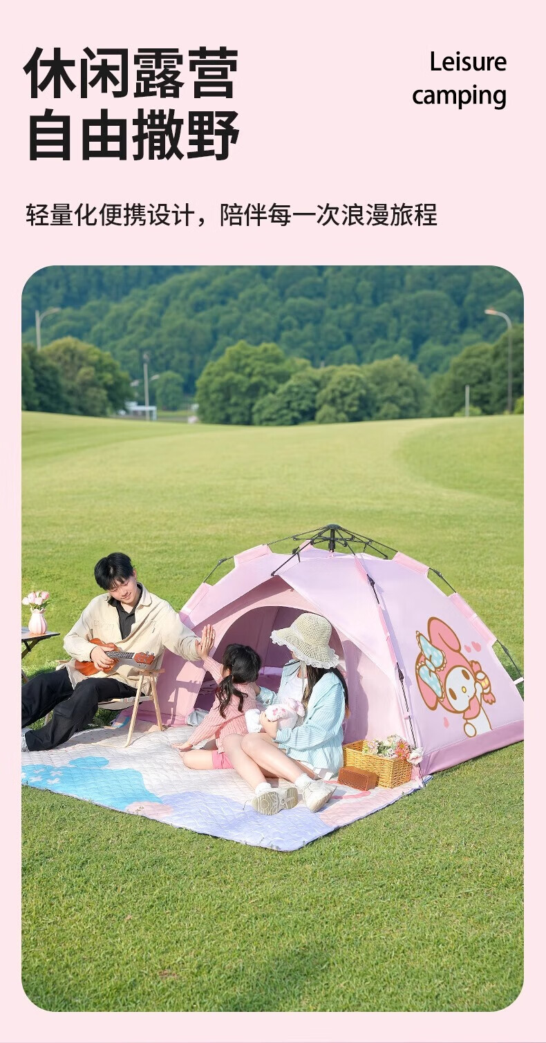 MARSICA三丽鸥户外露营帐篷便携式折叠野营过夜防雨防晒野餐春游全套装备 美乐蒂