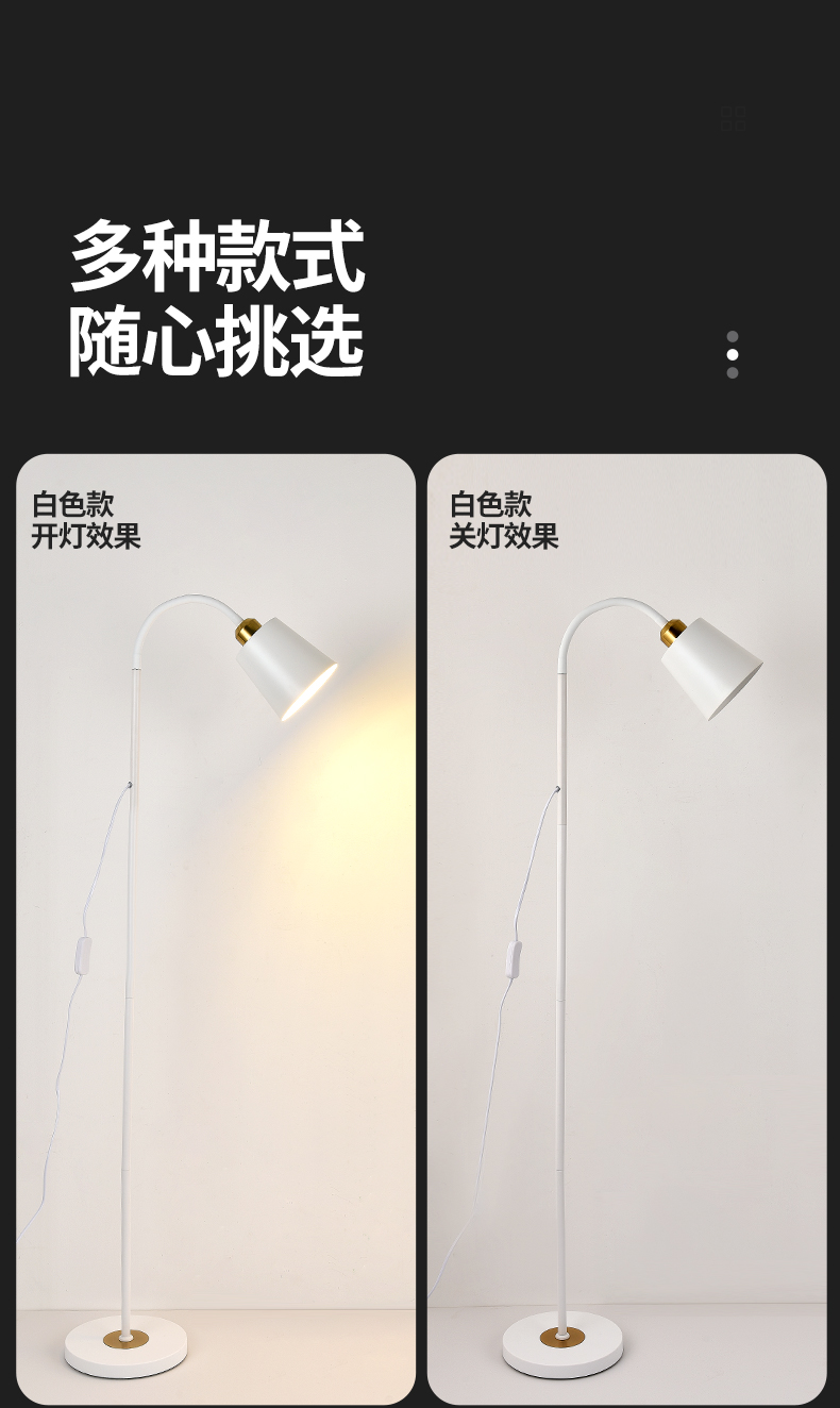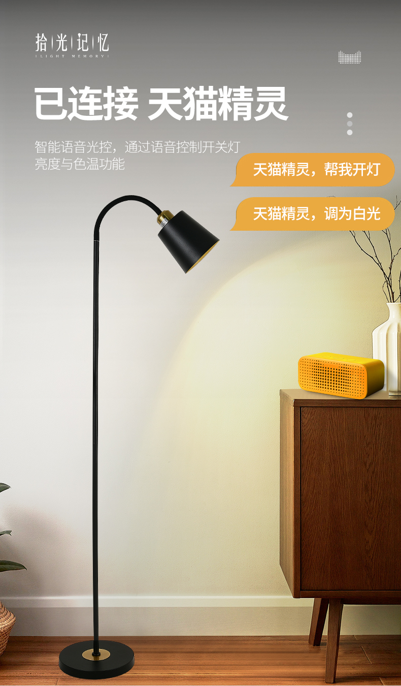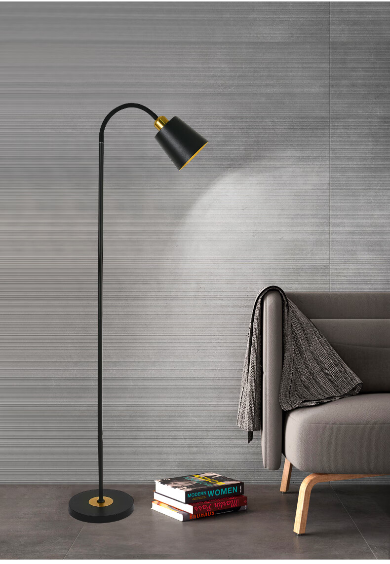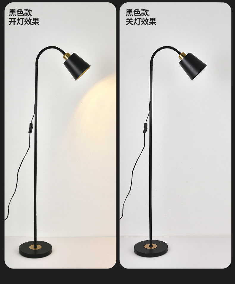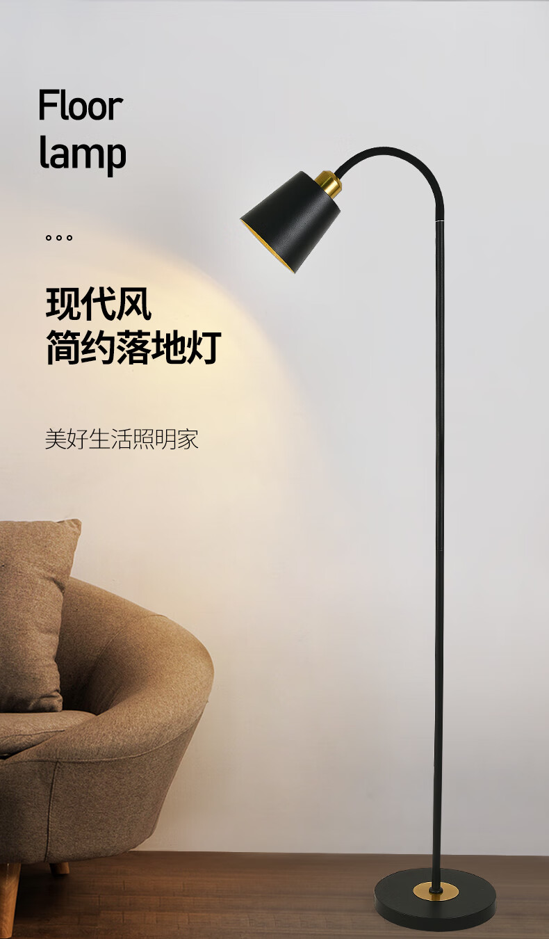 拾光记忆 简约现代落地灯北欧极简轻奢客厅卧室床头书房创意阅读灯立式灯 黑色落地灯+5瓦led灯泡 暖光