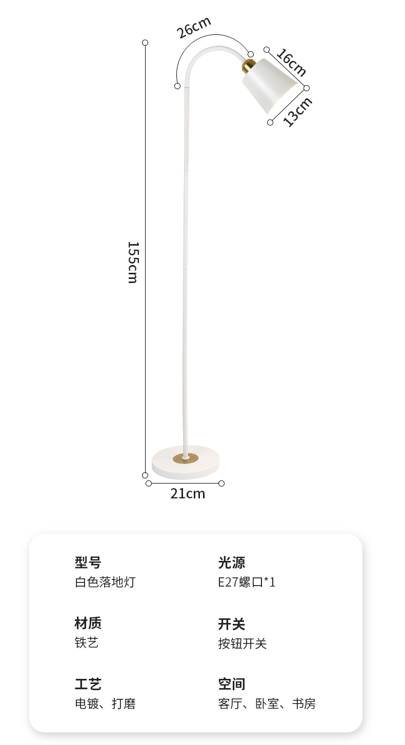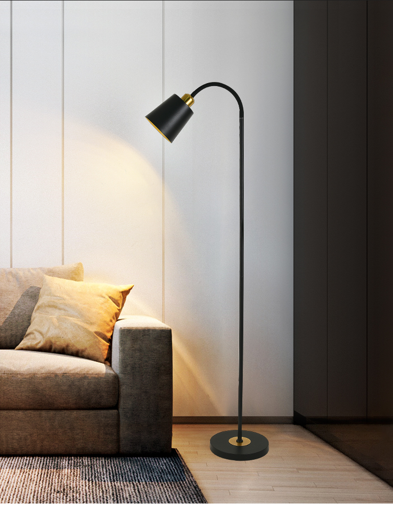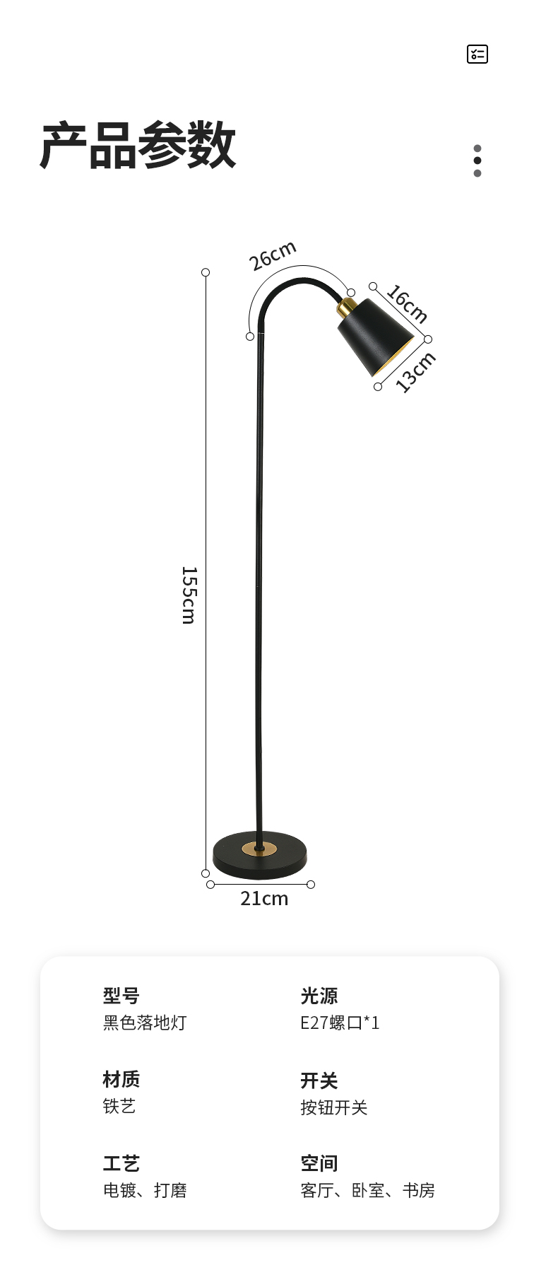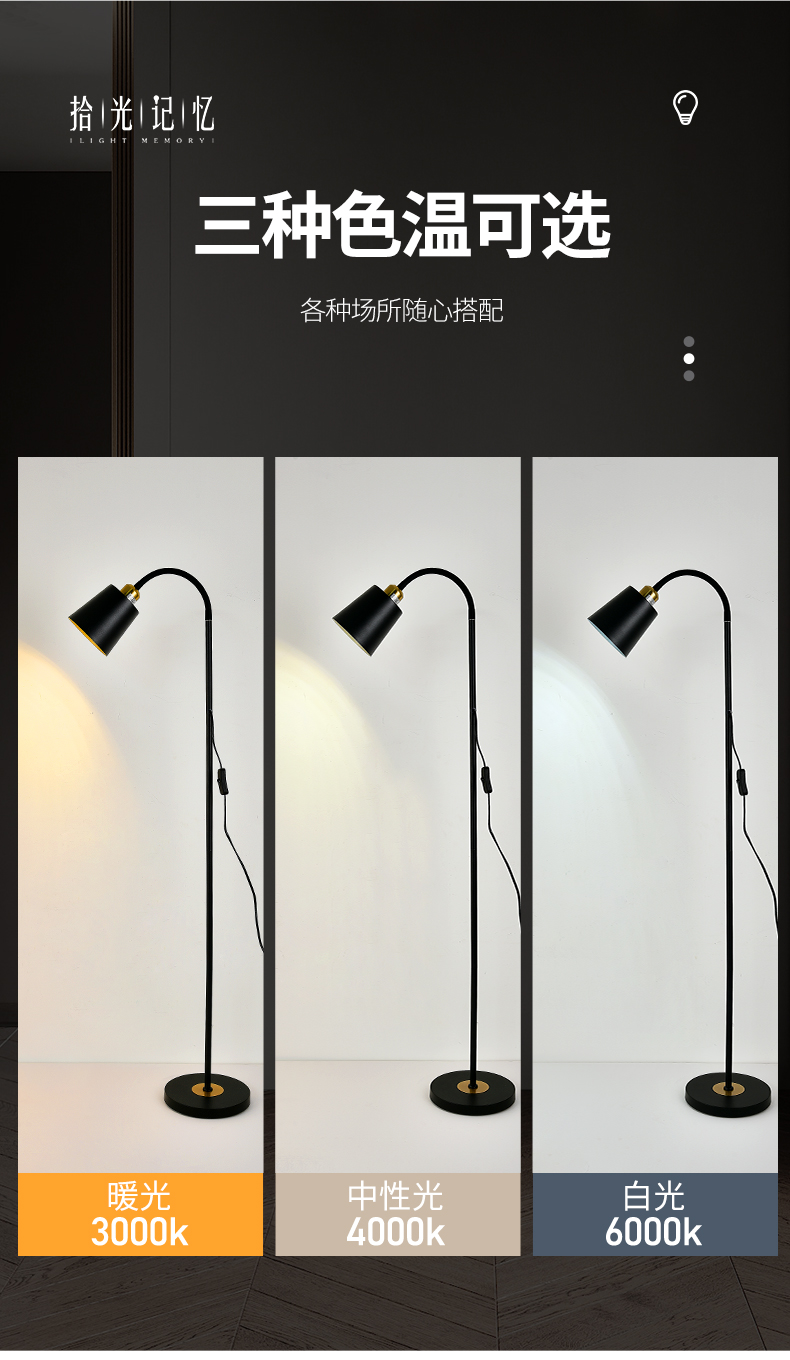 拾光记忆 简约现代落地灯北欧极简轻奢客厅卧室床头书房创意阅读灯立式灯 黑色落地灯+5瓦led灯泡 暖光
