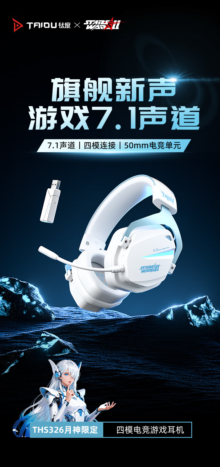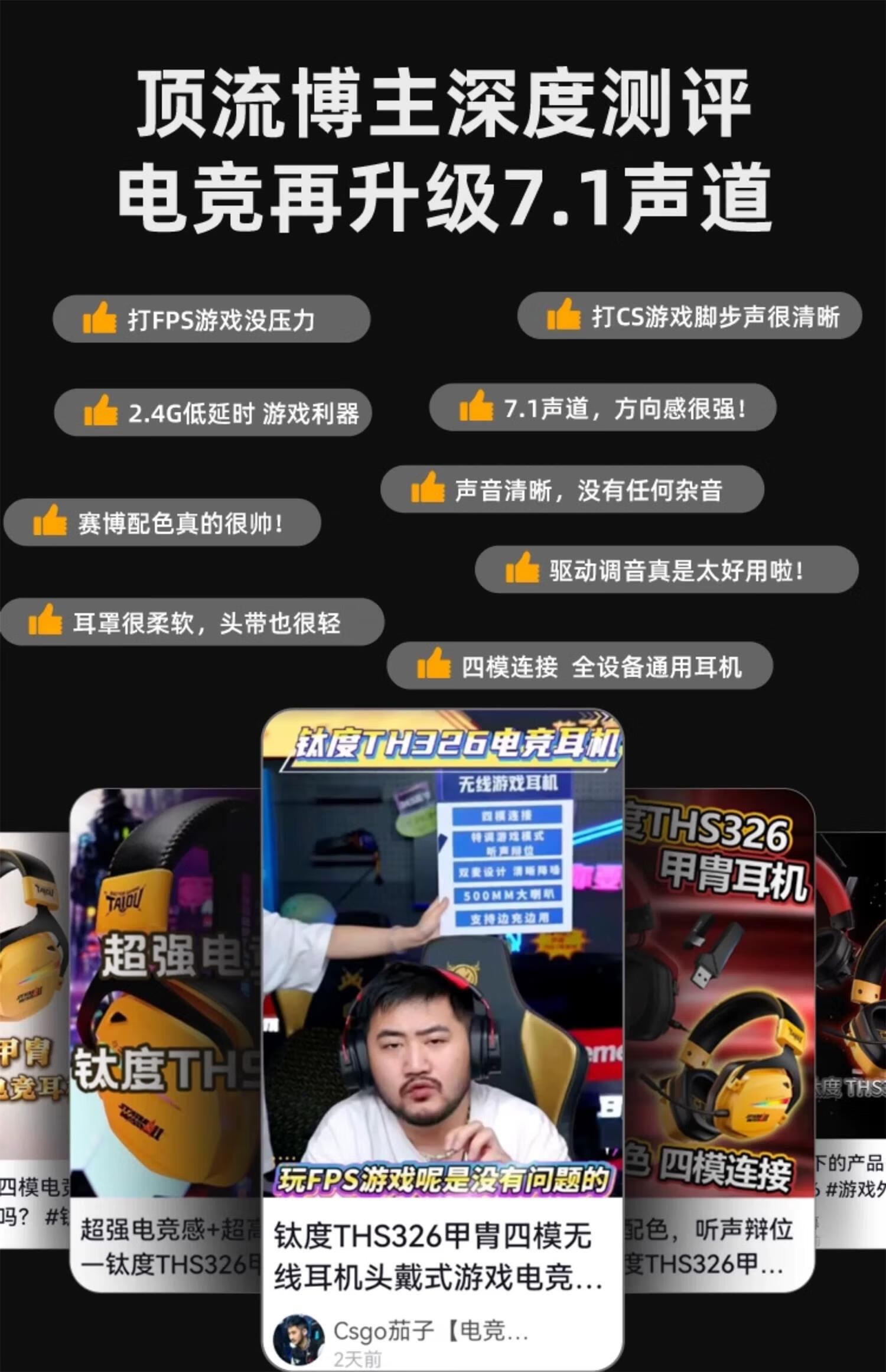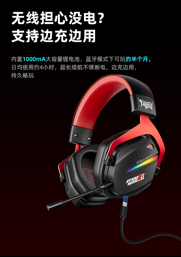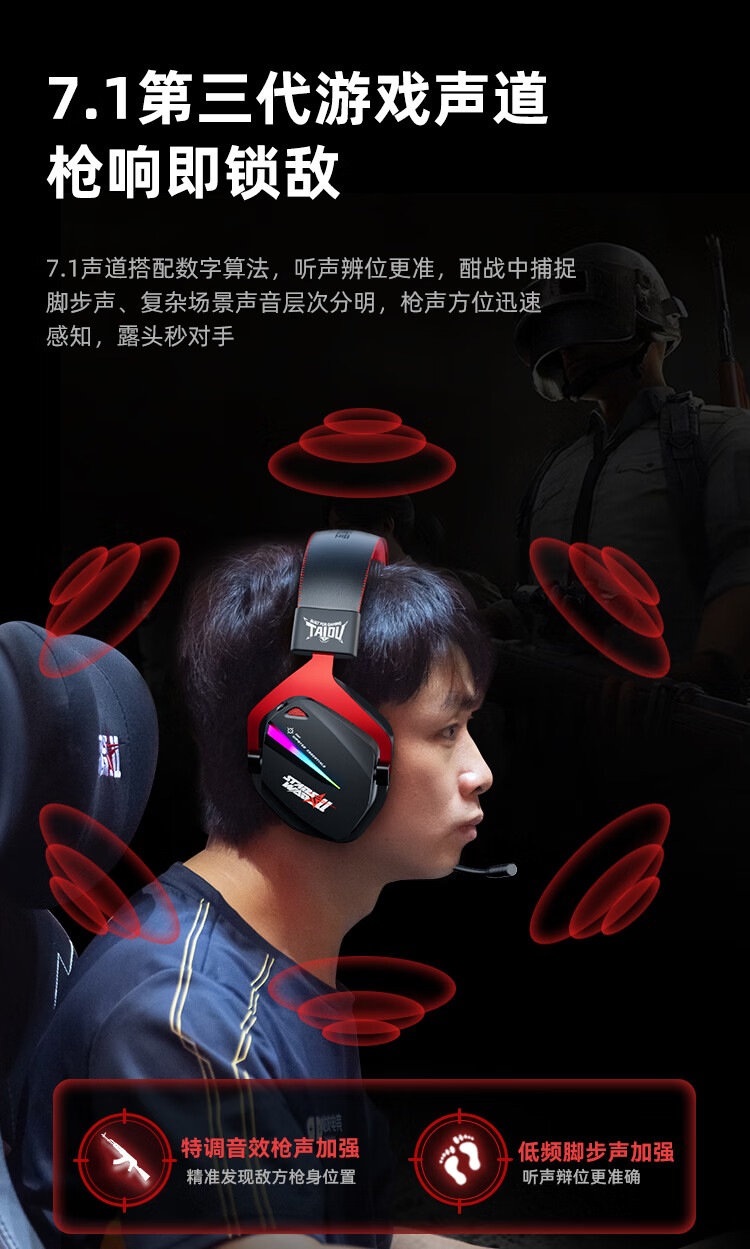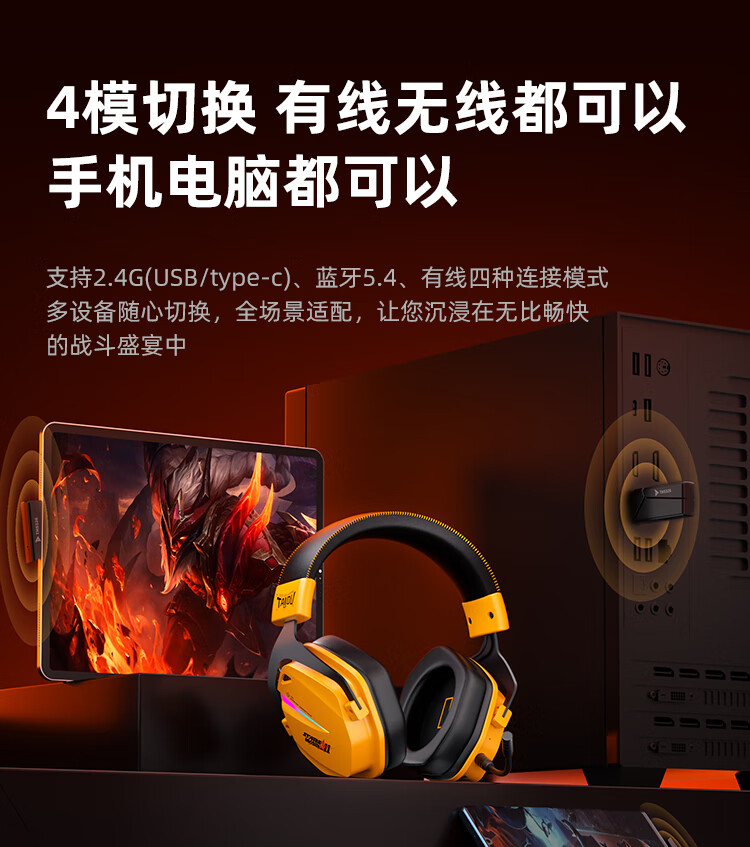 钛度THS326四模游戏耳机蓝牙无线头戴式7.1环绕音效有线电竞专用三角洲无畏契约fps听声辨位月神限定版