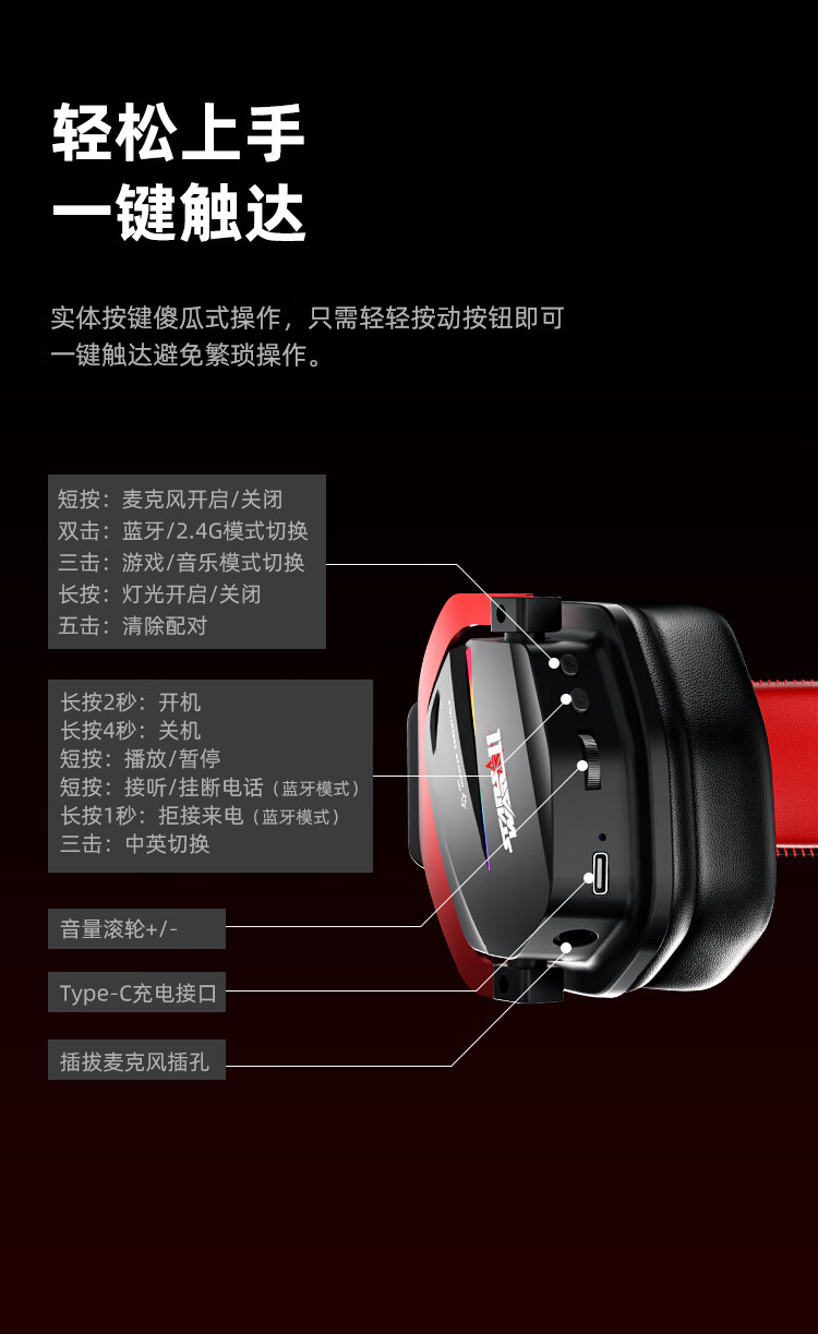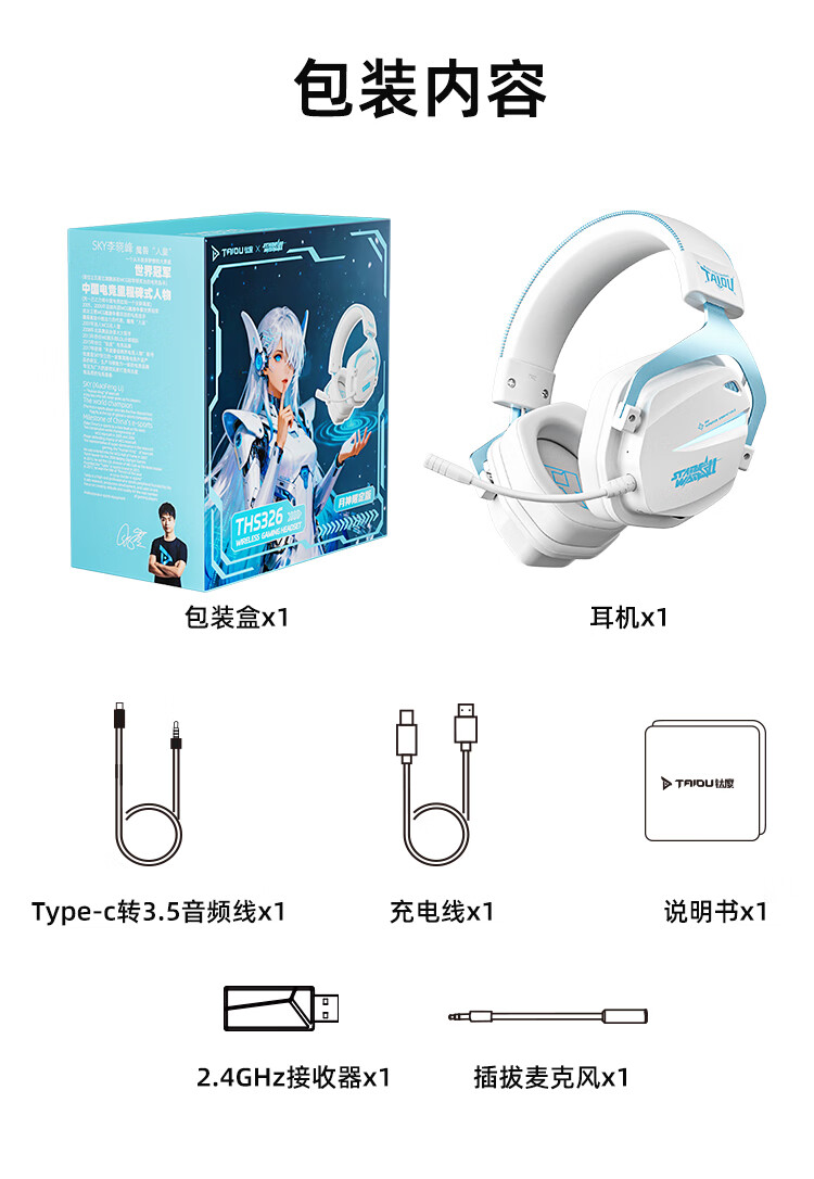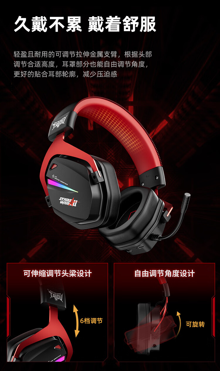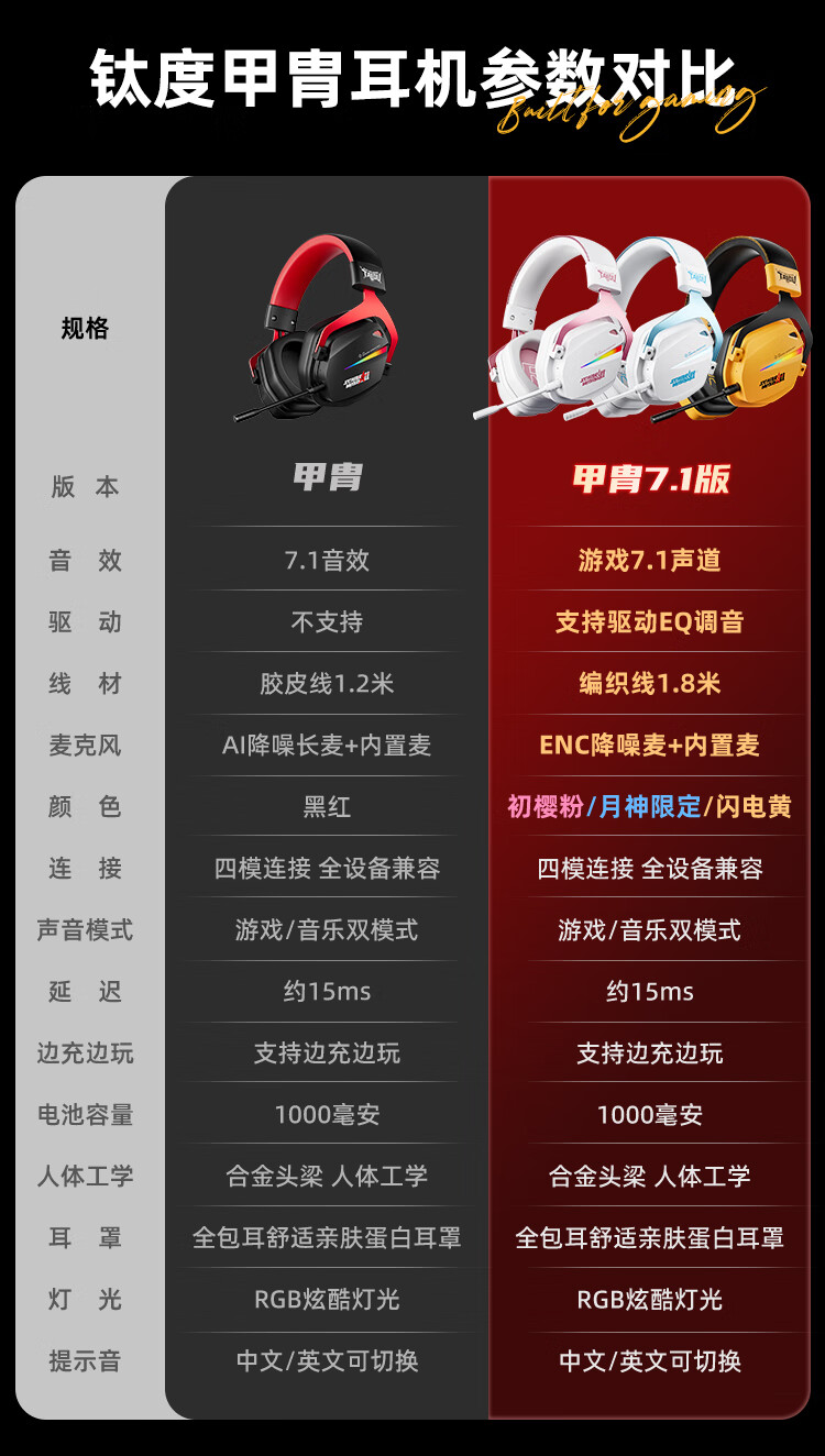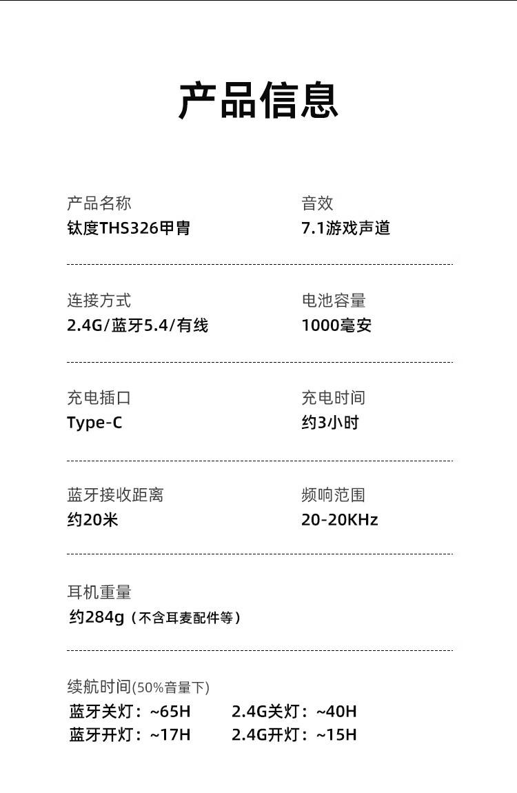 钛度THS326四模游戏耳机蓝牙无线头戴式7.1环绕音效有线电竞专用三角洲无畏契约fps听声辨位月神限定版