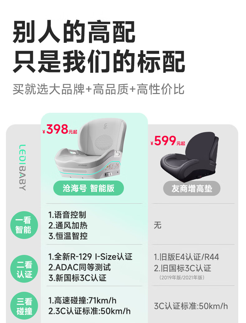 ledibaby儿童安全座椅3-12岁宝宝通用款汽车大童增高垫简易坐垫便携式 沧海号月影灰官配版