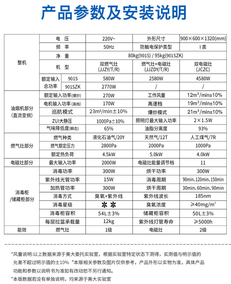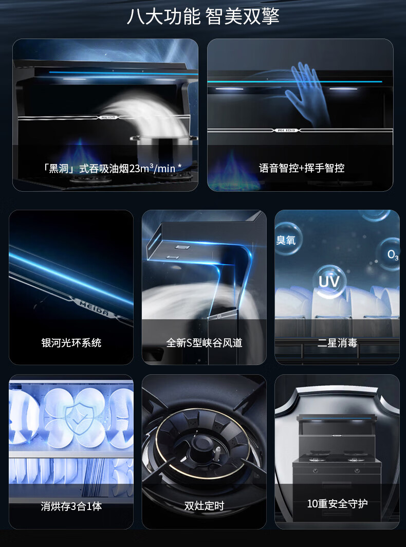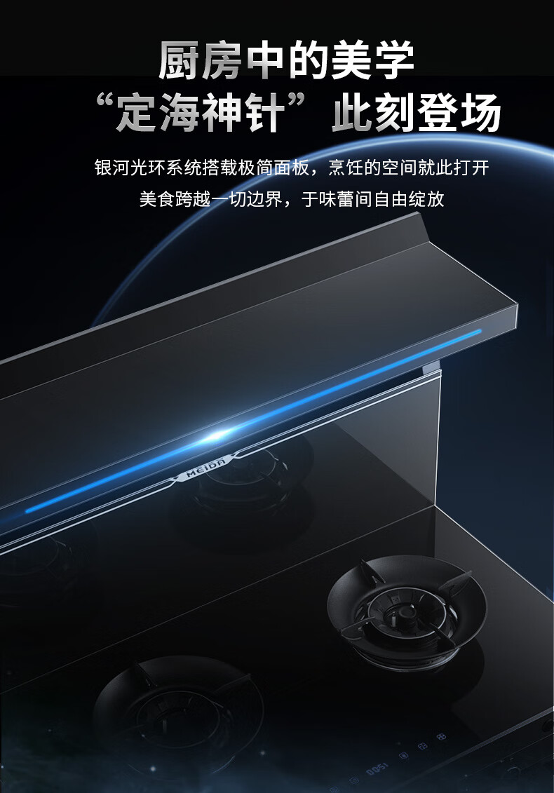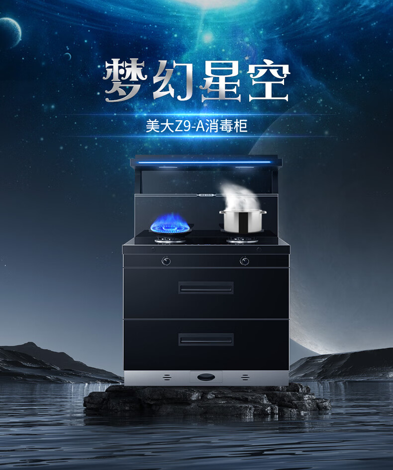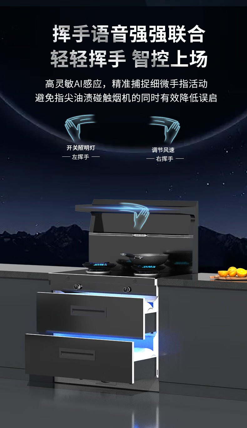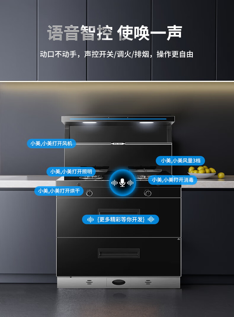 美大消毒柜集成灶语音+挥手智控下排式爆炒油烟机套装 变频独立双眼燃气灶Z9-A天然气(JJZT-901S)