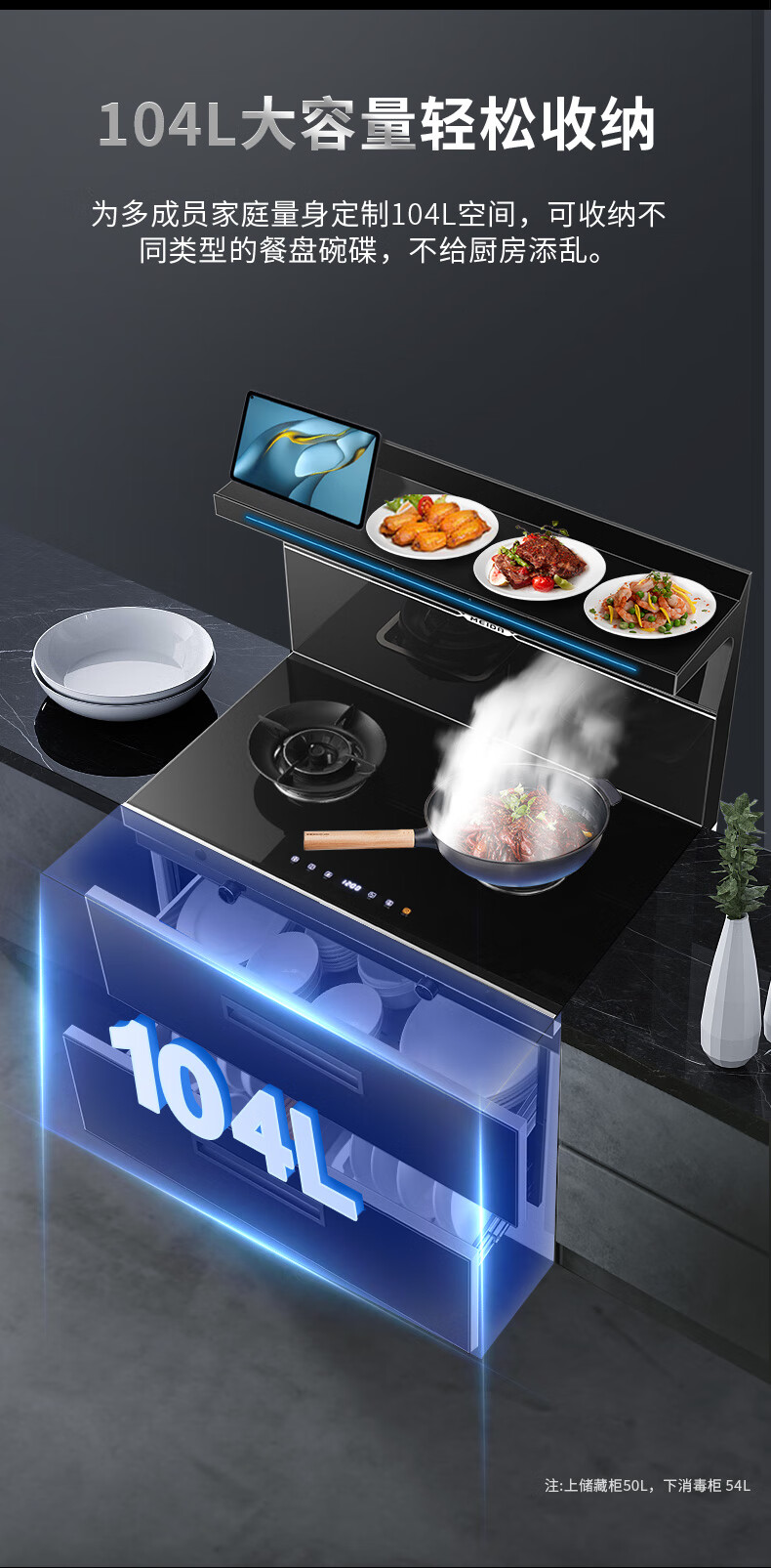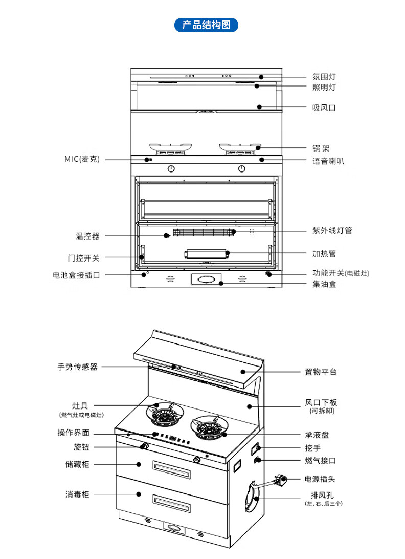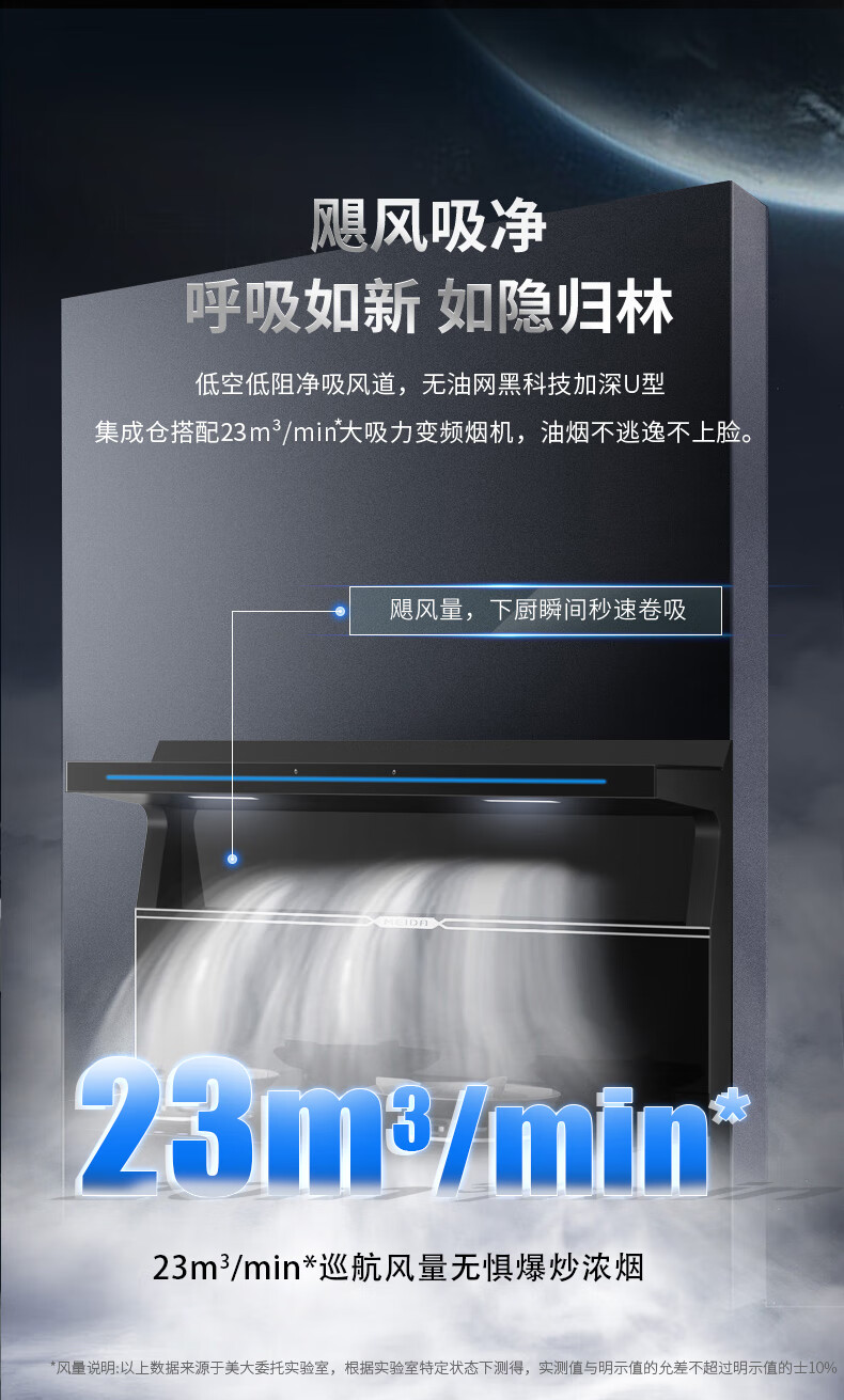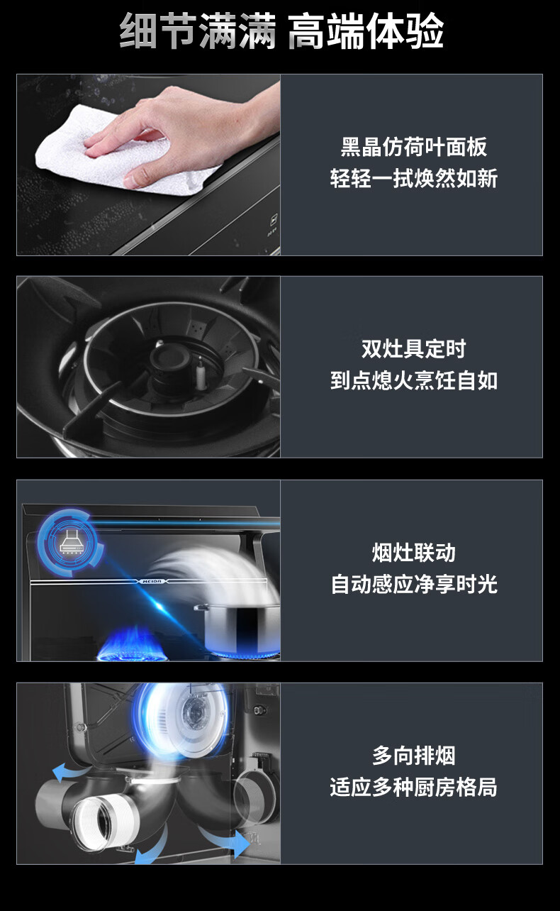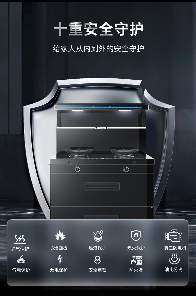 美大消毒柜集成灶语音+挥手智控下排式爆炒油烟机套装 变频独立双眼燃气灶Z9-A天然气(JJZT-901S)