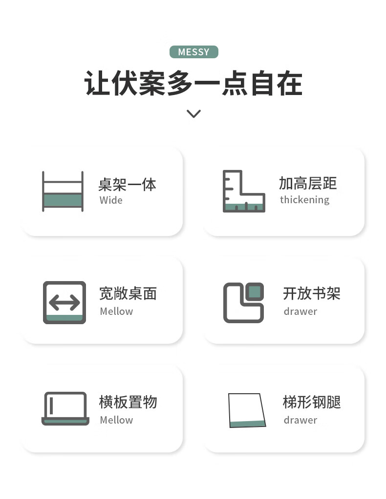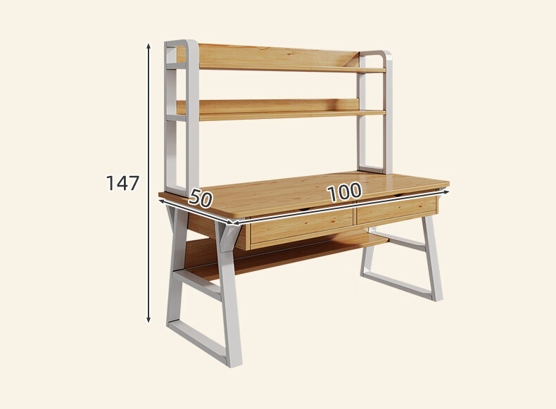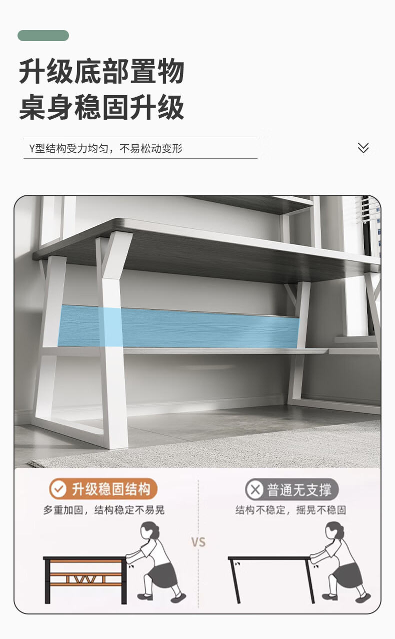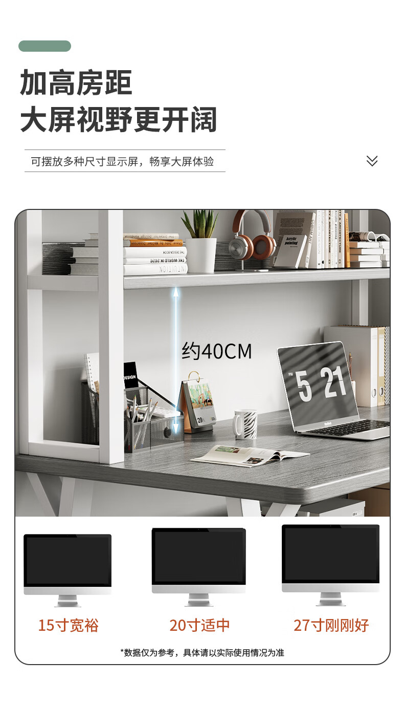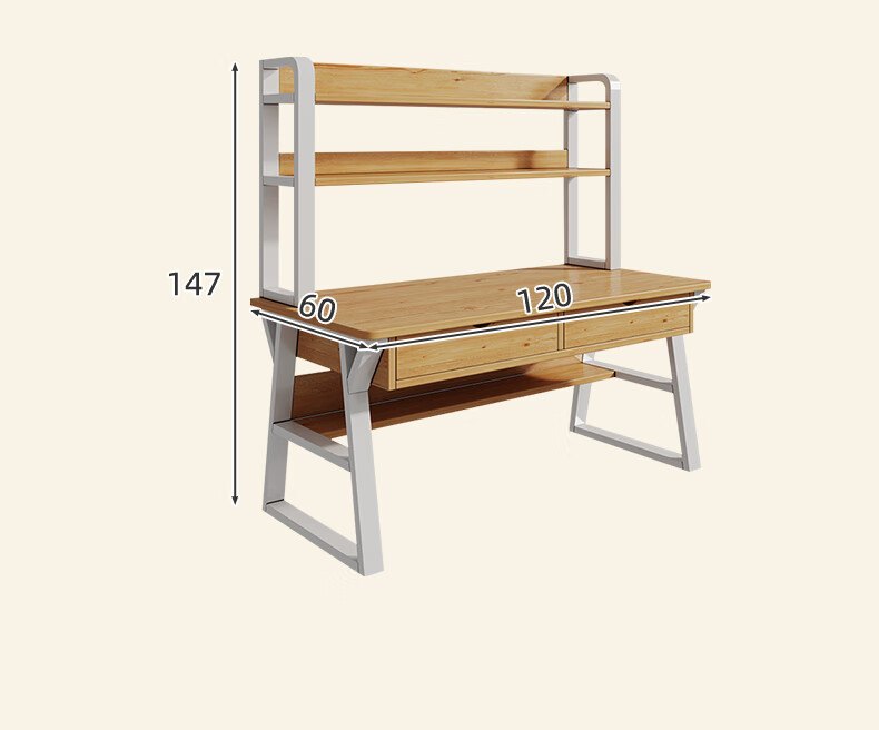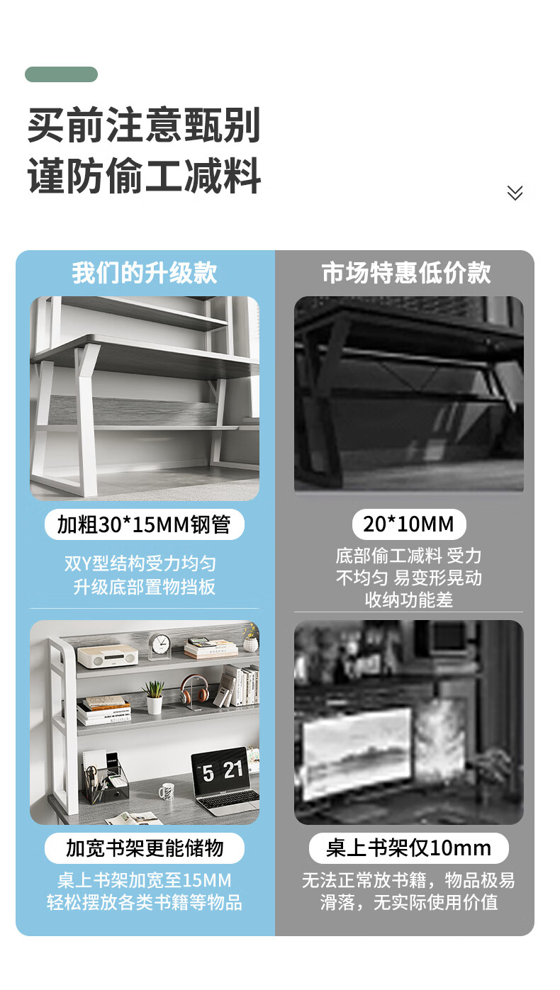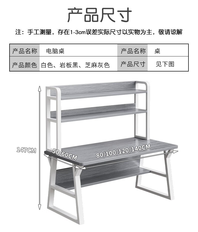 富禾实木电脑桌台式书架一体书桌简约家用桌椅组合学习桌卧室写字桌子 推-双层莫兰迪灰色-白架120*60cm 【单桌】加粗钢架